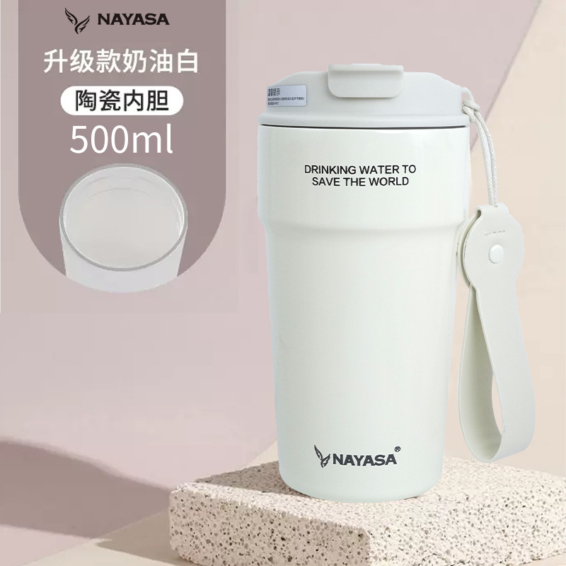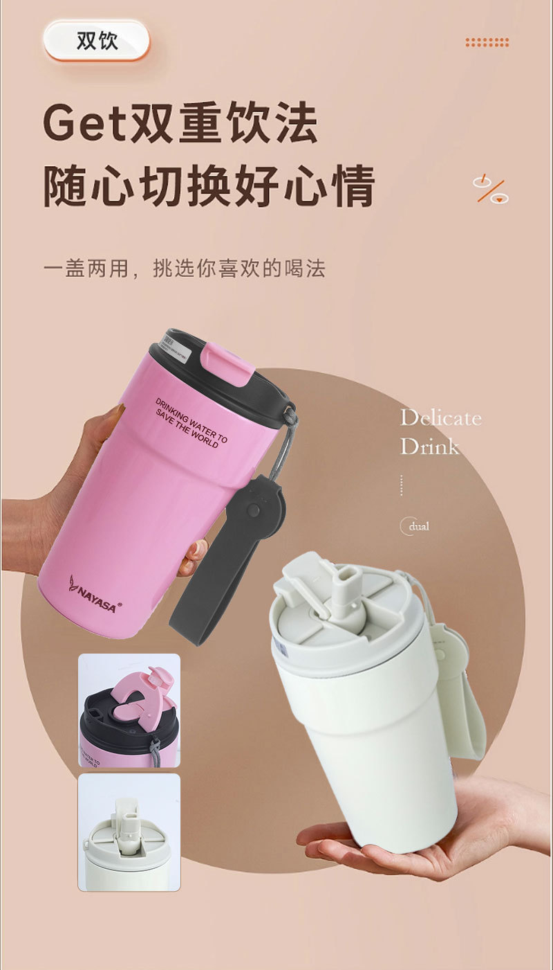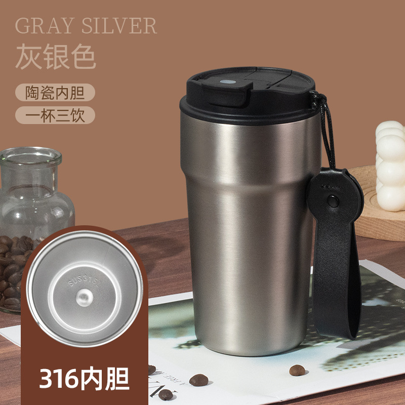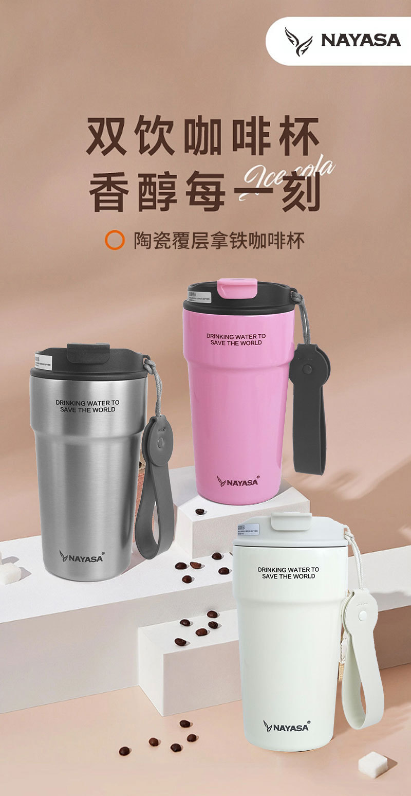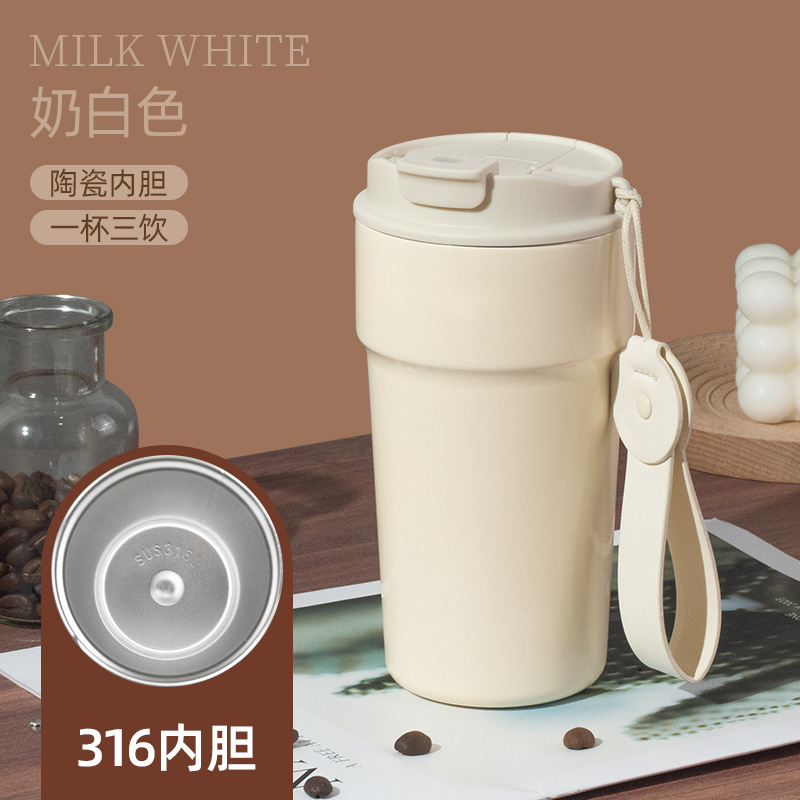 커피 컵 세라믹 라이너 코팅 절연 컵 여성용 휴대용 스포츠 이중 목적 밀짚 테이크 아웃 더블 드링크 콜드 워터 컵