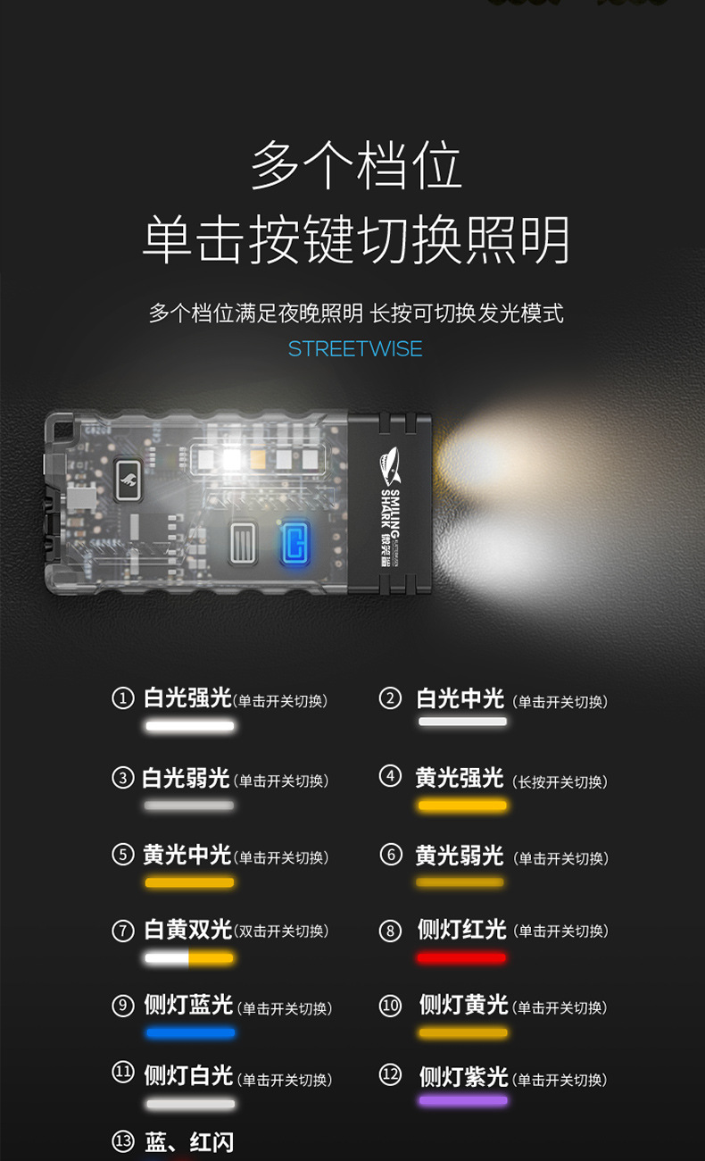 웃는 상어 야외 조명 다기능 작업 라이트 캡 클립 라이트 COB 사이드 라이트 아크 연기 조명 기능 12 빛스토어 가기