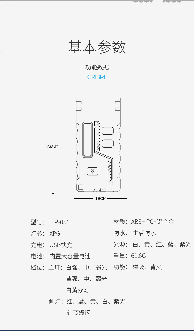 웃는 상어 야외 조명 다기능 작업 라이트 캡 클립 라이트 COB 사이드 라이트 아크 연기 조명 기능 12 빛