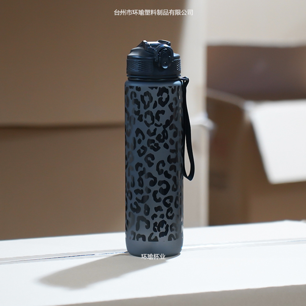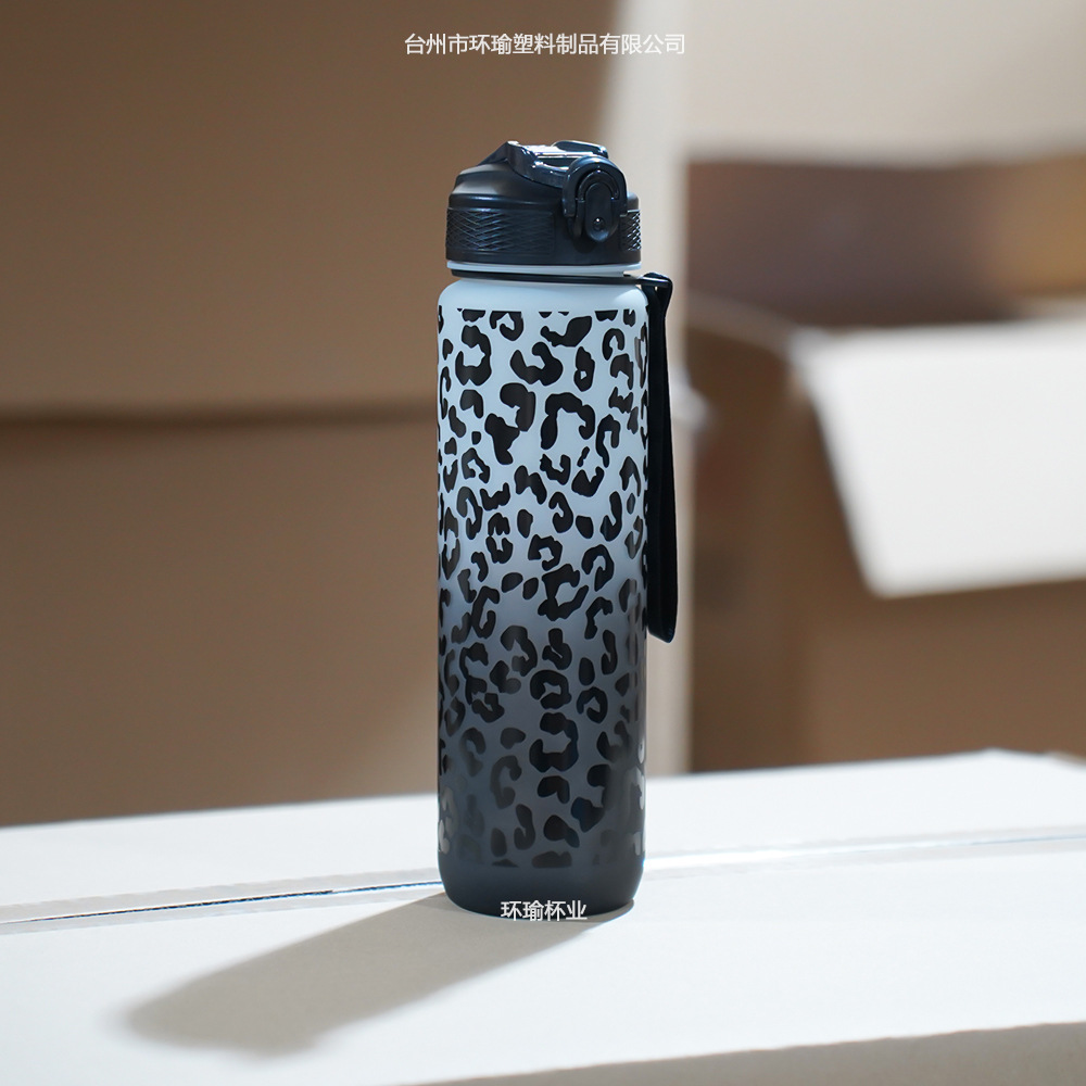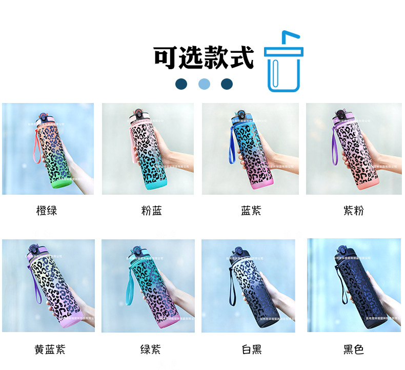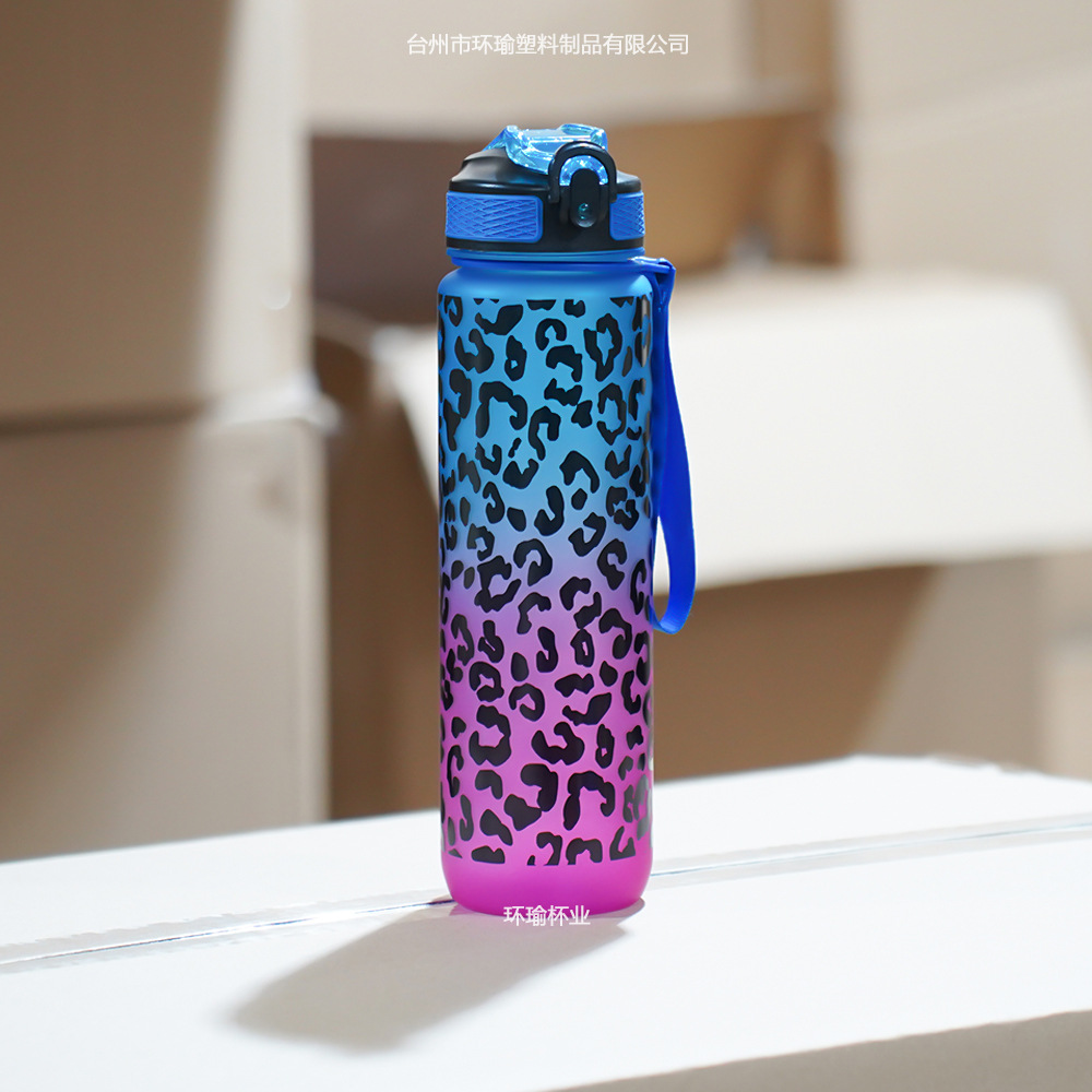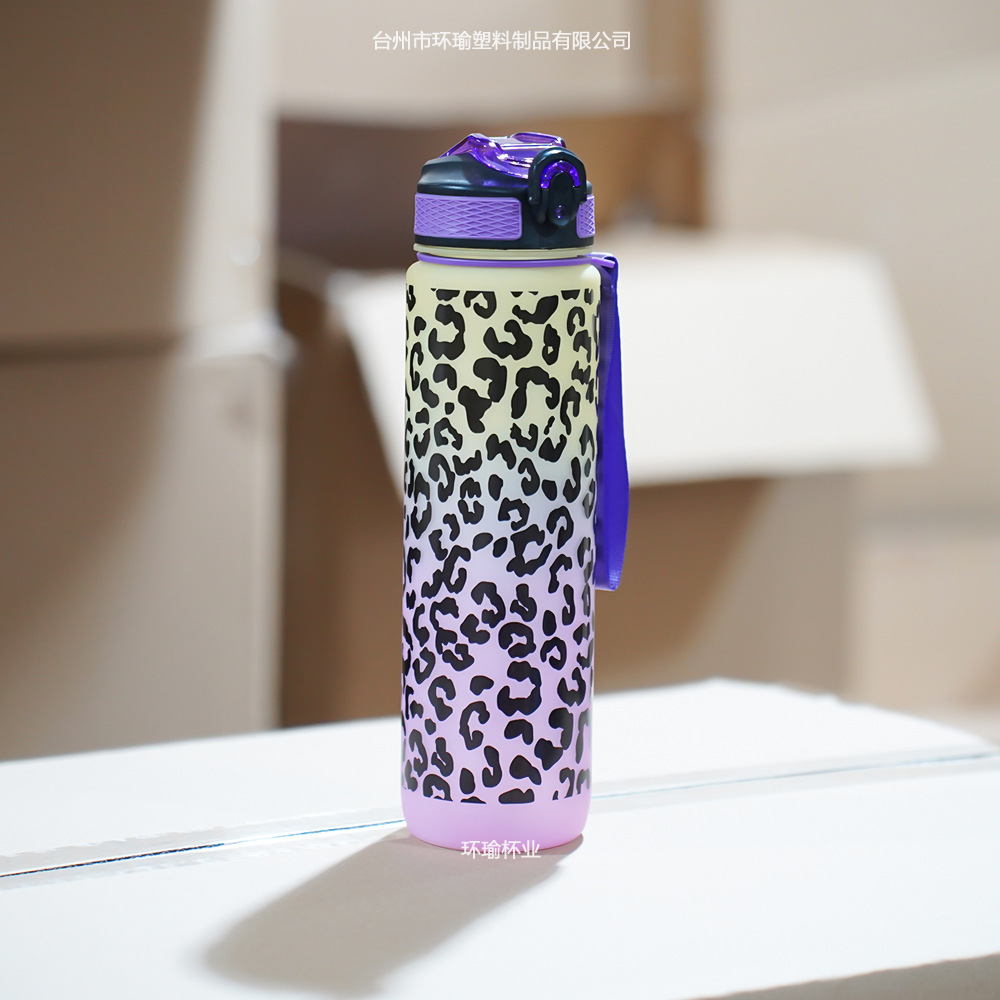 아마존 국경 1L 그라디언트 색상 표범 인쇄 사랑 스포츠 튀는 플라스틱 워터 컵 핸들 로프 대용량 밀짚 컵