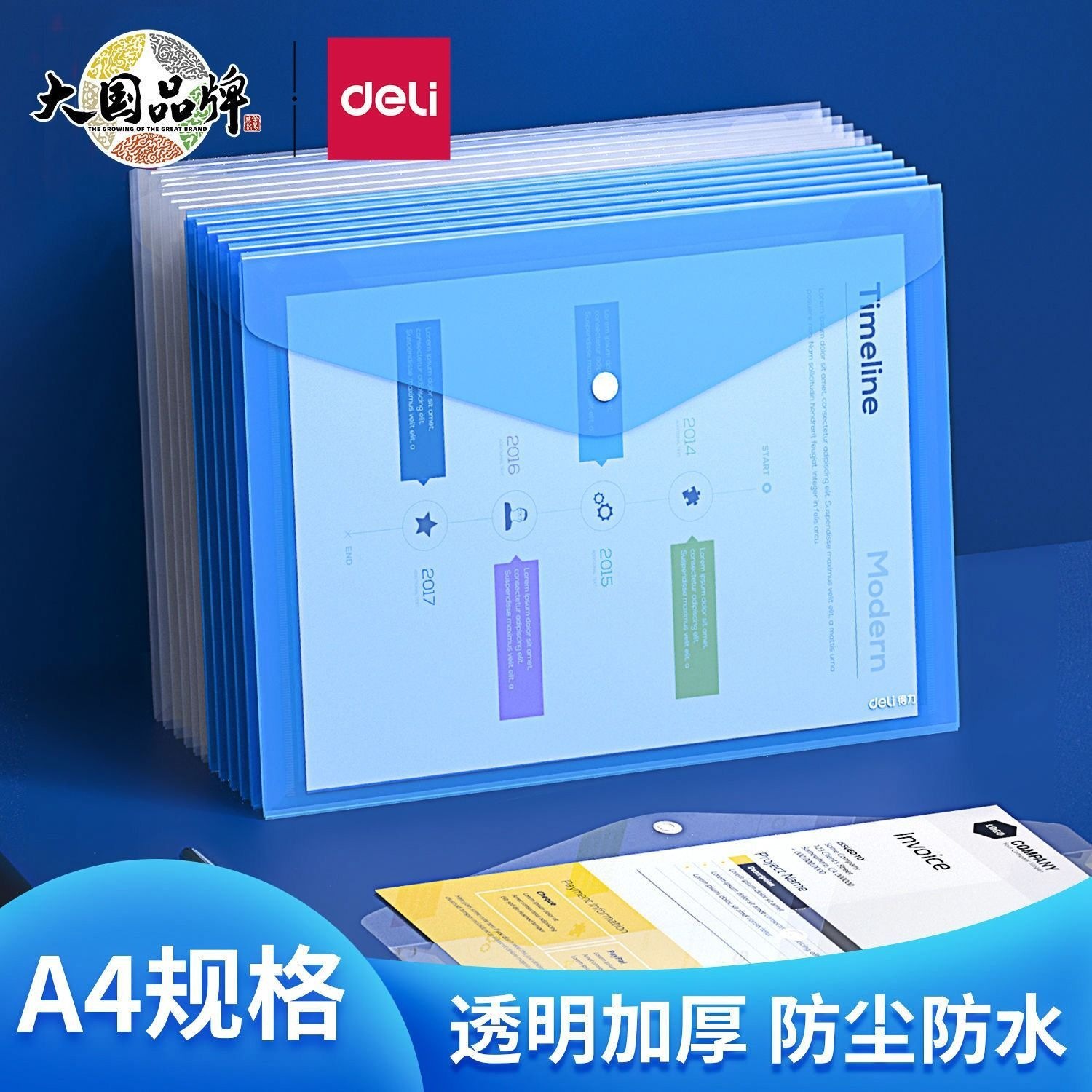 • 델리 A4 투명 문서 가방 플라스틱 스냅 가방 학생 사무실 데이터 파일 가방 두꺼운 저장 가방/블루788673
