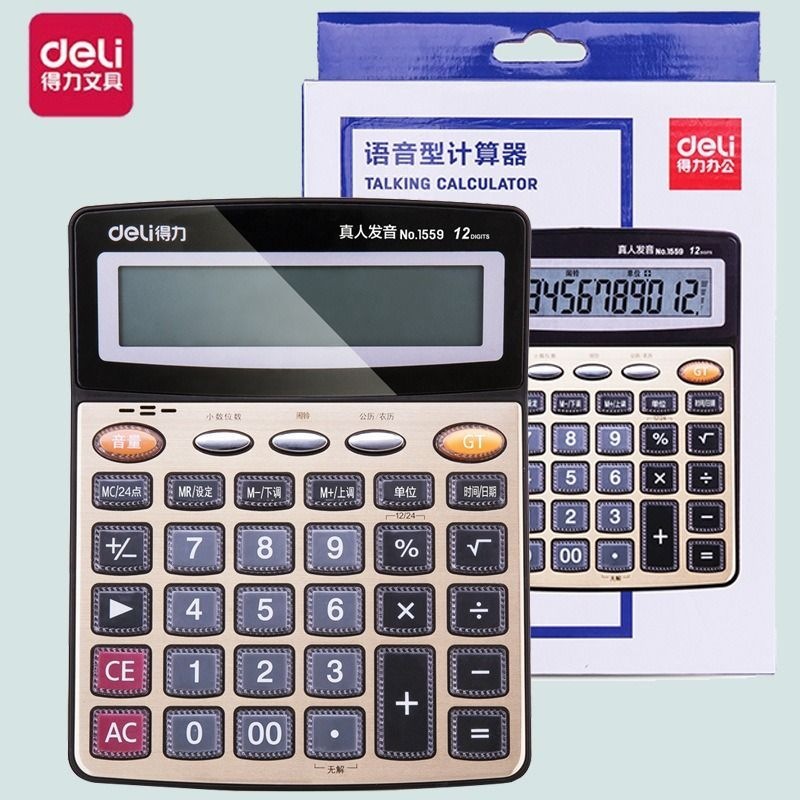 • Deli【1559】계산기 음성 컴퓨터 실제 사람의 발음 대형 버튼 대형 화면 12자리 금융 계산기/세트704641