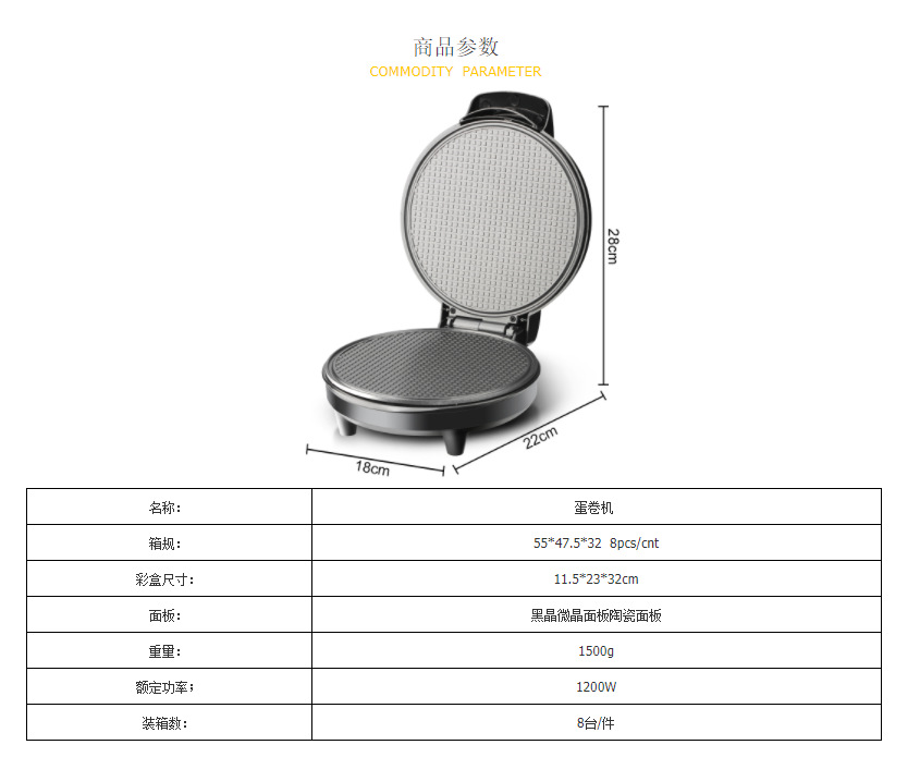 국경 간 가정용 아침 계란 롤 기계 아이스크림 롤 기계 전기 케이크 당 팬케이크 기계 아이스크림 껍질 스프링 롤 기계