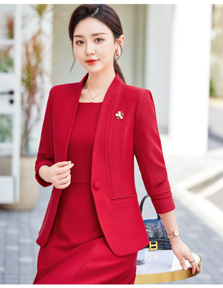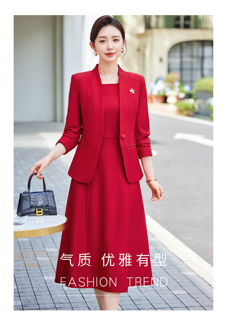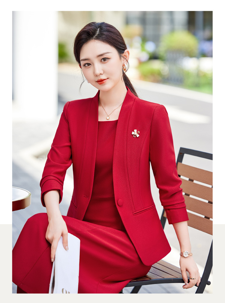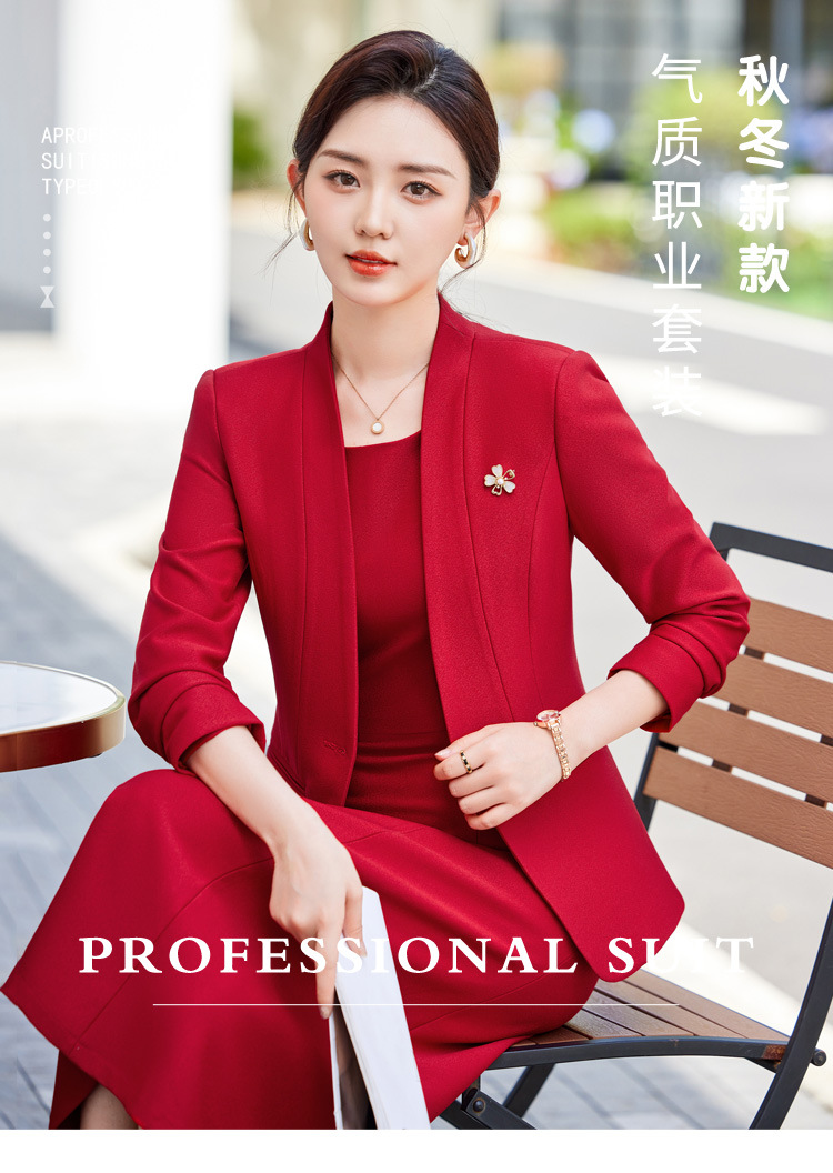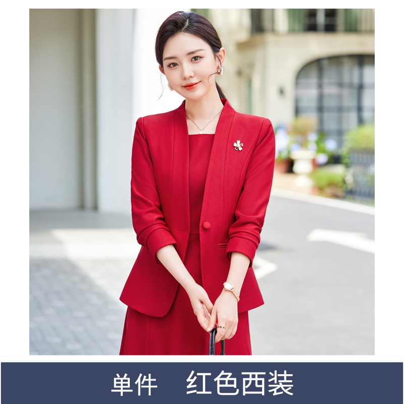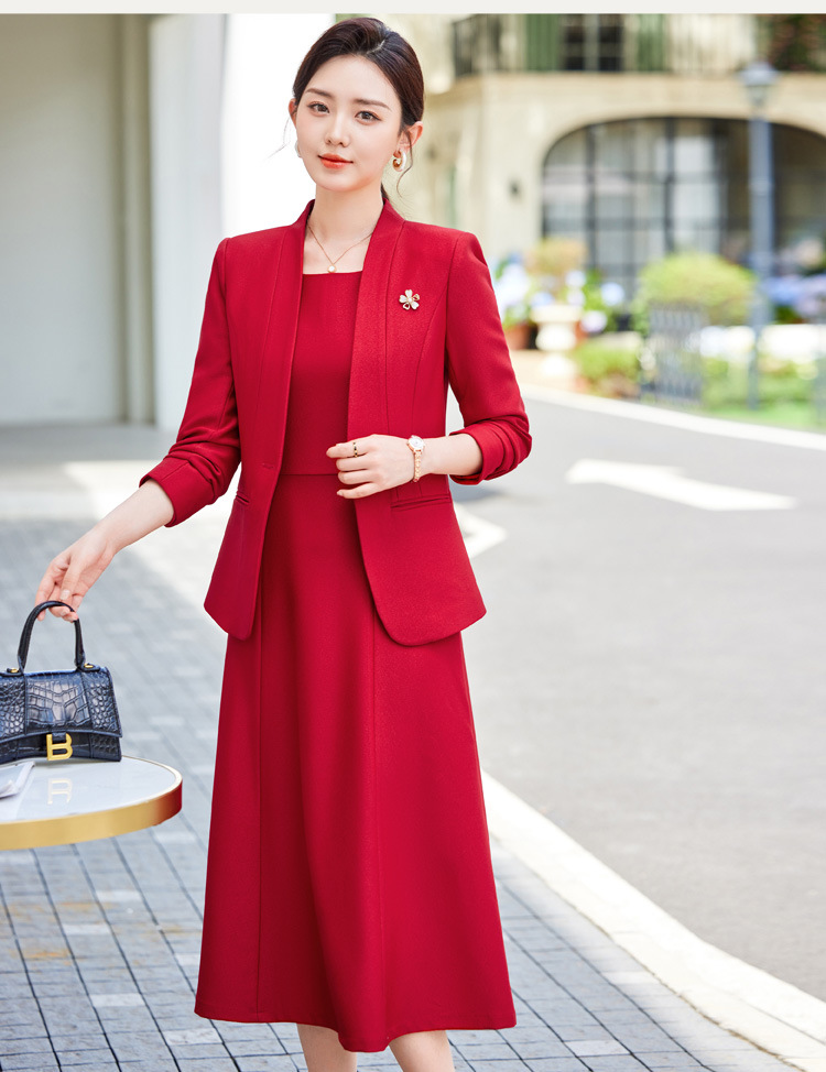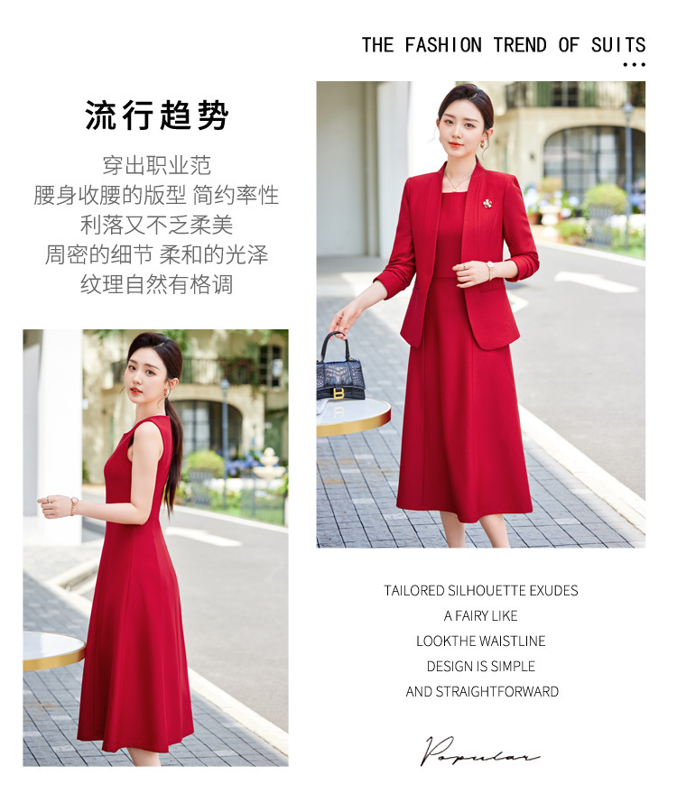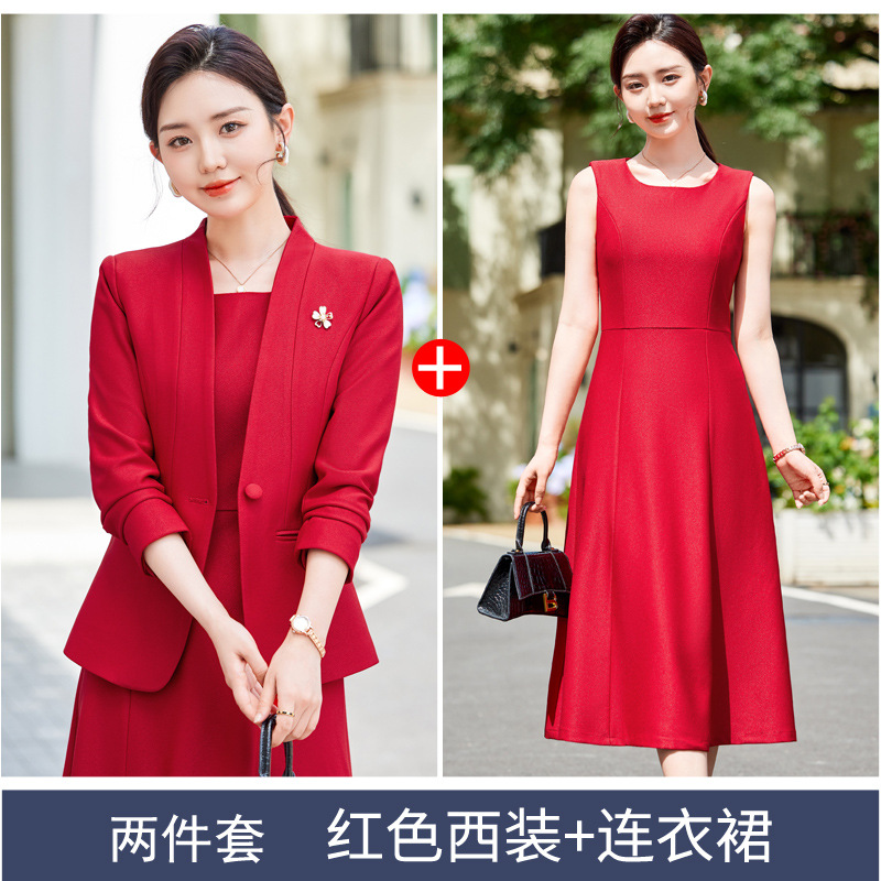 레드 세트 재킷 여성 2024 새로운 가을 사업 착용 기질 세트 조끼 원피스 슬림 핏 작업 옷스토어 가기