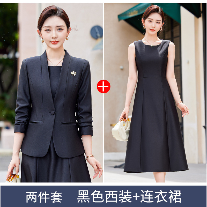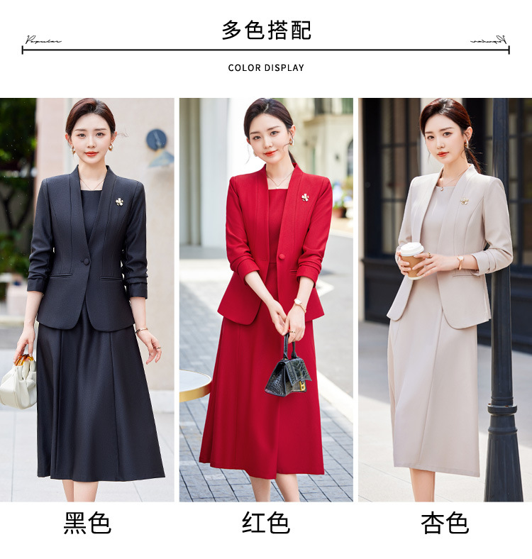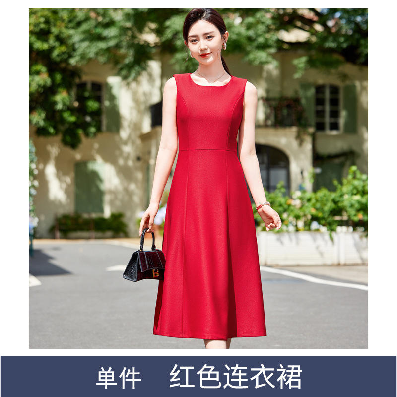 레드 세트 재킷 여성 2024 새로운 가을 사업 착용 기질 세트 조끼 원피스 슬림 핏 작업 옷