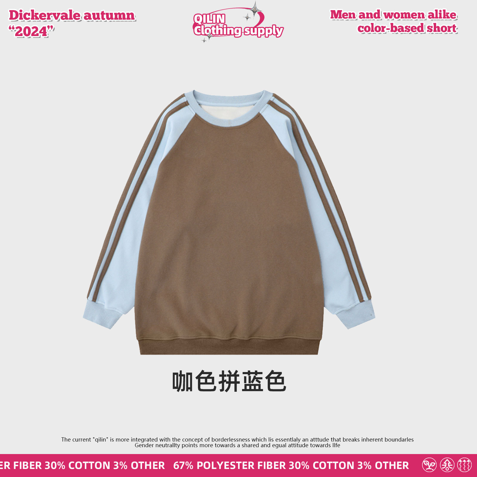 봄과 가을 세 개의 바 스포츠 스웨터 트렌디 남성 캐주얼 크루 넥 남녀 풀오버 긴 소매 자켓 플러스 사이즈 청소년베이스 셔츠스토어 가기