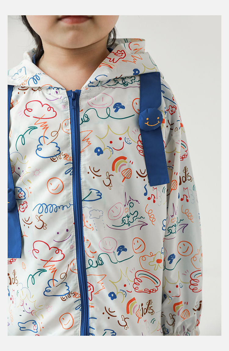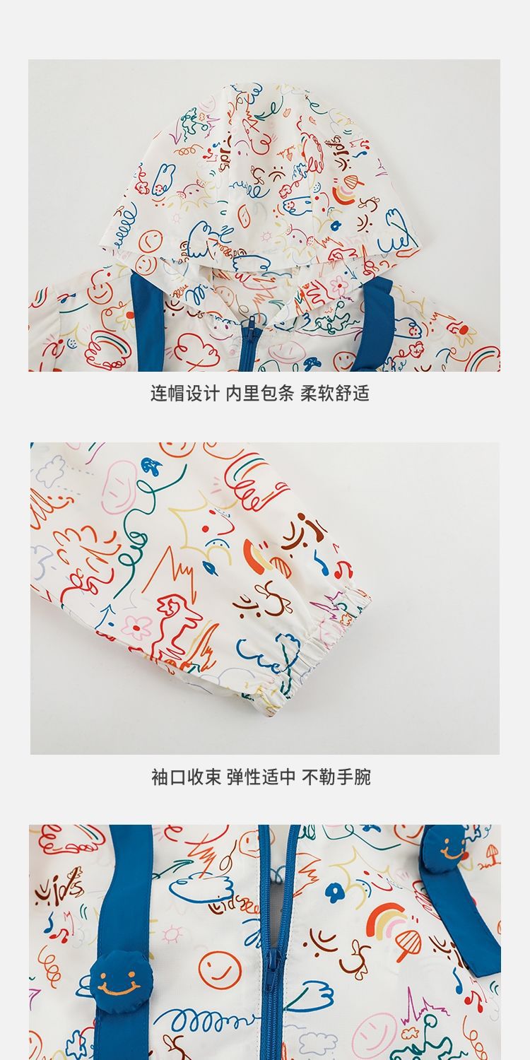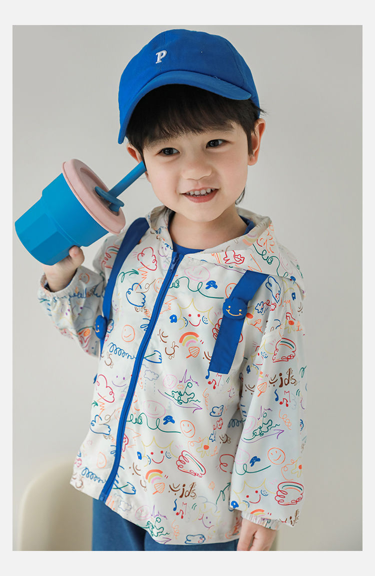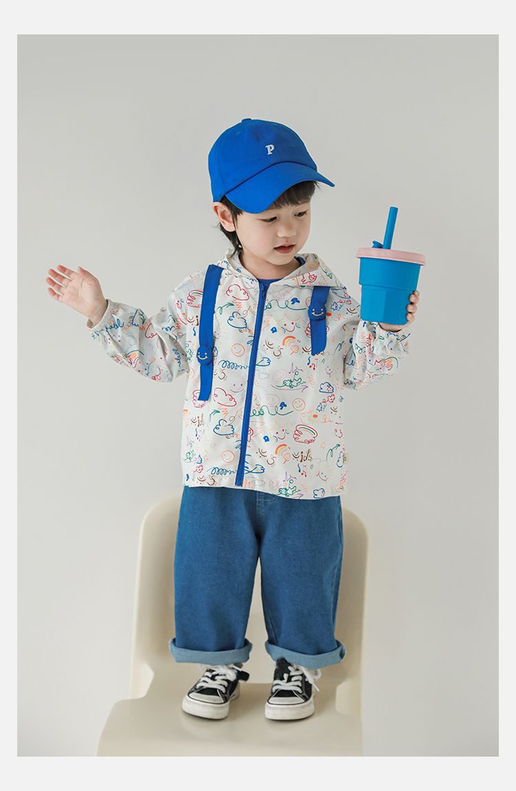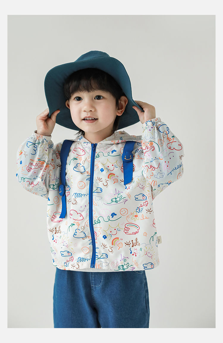 우리부 남아용 2026 봄 가을 신상품 자외선 차단 의류, 컬러풀한 그래피티 프린트 통기성 후드 재킷, 트렌디한 디자인