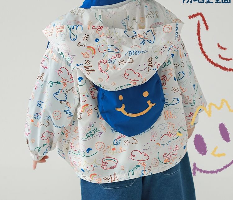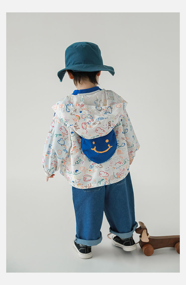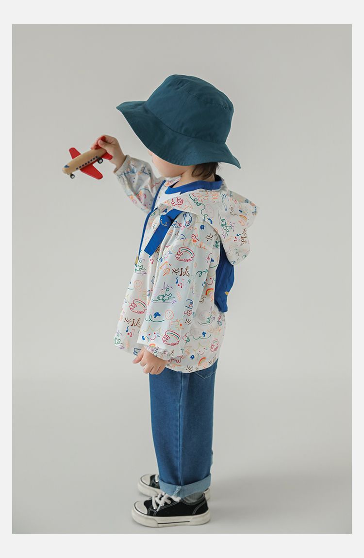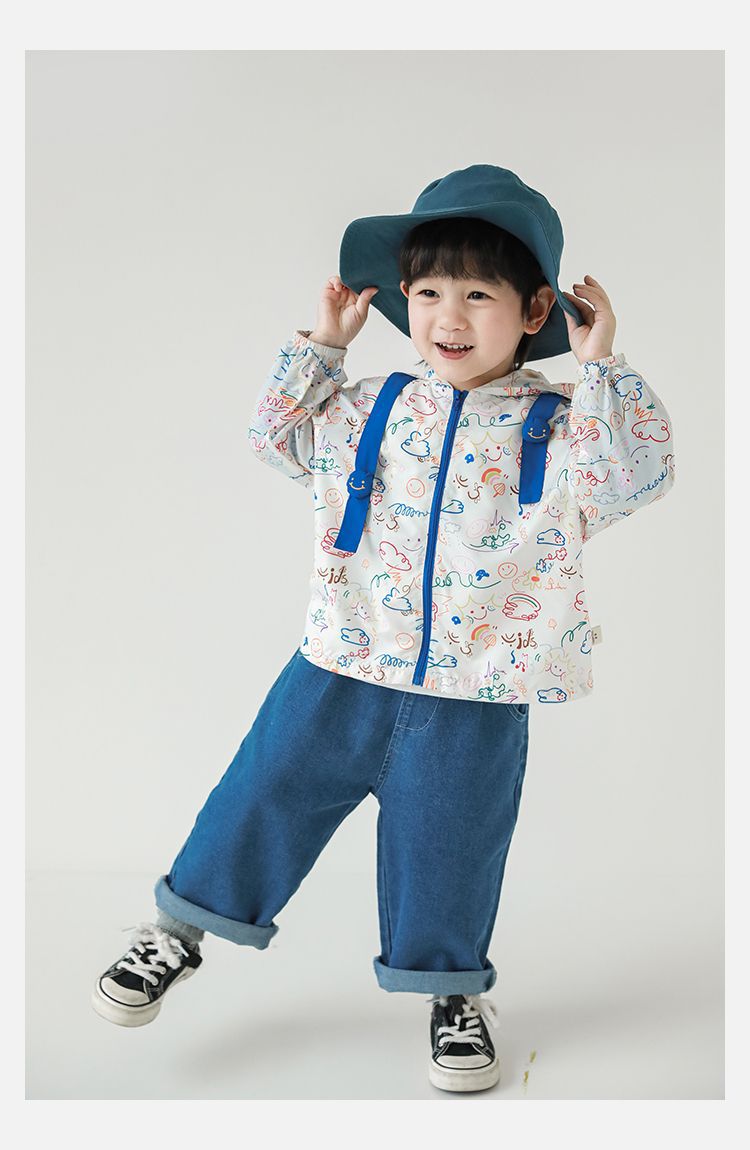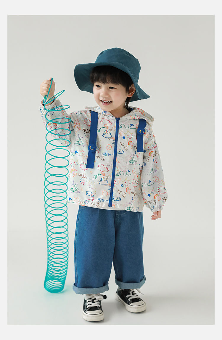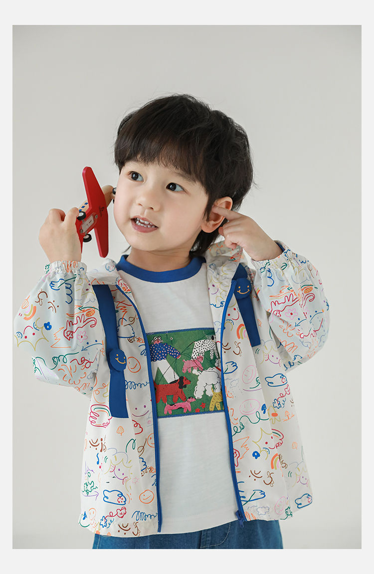 우리부 남아용 2026 봄 가을 신상품 자외선 차단 의류, 컬러풀한 그래피티 프린트 통기성 후드 재킷, 트렌디한 디자인