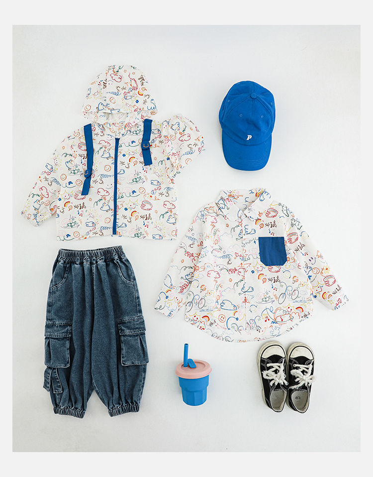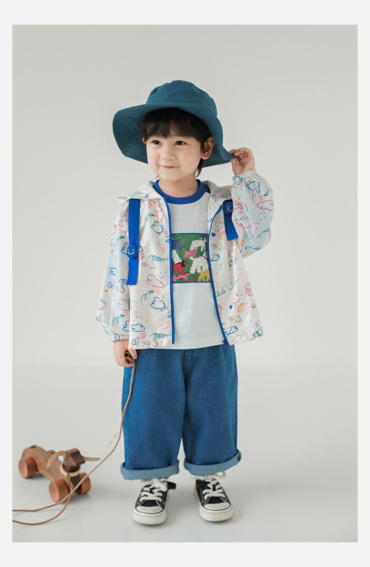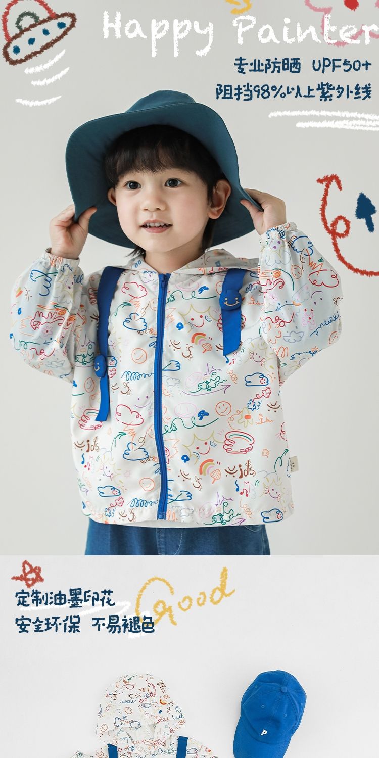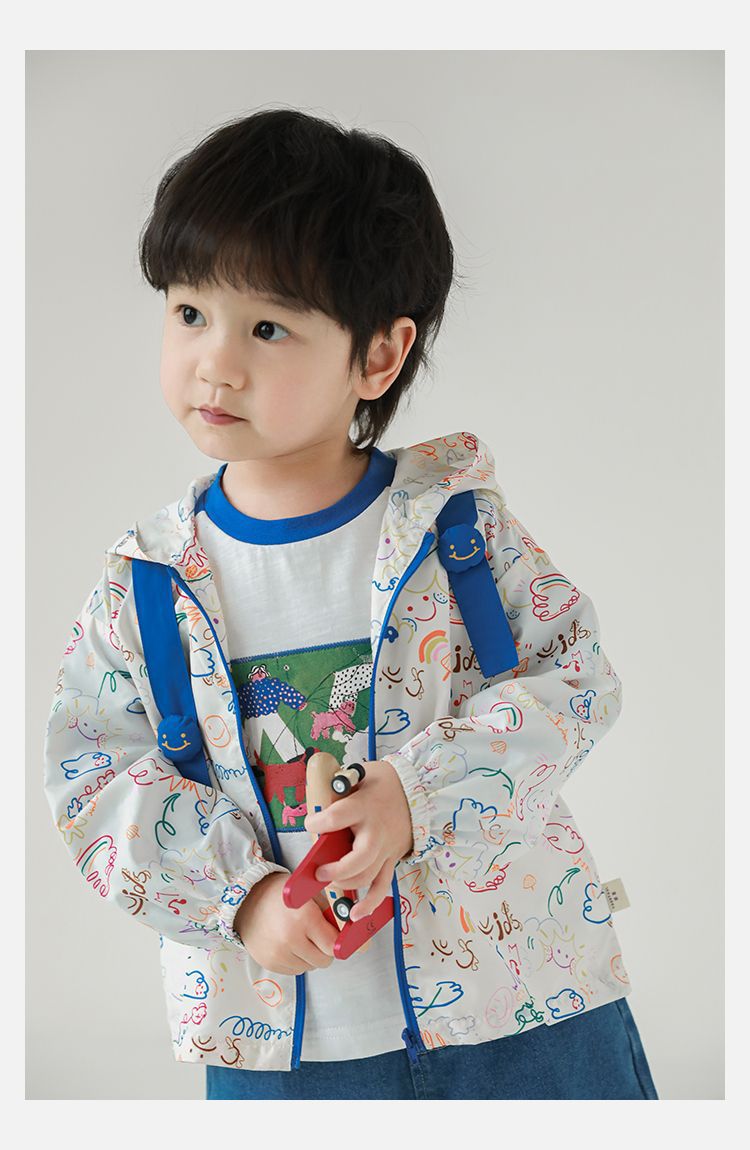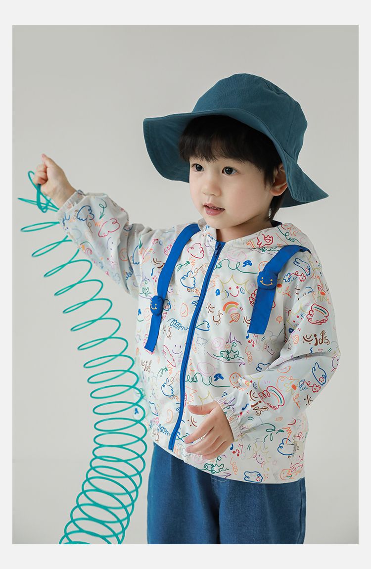 우리부 남아용 2026 봄 가을 신상품 자외선 차단 의류, 컬러풀한 그래피티 프린트 통기성 후드 재킷, 트렌디한 디자인스토어 가기