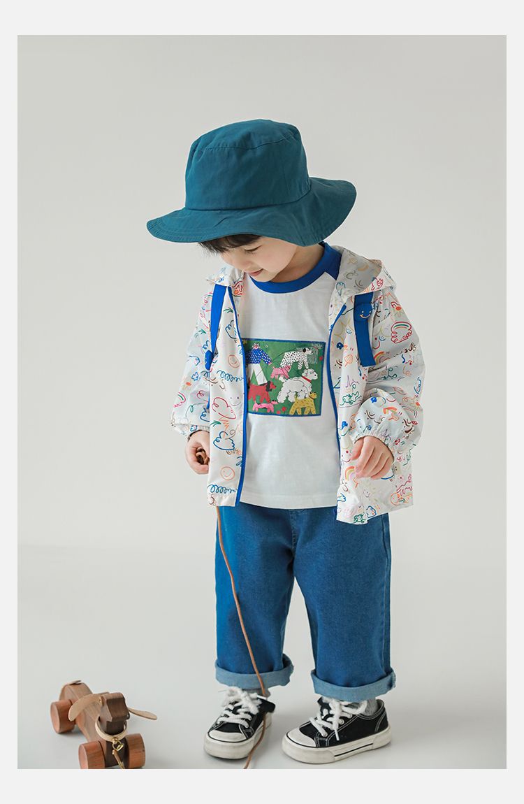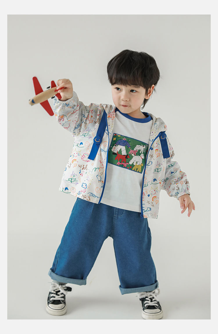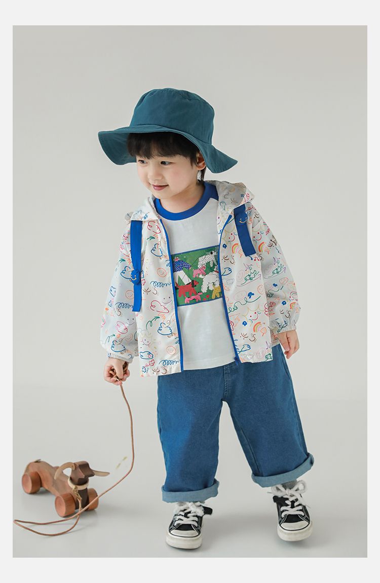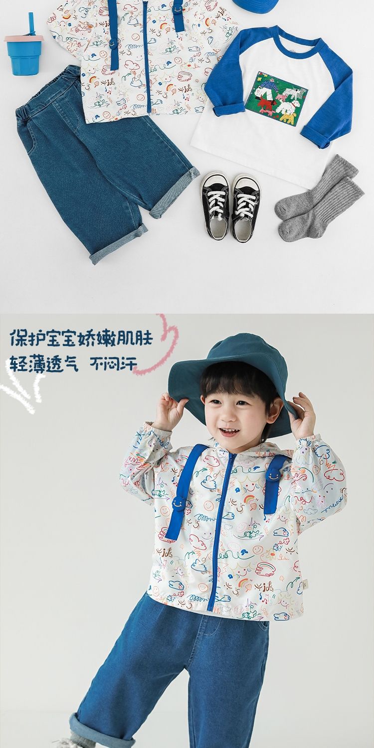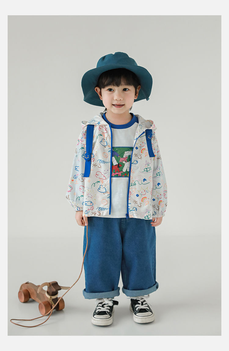 우리부 남아용 2026 봄 가을 신상품 자외선 차단 의류, 컬러풀한 그래피티 프린트 통기성 후드 재킷, 트렌디한 디자인스토어 가기