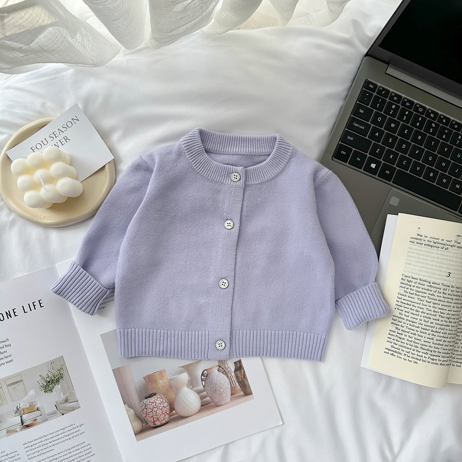 • 라벤더 퍼플 [솔리드 컬러 코튼 가디건]