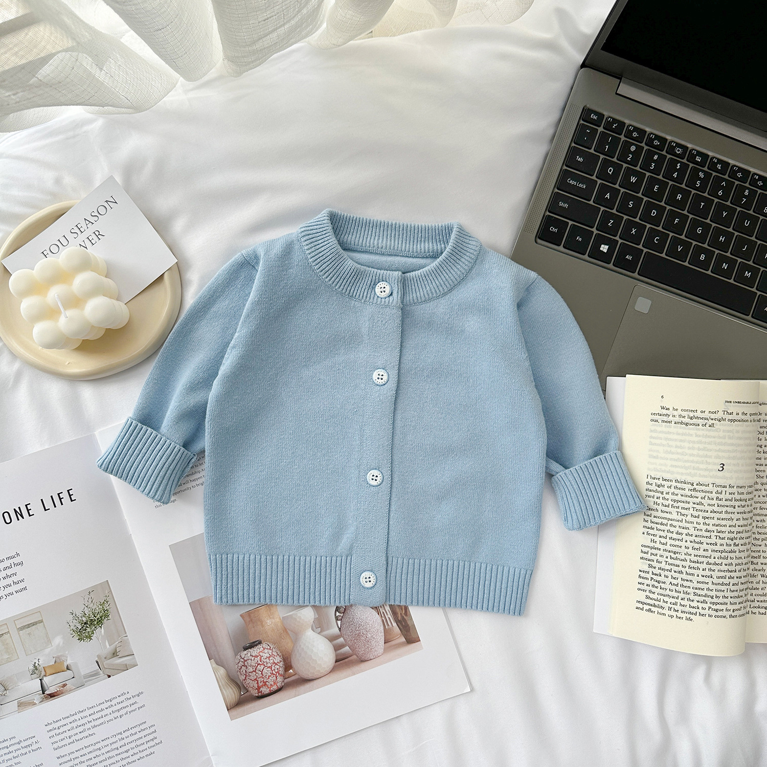 • 레이크 블루 [솔리드 컬러 코튼 가디건]