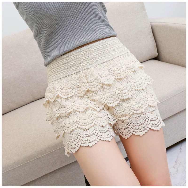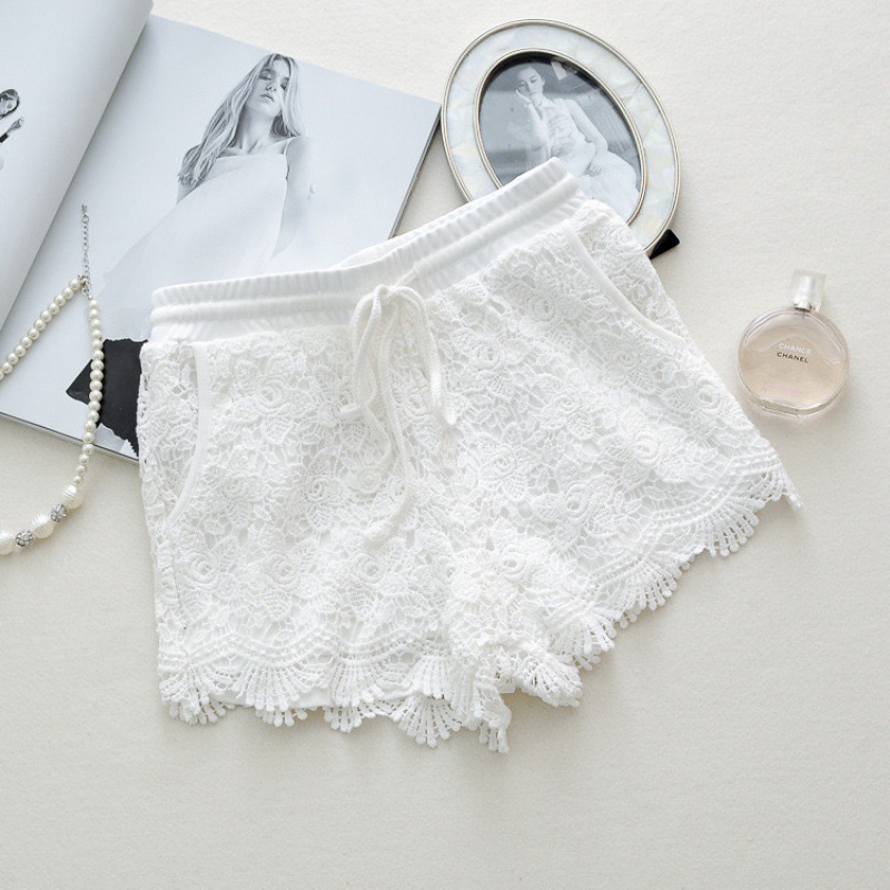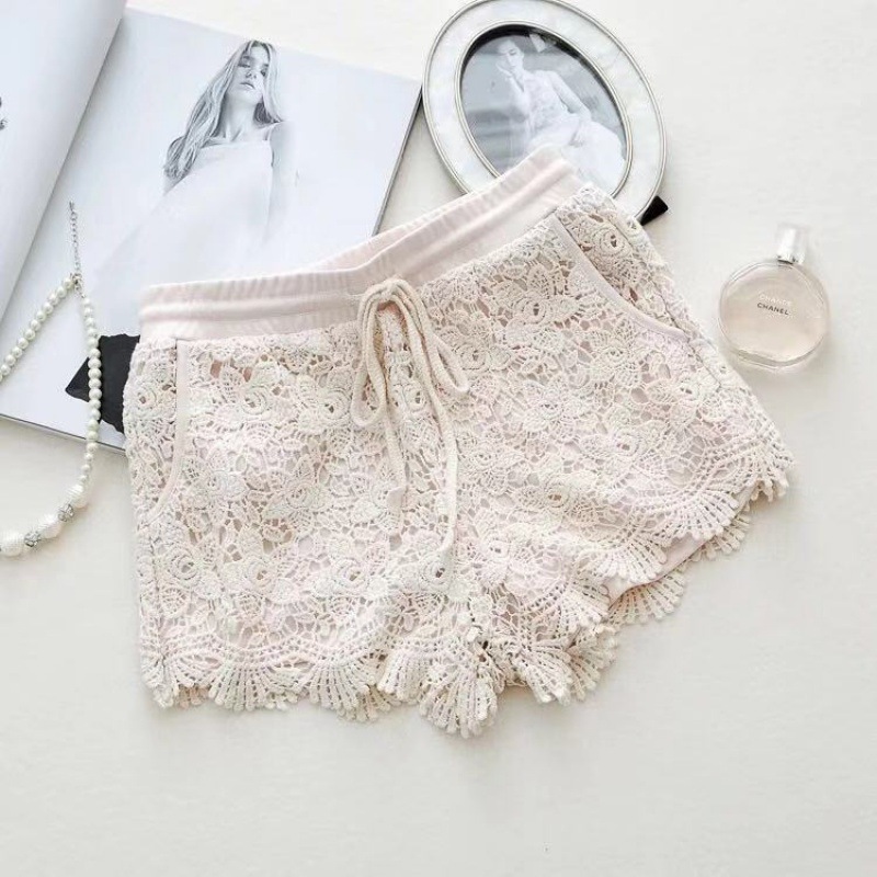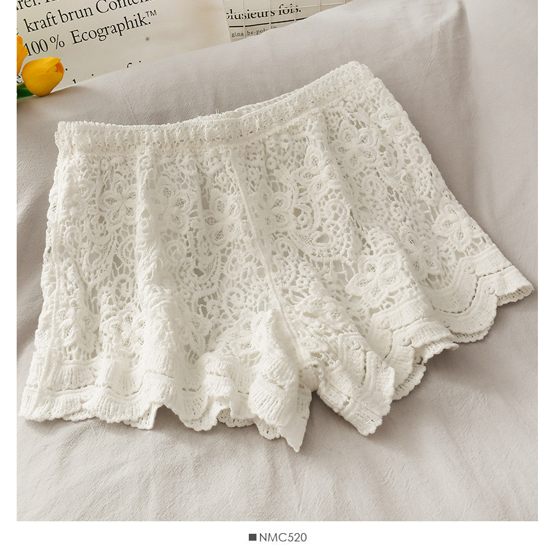 유럽, 미국 및 동남아시아 폭발 레이스 자수 니트 할로우 루즈 반바지 조명 방지 안전 바지 여성 외침 반바지