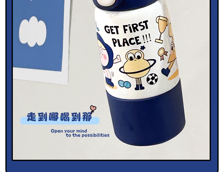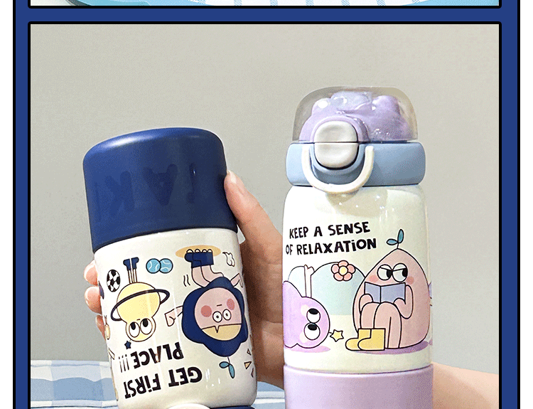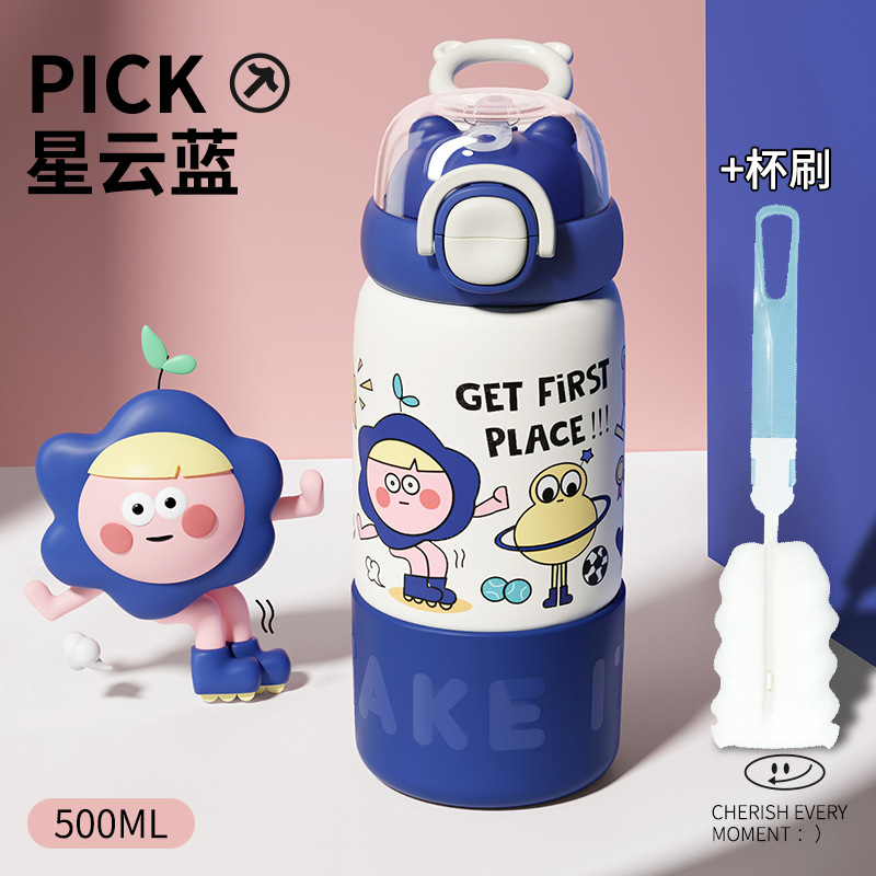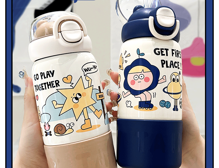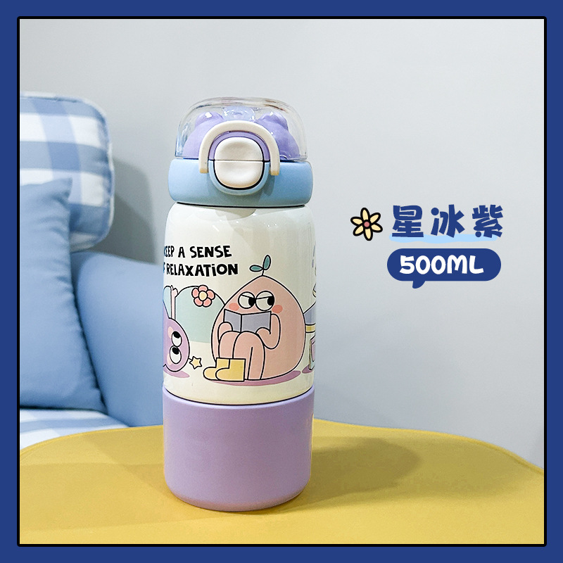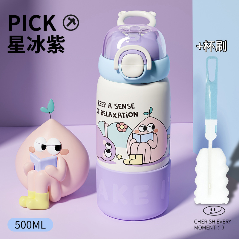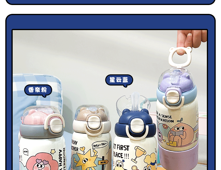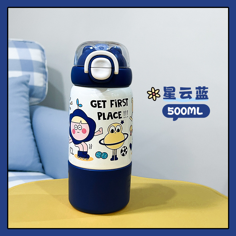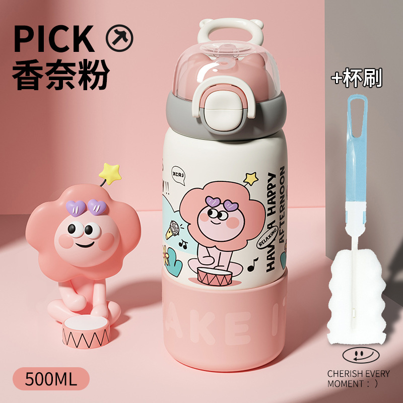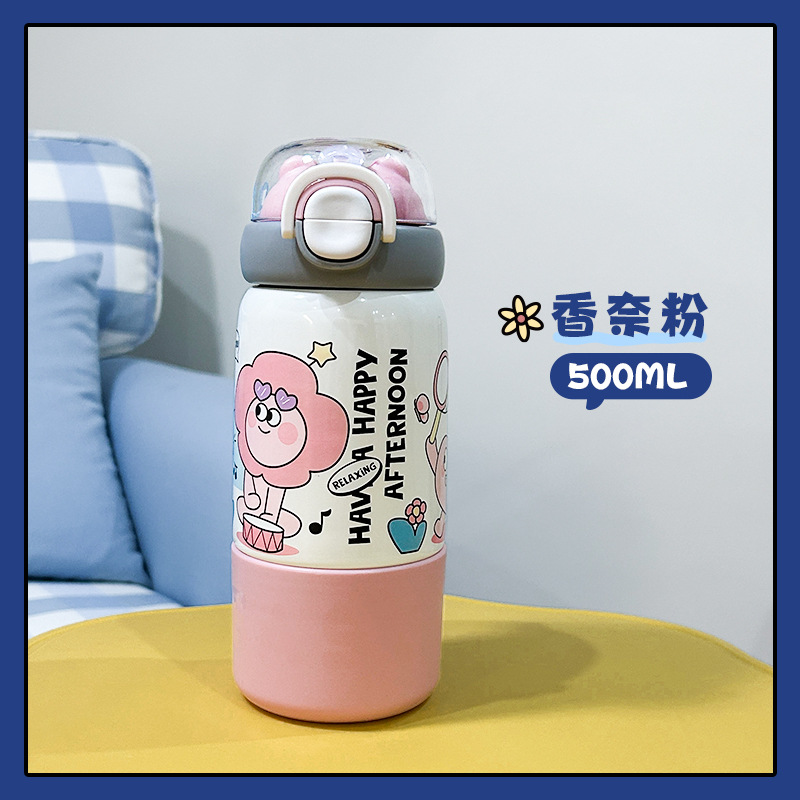 304 스테인리스 어린이용 대용량 귀여운 가정용 휴대용 방수 빨대 물컵 여성용 고급스러운 보온병