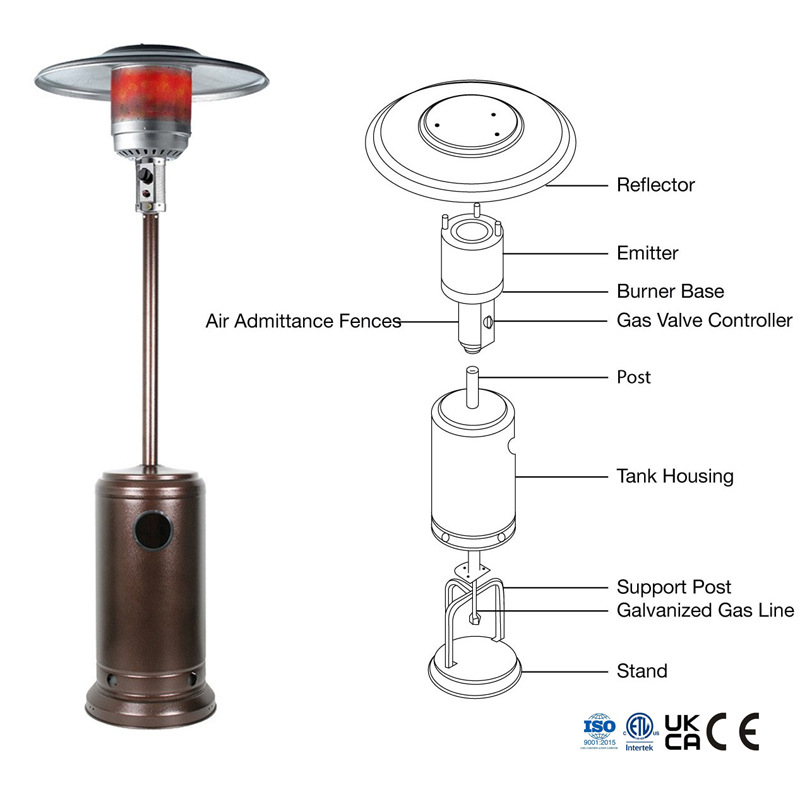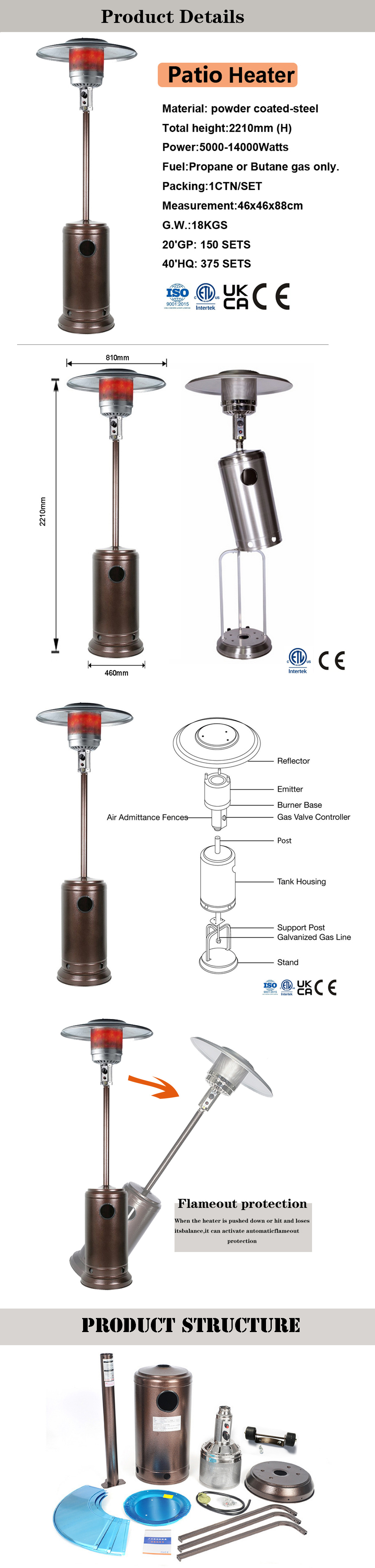 우산 형 가스 히터 야외 난방 스토브 상업 액화 가스 풍경 실제 화재 버섯 안뜰 가스 베이킹 스토브
