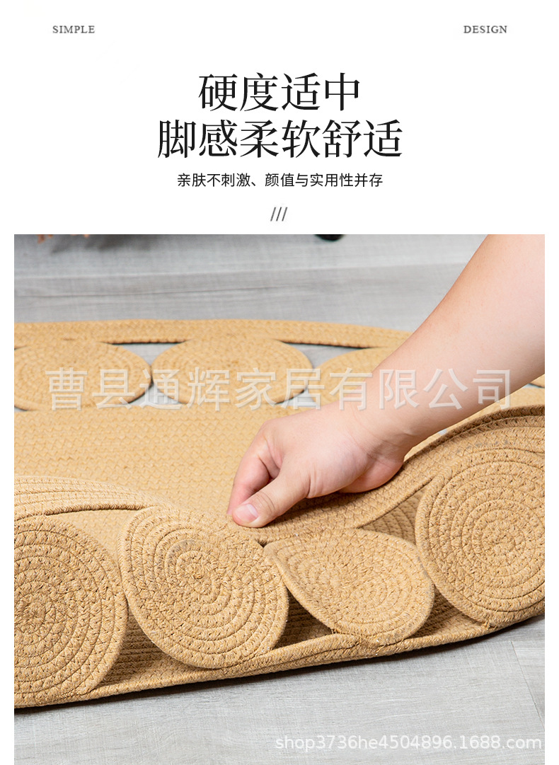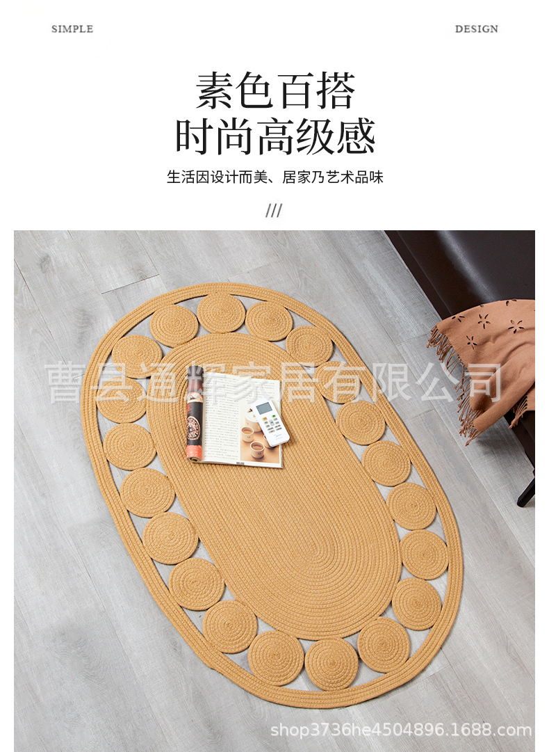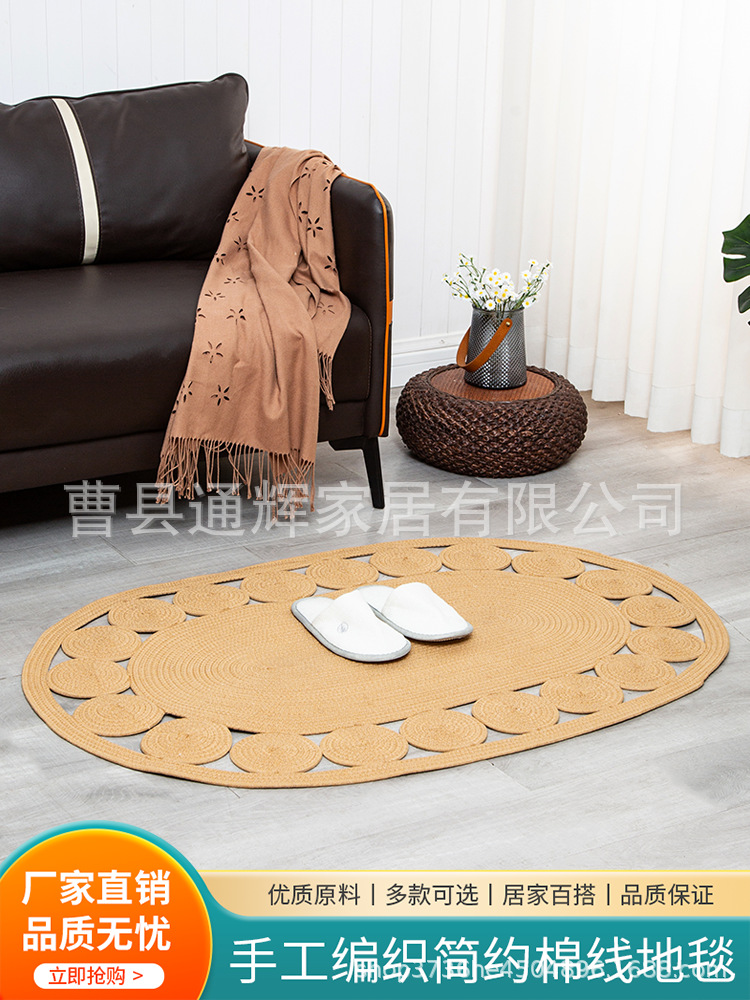 침실 침대 옆 바닥 매트 면로프 땋은 카펫 황마 가정용 내마모성 발매트 B&B용 현대적 미니멀리스트 미끄럼 방지 매트스토어 가기