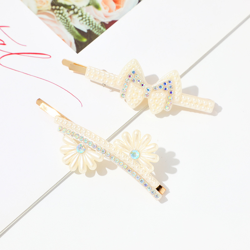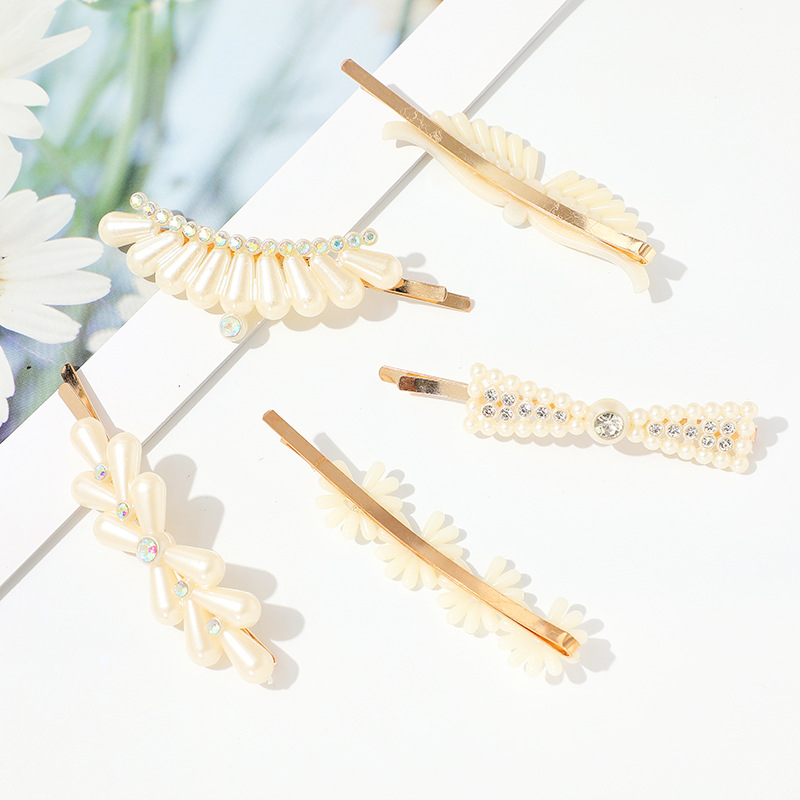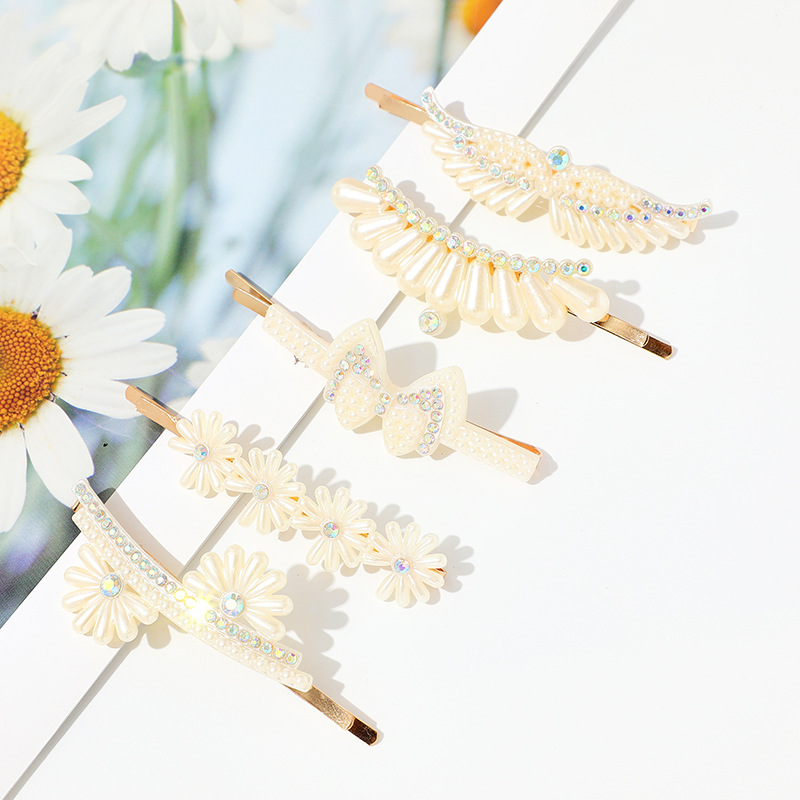 새로운 스타일의 진주 헤어 클립 다이아몬드 헤어 루트 세트 여성용 절묘한 뱅 클립 한 단어 클립 깨진 우아한 헤어 액세서리