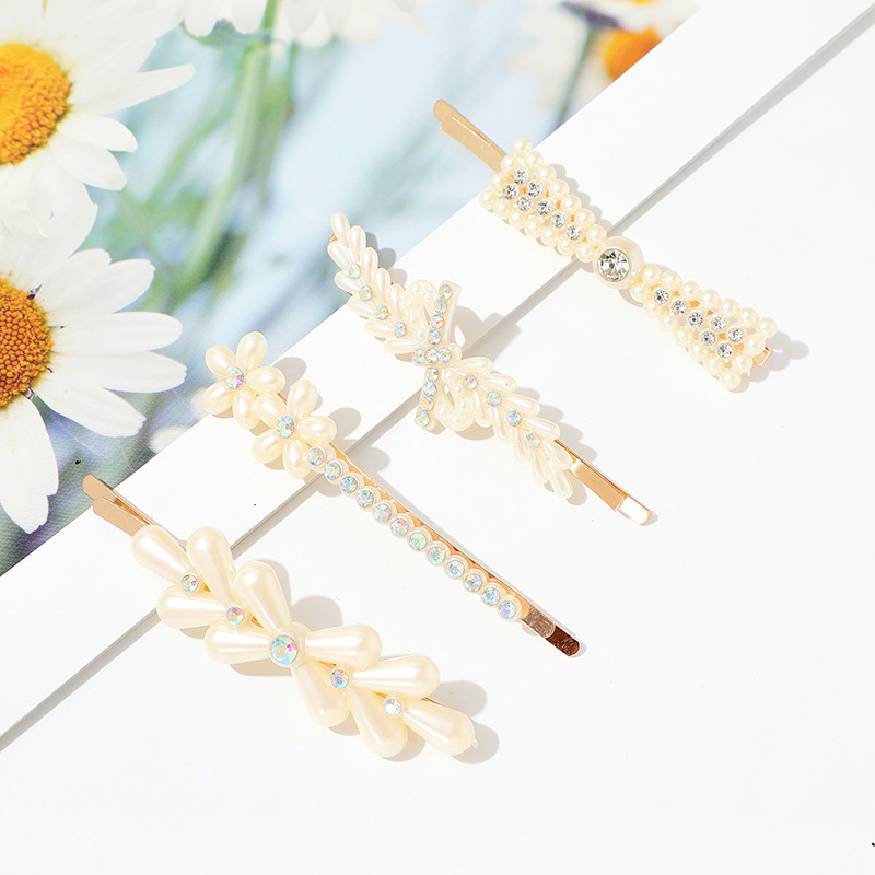 새로운 스타일의 진주 헤어 클립 다이아몬드 헤어 루트 세트 여성용 절묘한 뱅 클립 한 단어 클립 깨진 우아한 헤어 액세서리스토어 가기