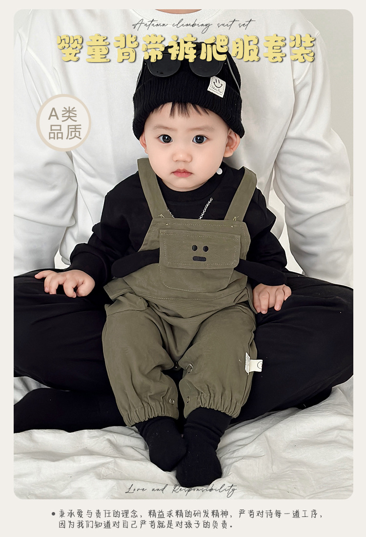 2026新款婴儿衣服春秋季背带裤套装一岁男宝宝小月龄洋气分体春装
