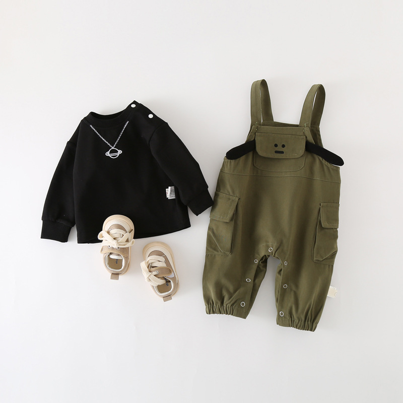 새로운 출발점 의류 아기 봄 옷 세트 소년 아기 봄과 가을 긴팔 스트랩 투피스 신생아 세트