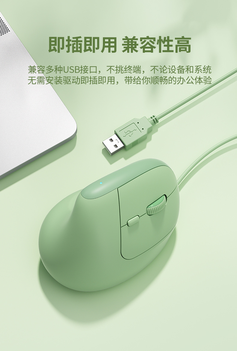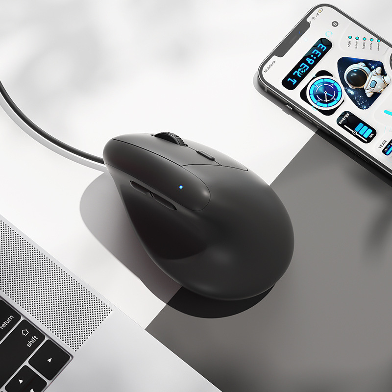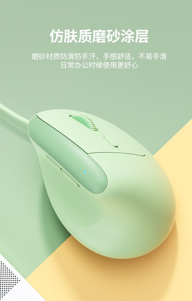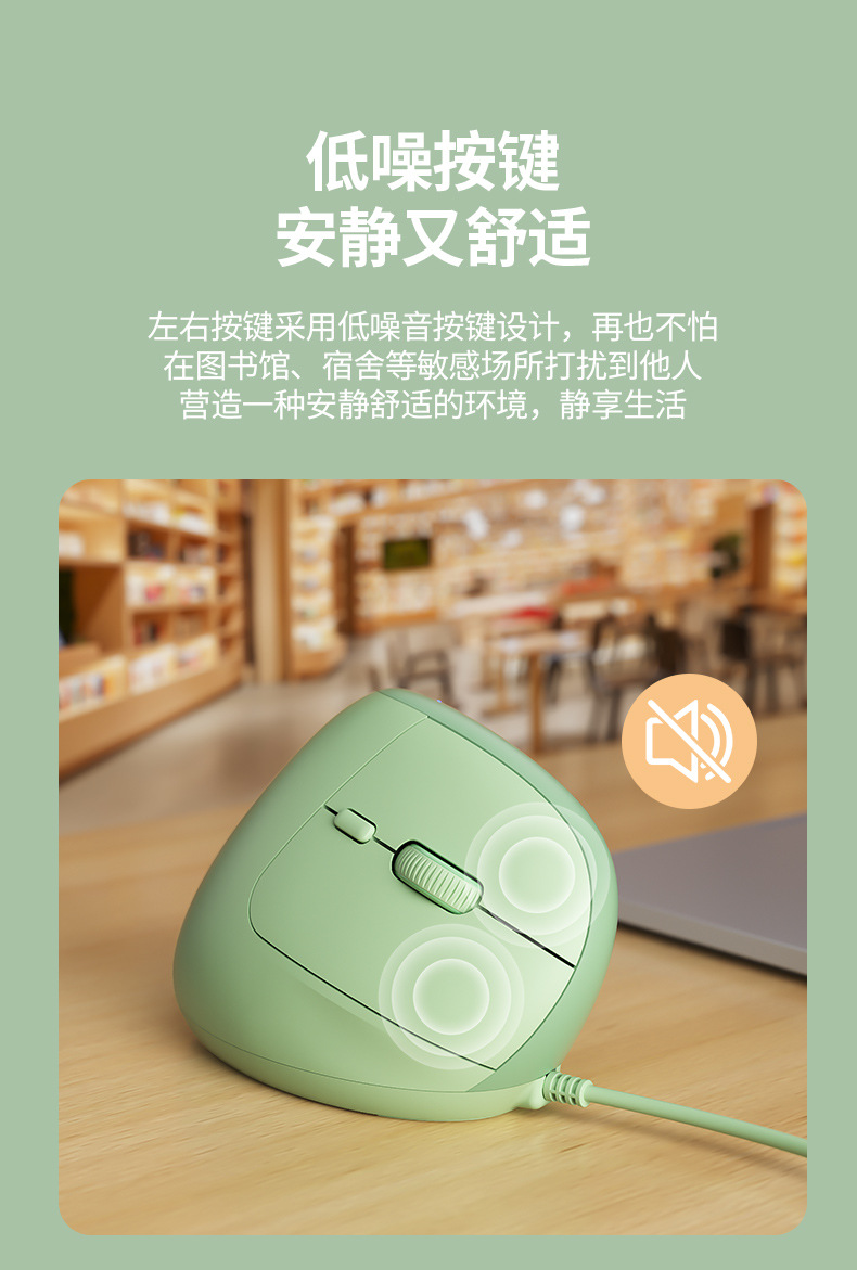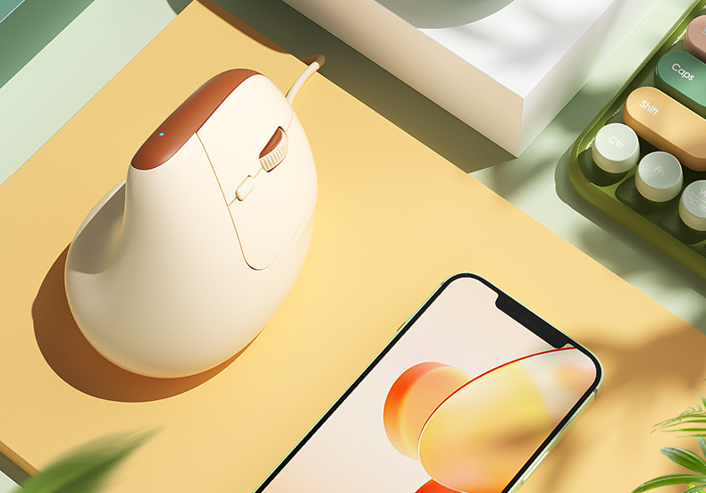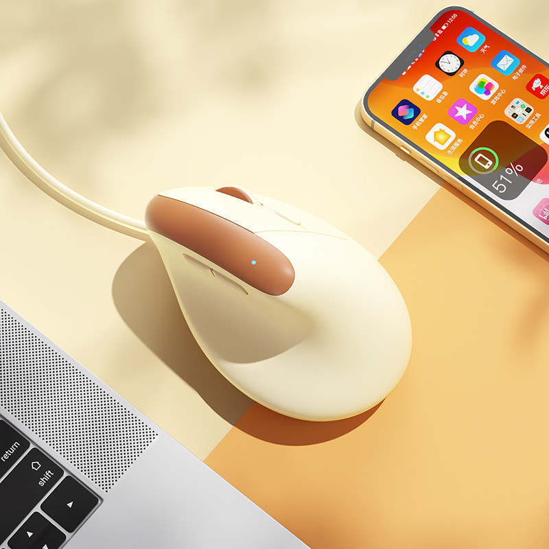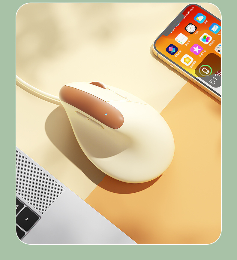 항시 BOW 인체공학적 수직 유선 마우스, 손목 받침대 포함, 무소음, 귀여운 여성용 스탠딩 저소음 마우스
