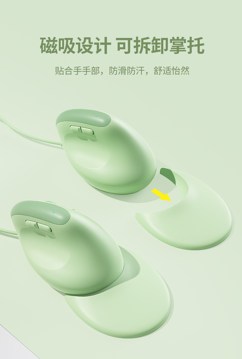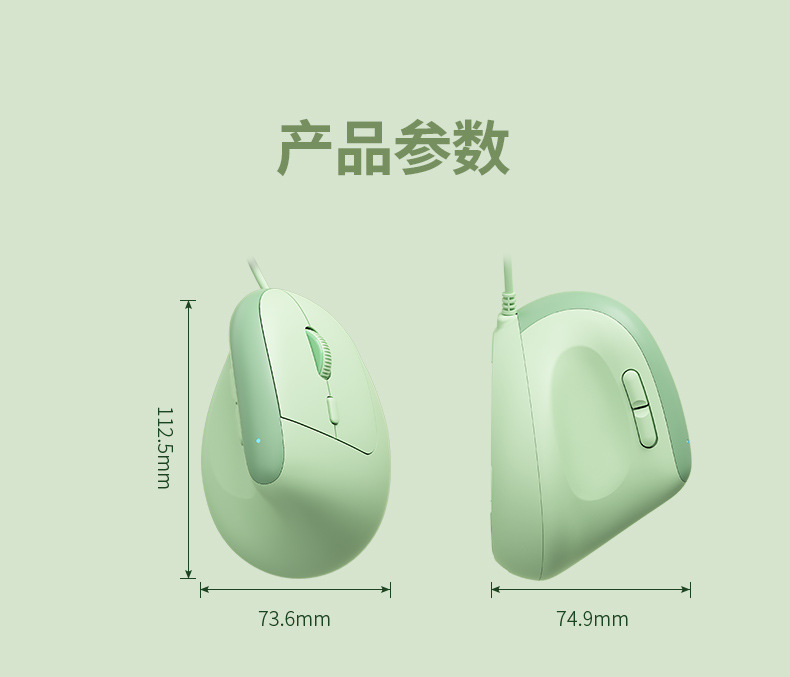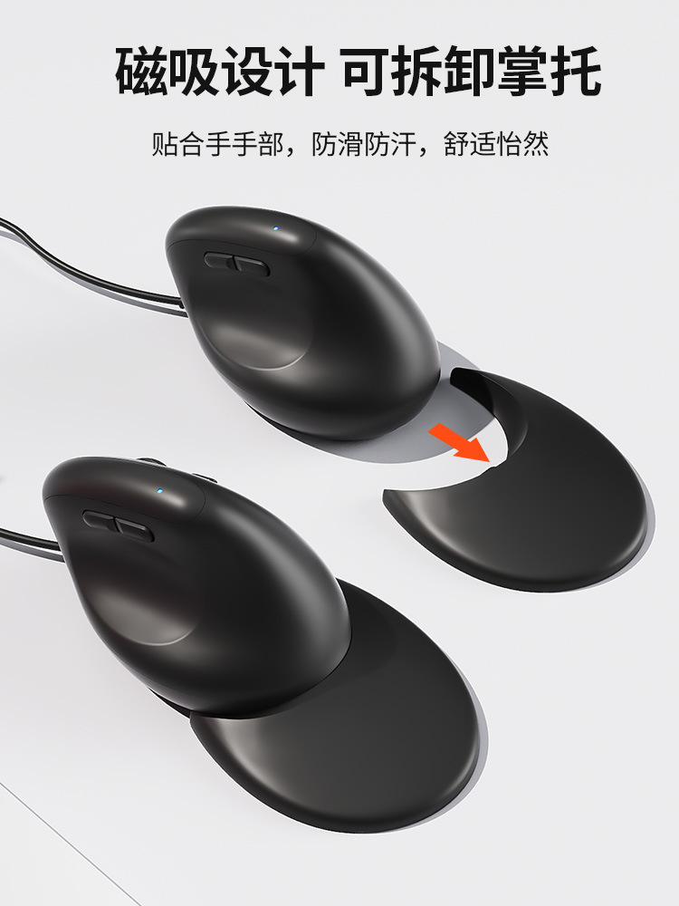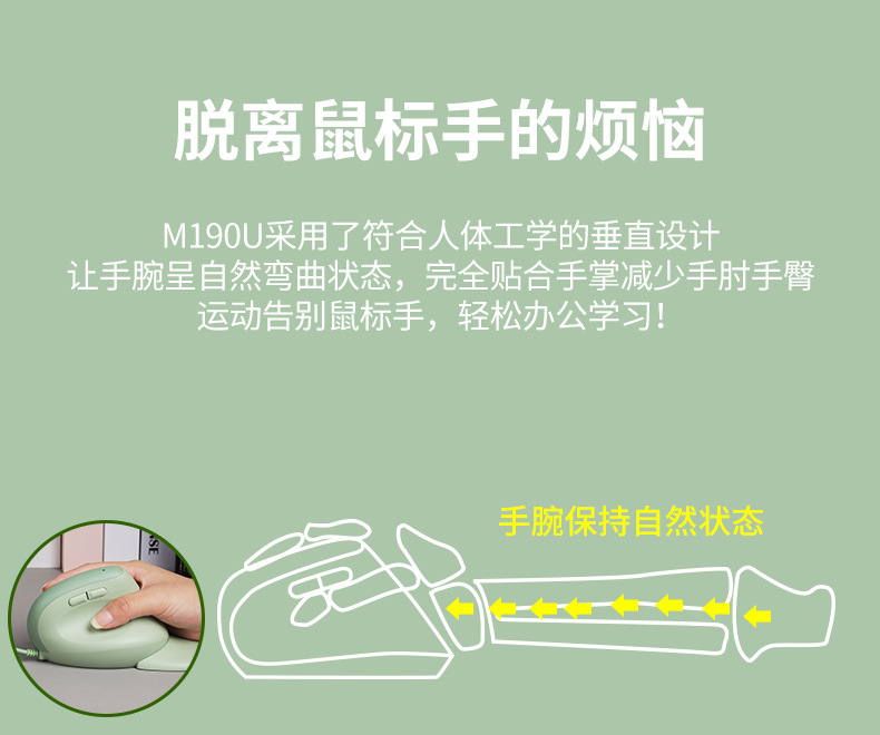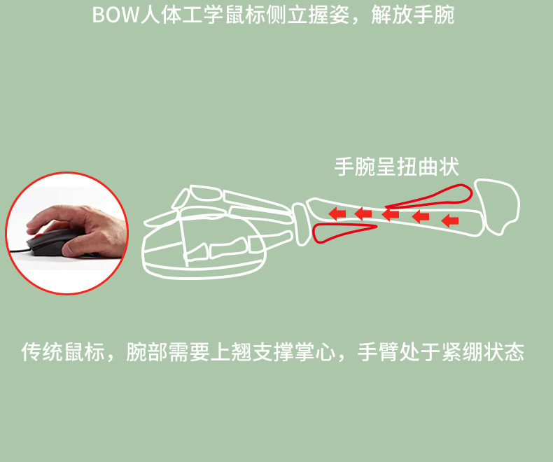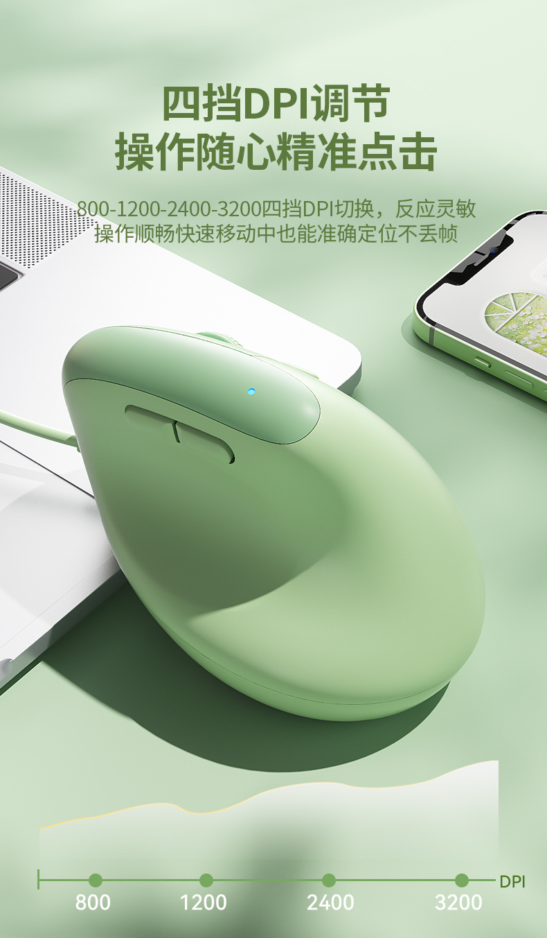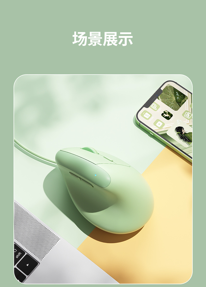항시 BOW 인체공학적 수직 유선 마우스, 손목 받침대 포함, 무소음, 귀여운 여성용 스탠딩 저소음 마우스
