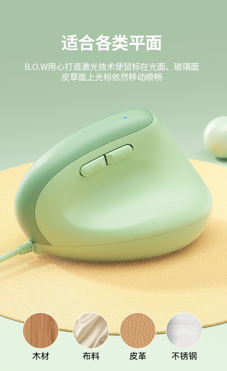 항시 BOW 인체공학적 수직 유선 마우스, 손목 받침대 포함, 무소음, 귀여운 여성용 스탠딩 저소음 마우스스토어 가기
