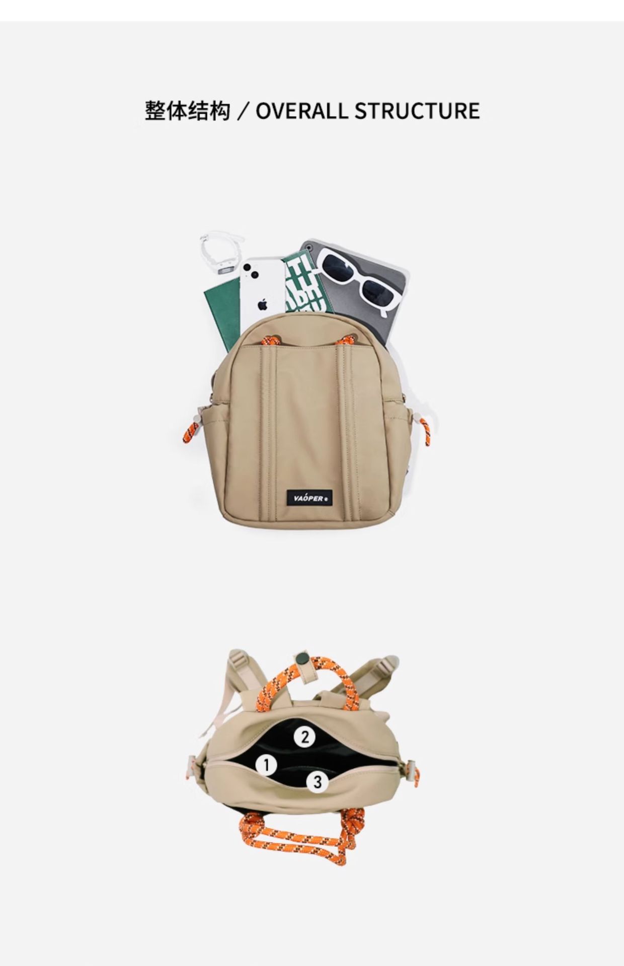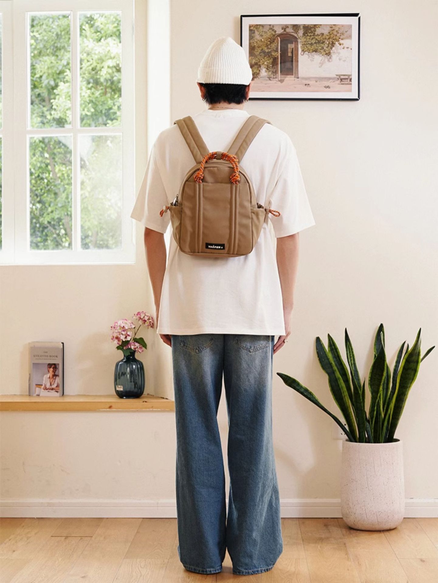 VAOPER 짠 로프 미니 디자인 틈새 Schoolbag 배낭 여성용 캐주얼 경량 문자 배낭