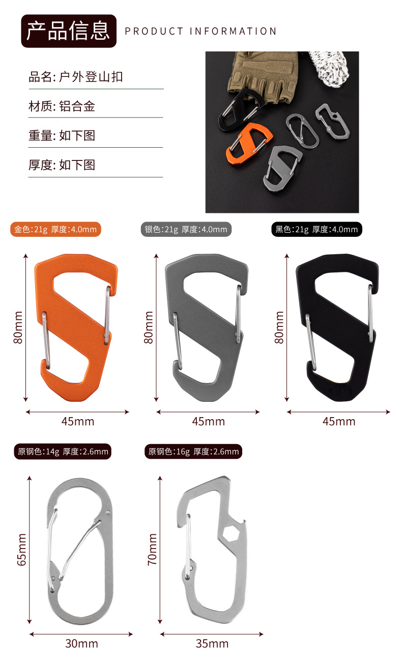 새로운 다채로운 알루미늄 합금 등산 버클 배낭 주전자 빠른 교수형 버클 다기능 S 자형 후크 알루미늄 봄 등산스토어 가기