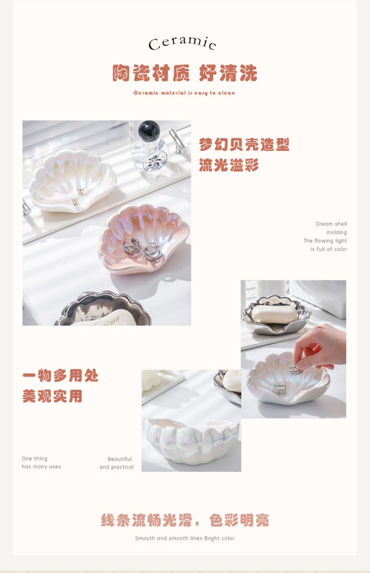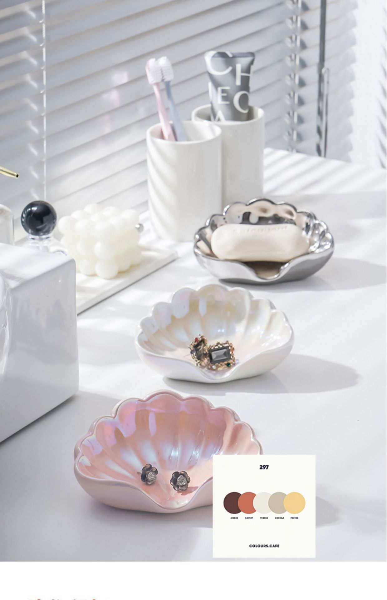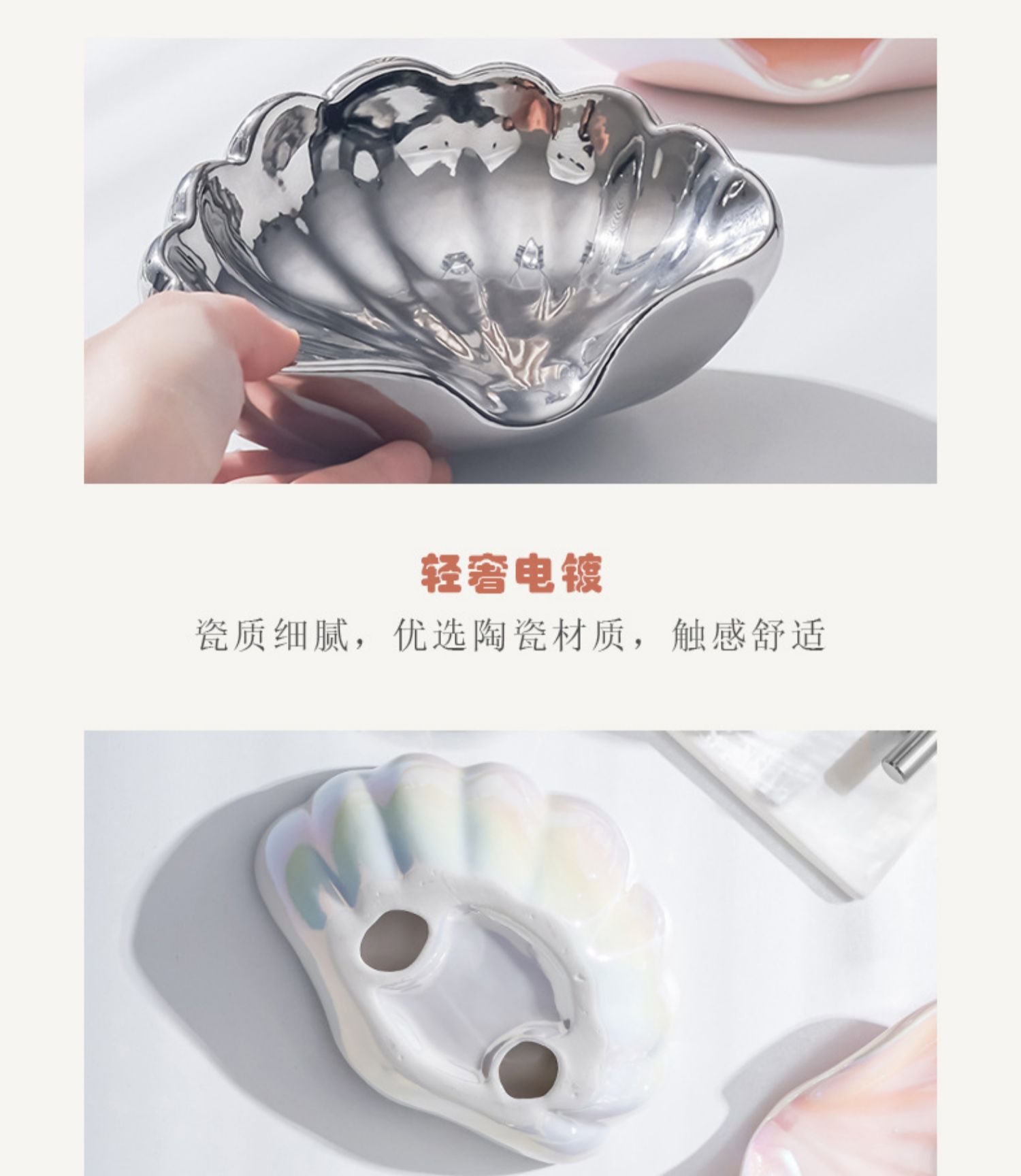 • 글레이즈 쉘 비누 접시-진주 가루