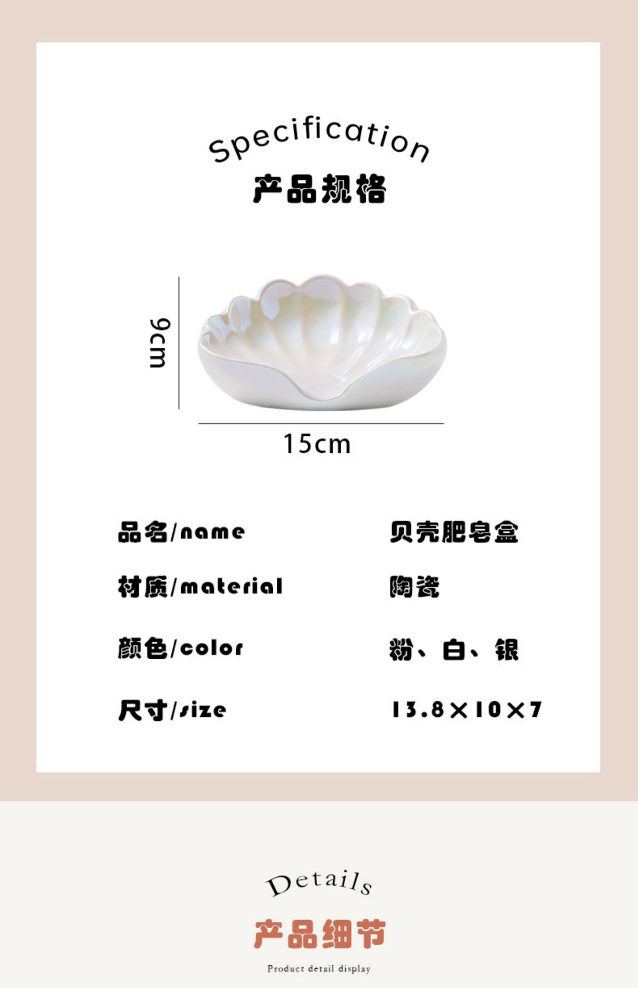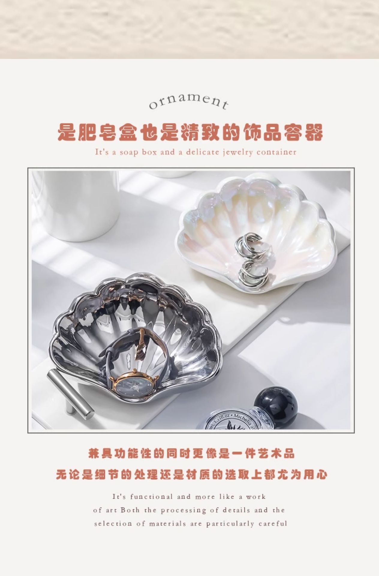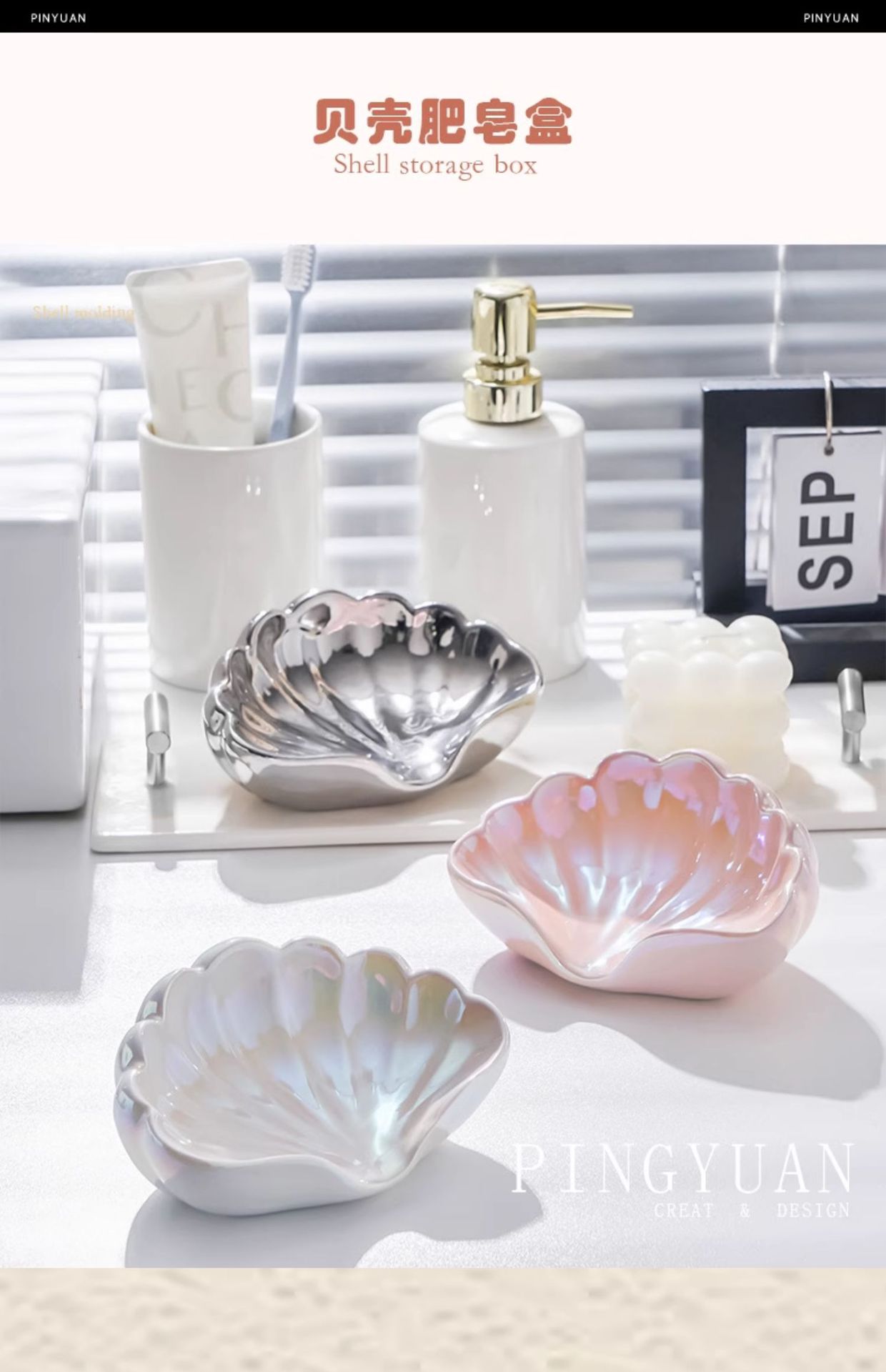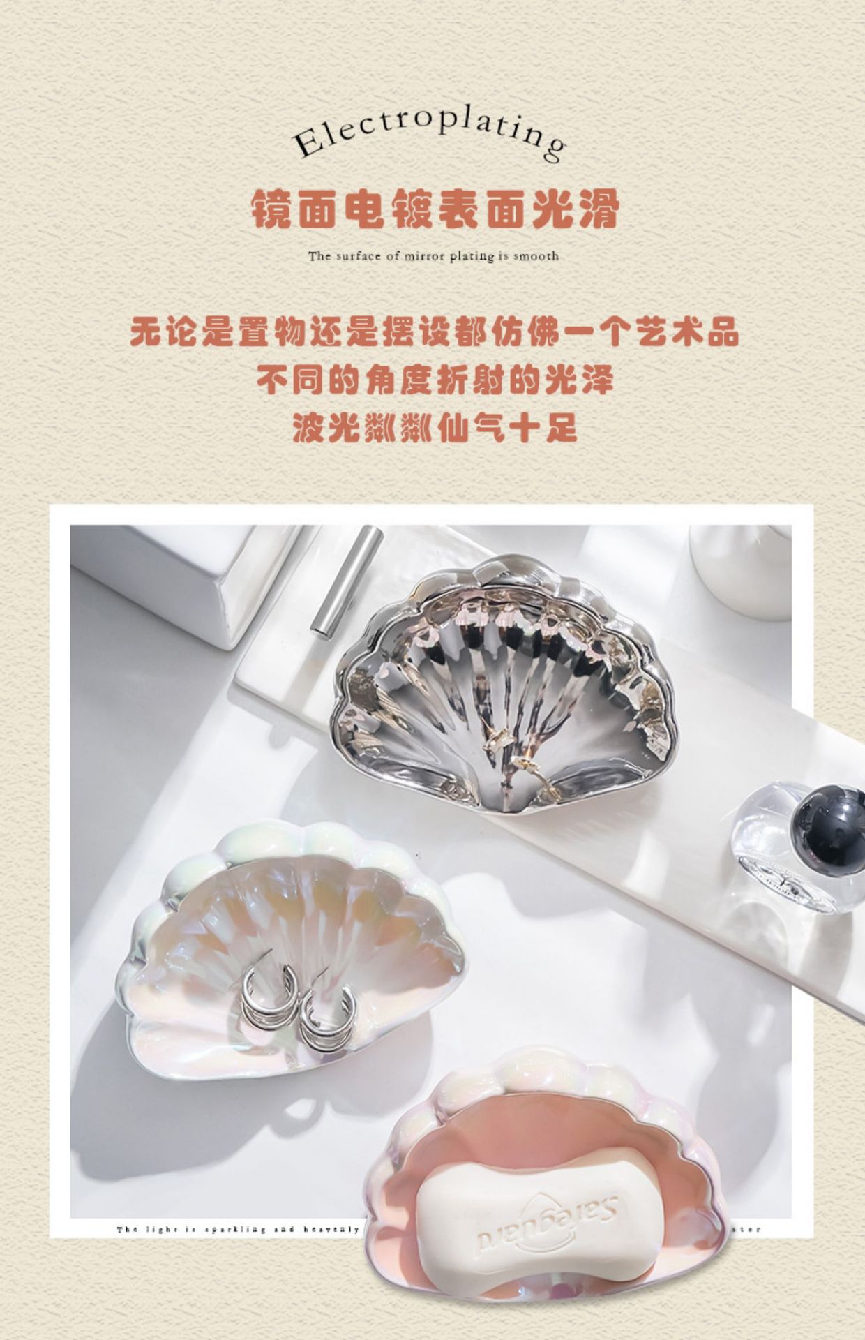 • 글레이즈 쉘 비누 접시-진주 가루