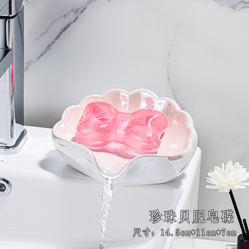 세라믹 쉘 비누 상자 욕실 크리 에이 티브 배수 비누 상자 욕실 싱크 가정용 하이 엔드 라이트 럭셔리 비누 랙스토어 가기