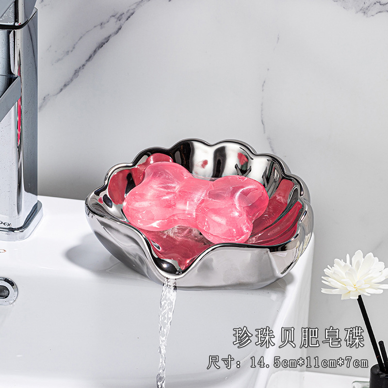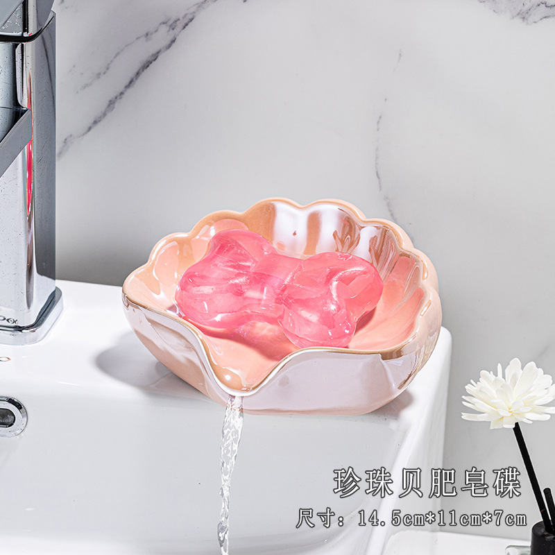 세라믹 쉘 비누 상자 욕실 크리 에이 티브 배수 비누 상자 욕실 싱크 가정용 하이 엔드 라이트 럭셔리 비누 랙