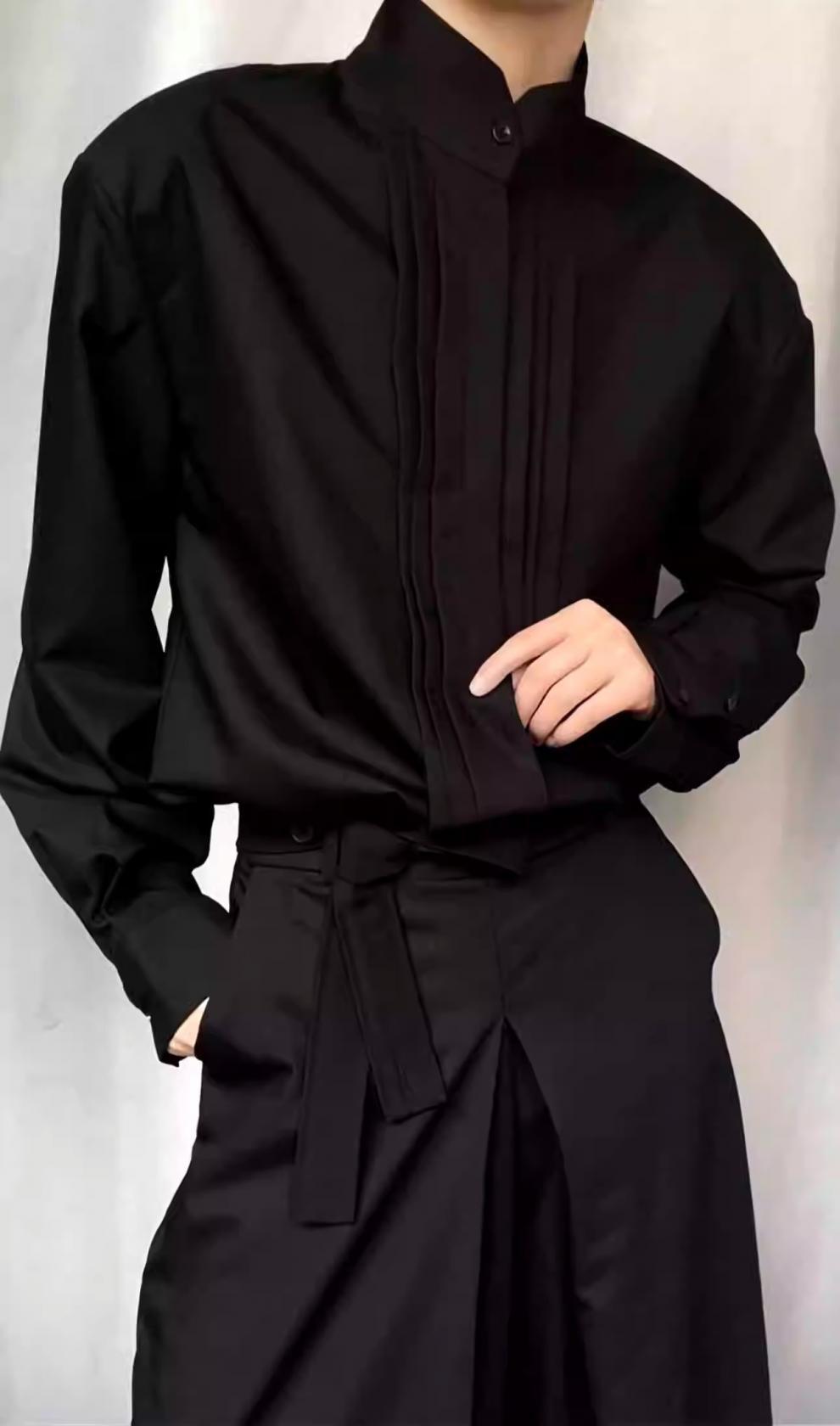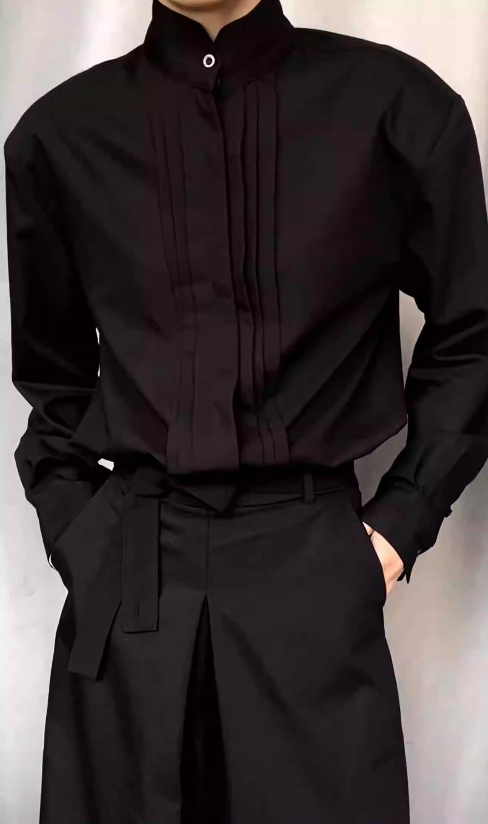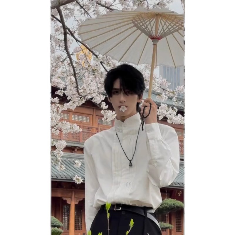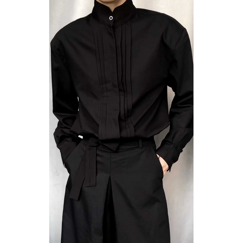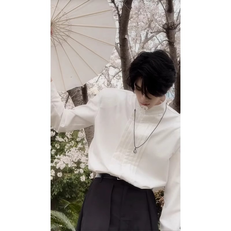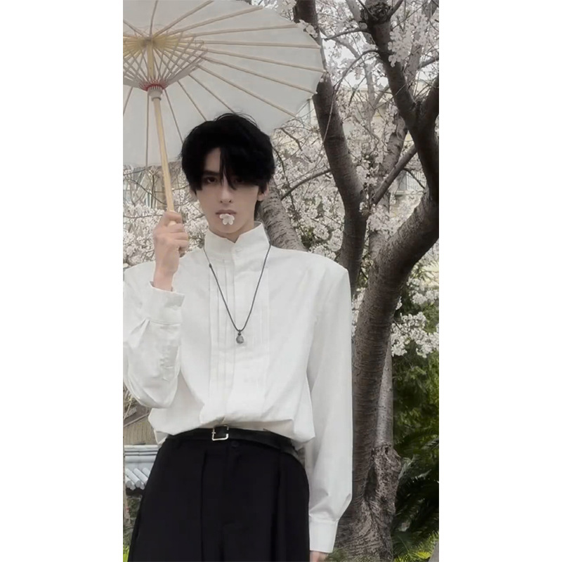 새로운 중국 남성 의류 국가 스타일 고급 궁전 어깨 패드 셔츠 남성 디자인 센스 중산 탕 세트 한푸 긴팔 셔츠스토어 가기