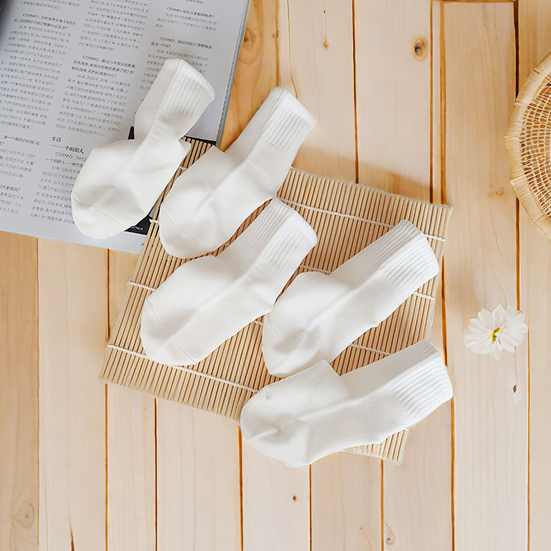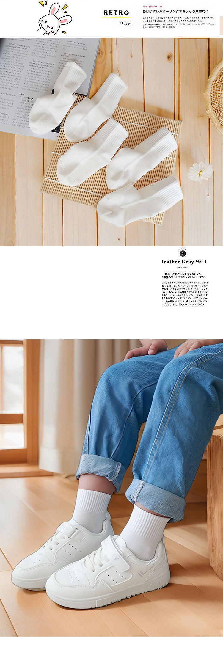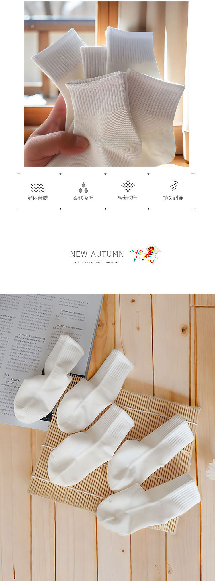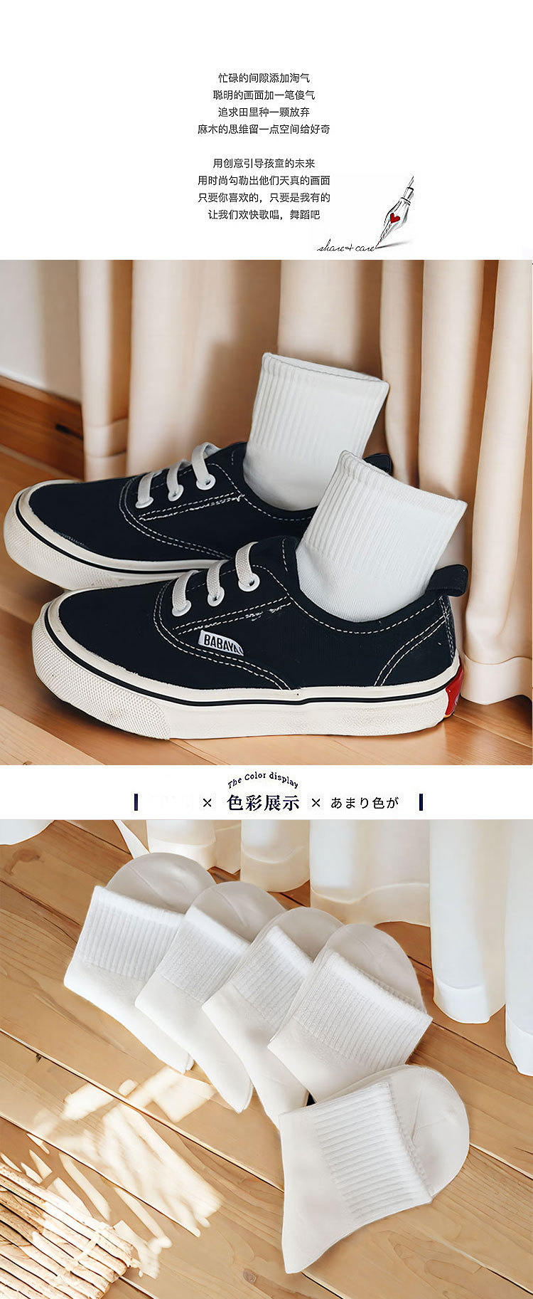 도매 어린이 양말 소년과 소녀 단색 흰색 가을 통기성 빗질 면화 다용도 학생 아기 튜브 양말스토어 가기