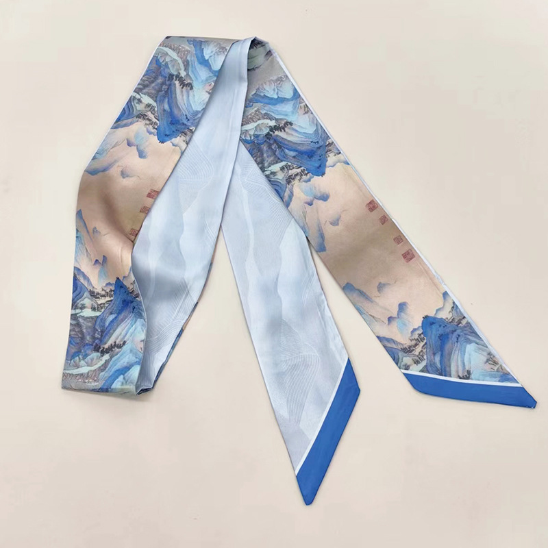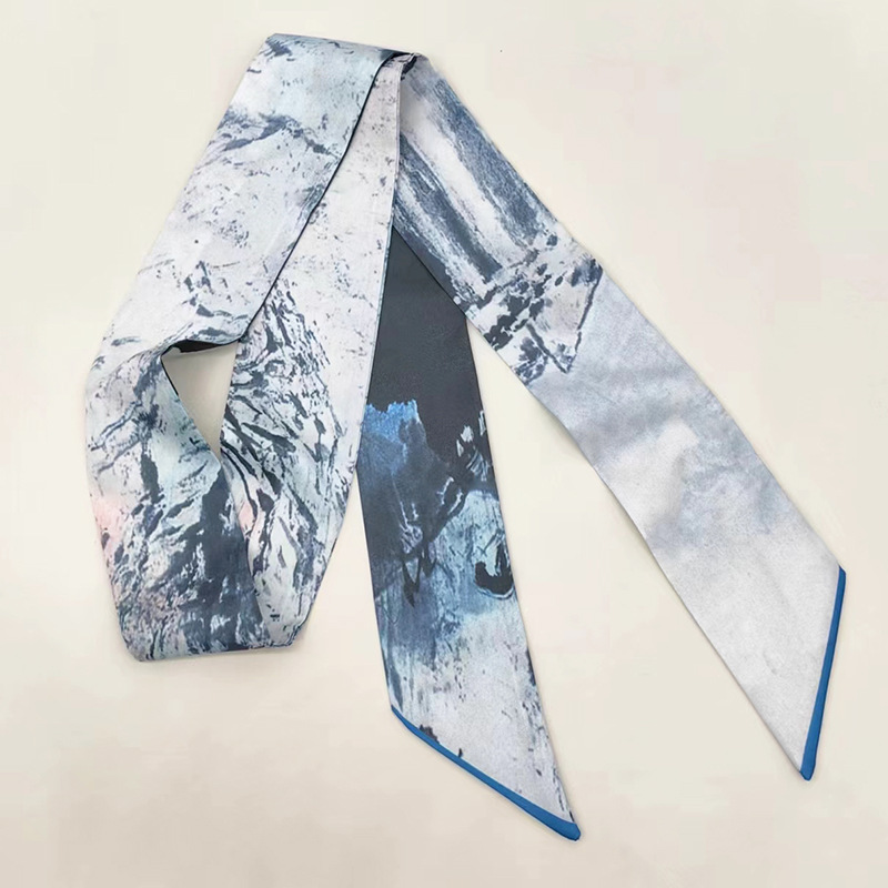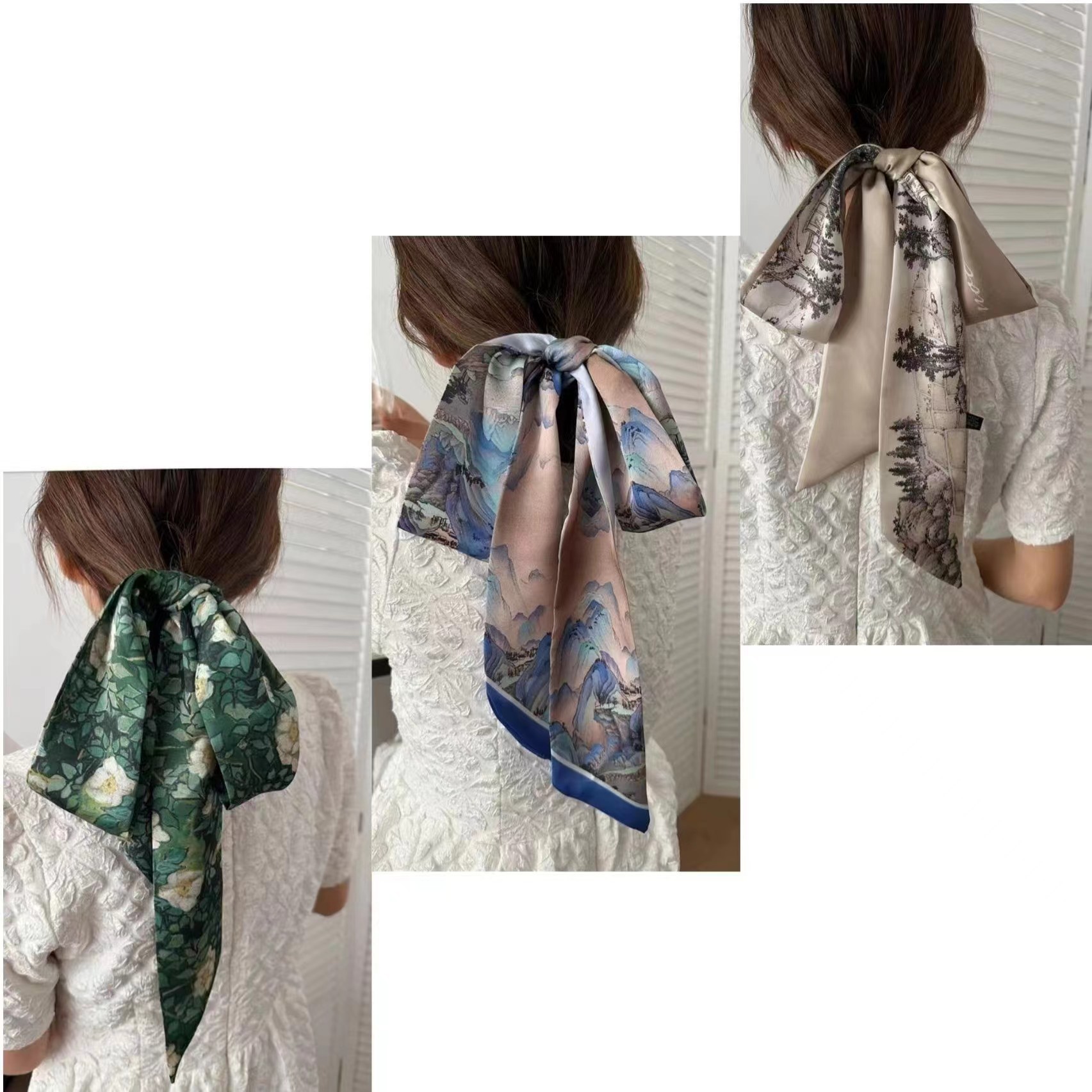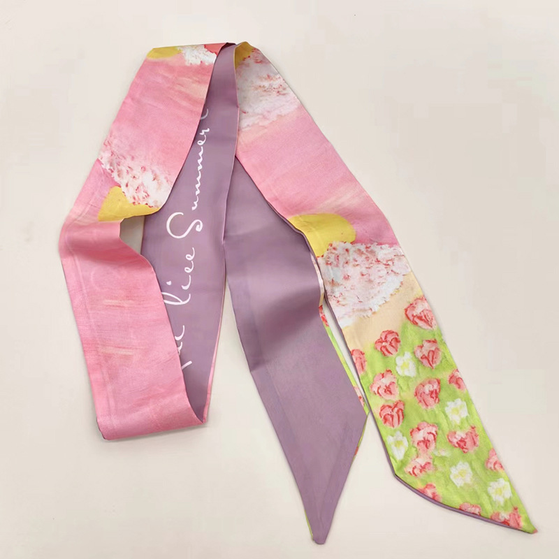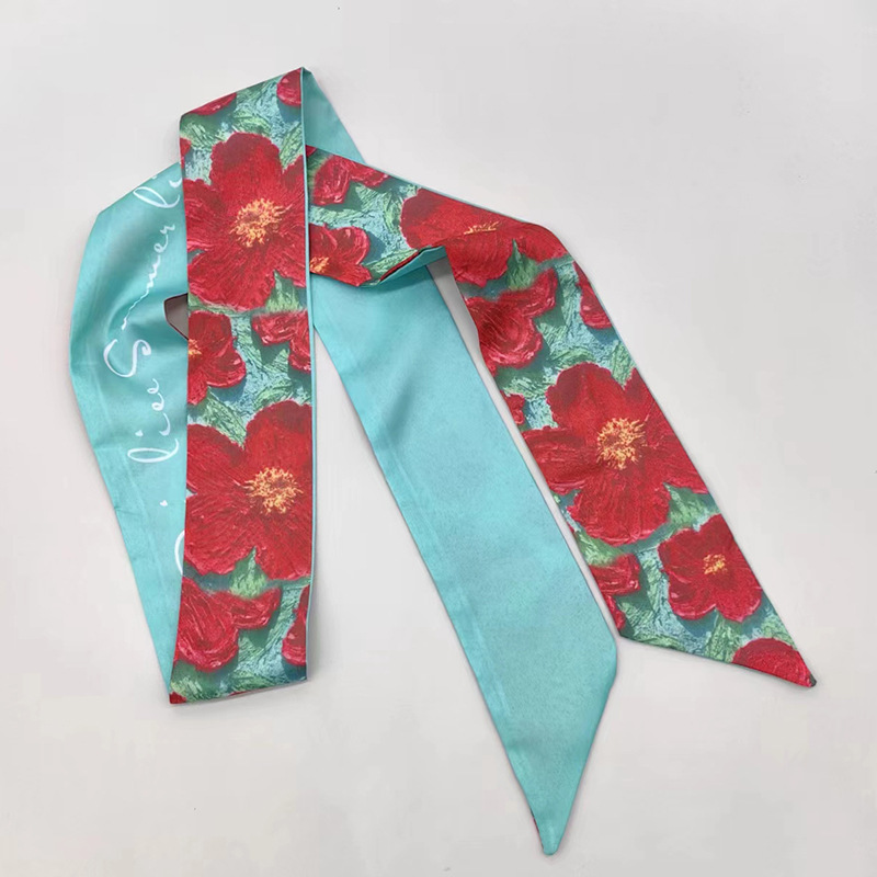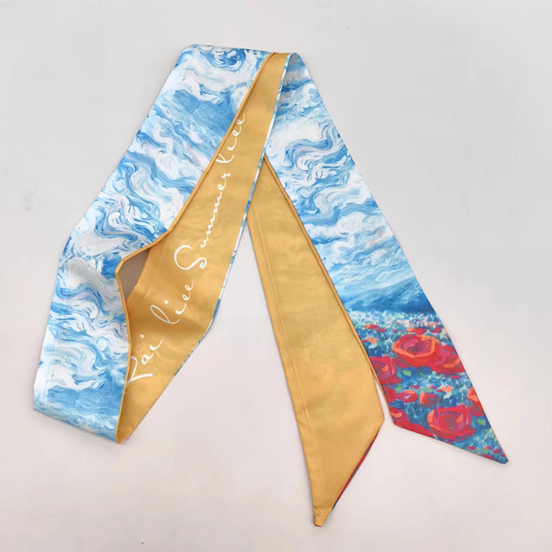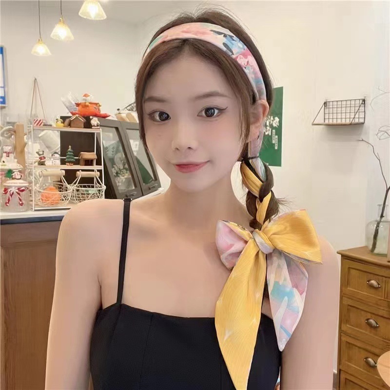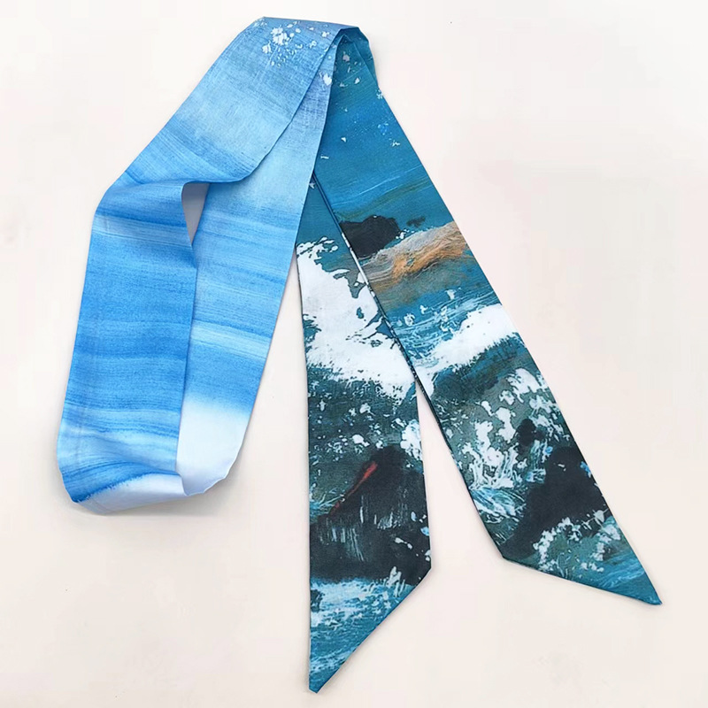 여름 올 매치 페인팅 실크 스카프 얇은 좁은 긴 헤어 밴드 리본 타이 백 핸들 리본 장식 아트 스카프