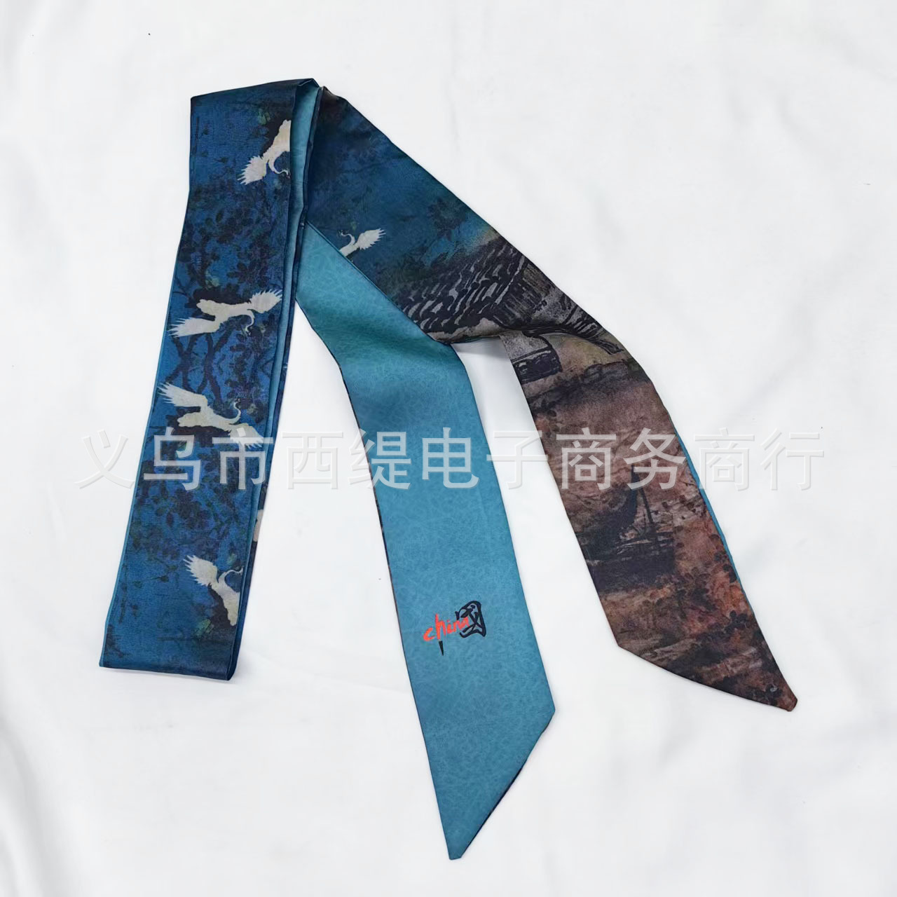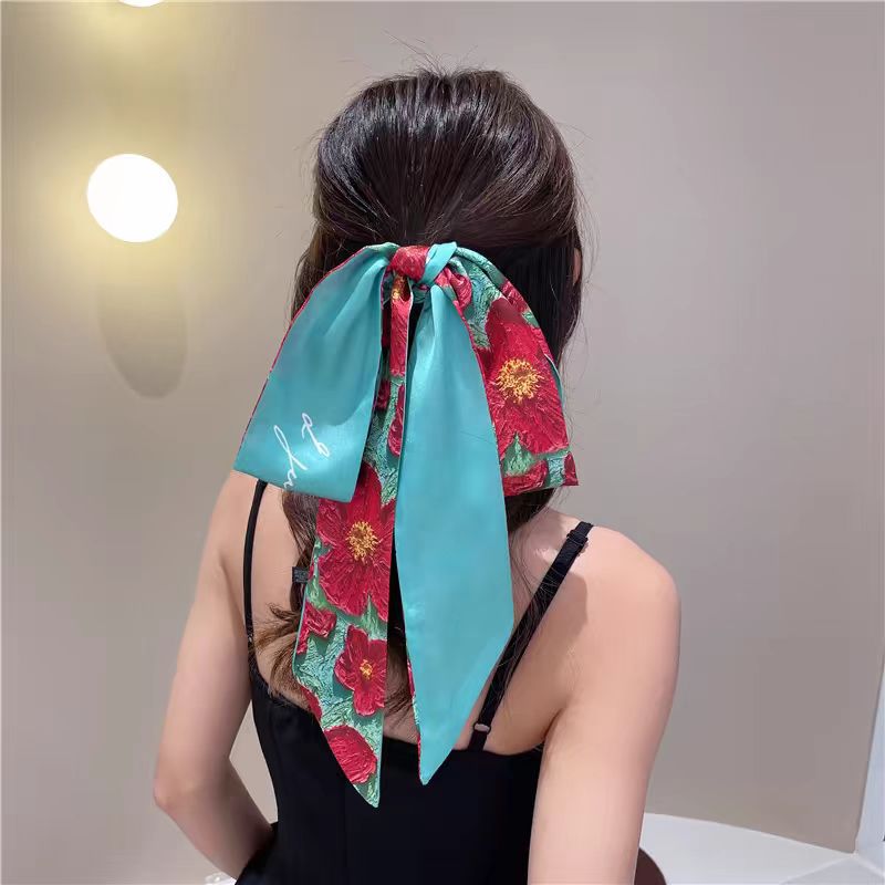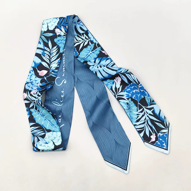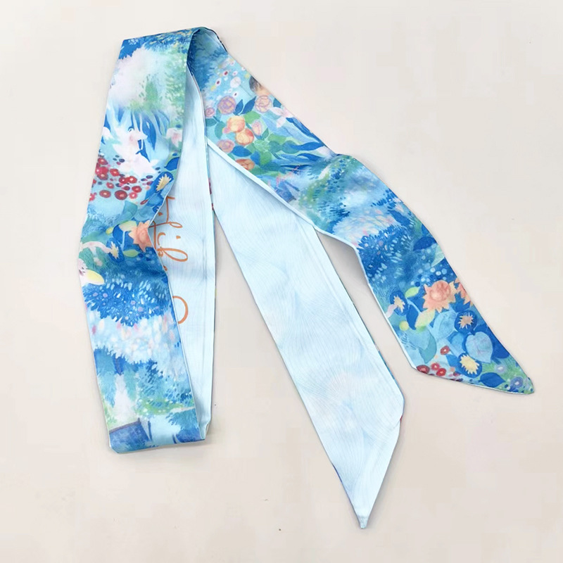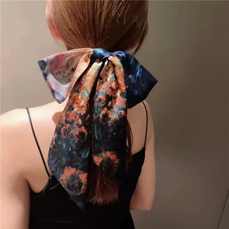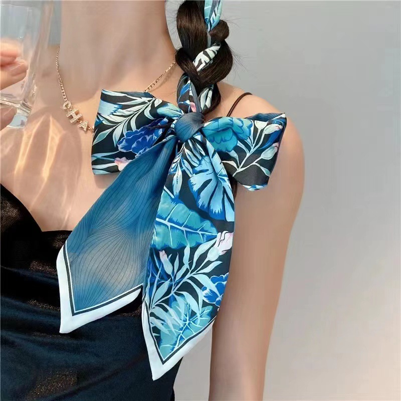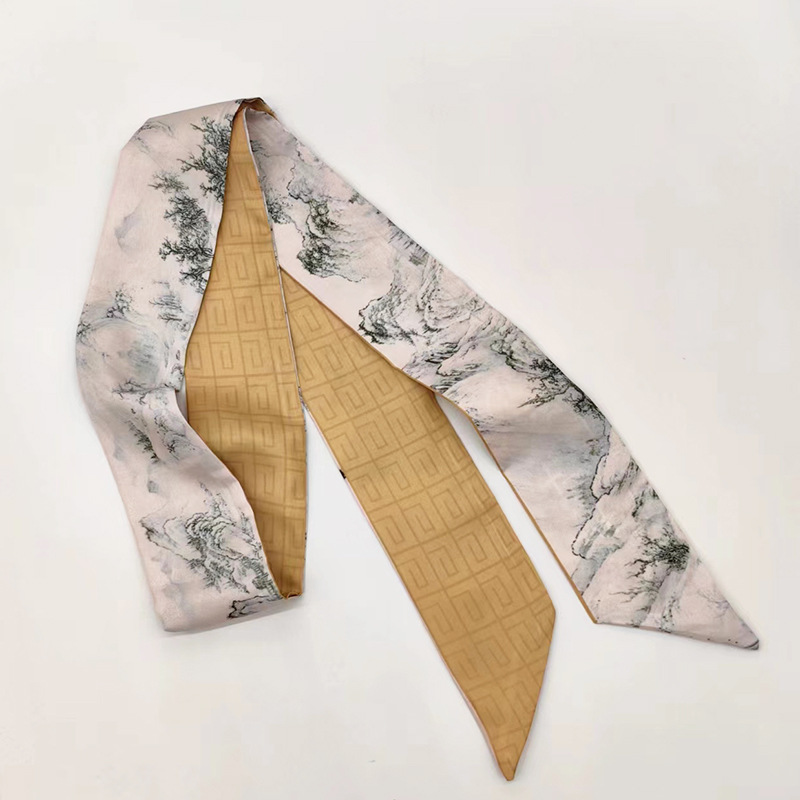여름 올 매치 페인팅 실크 스카프 얇은 좁은 긴 헤어 밴드 리본 타이 백 핸들 리본 장식 아트 스카프