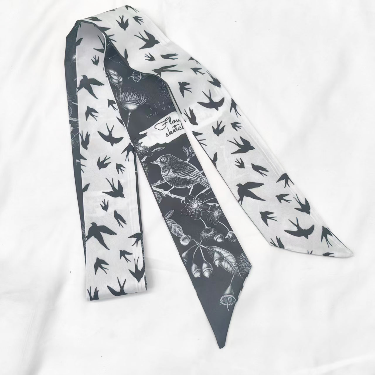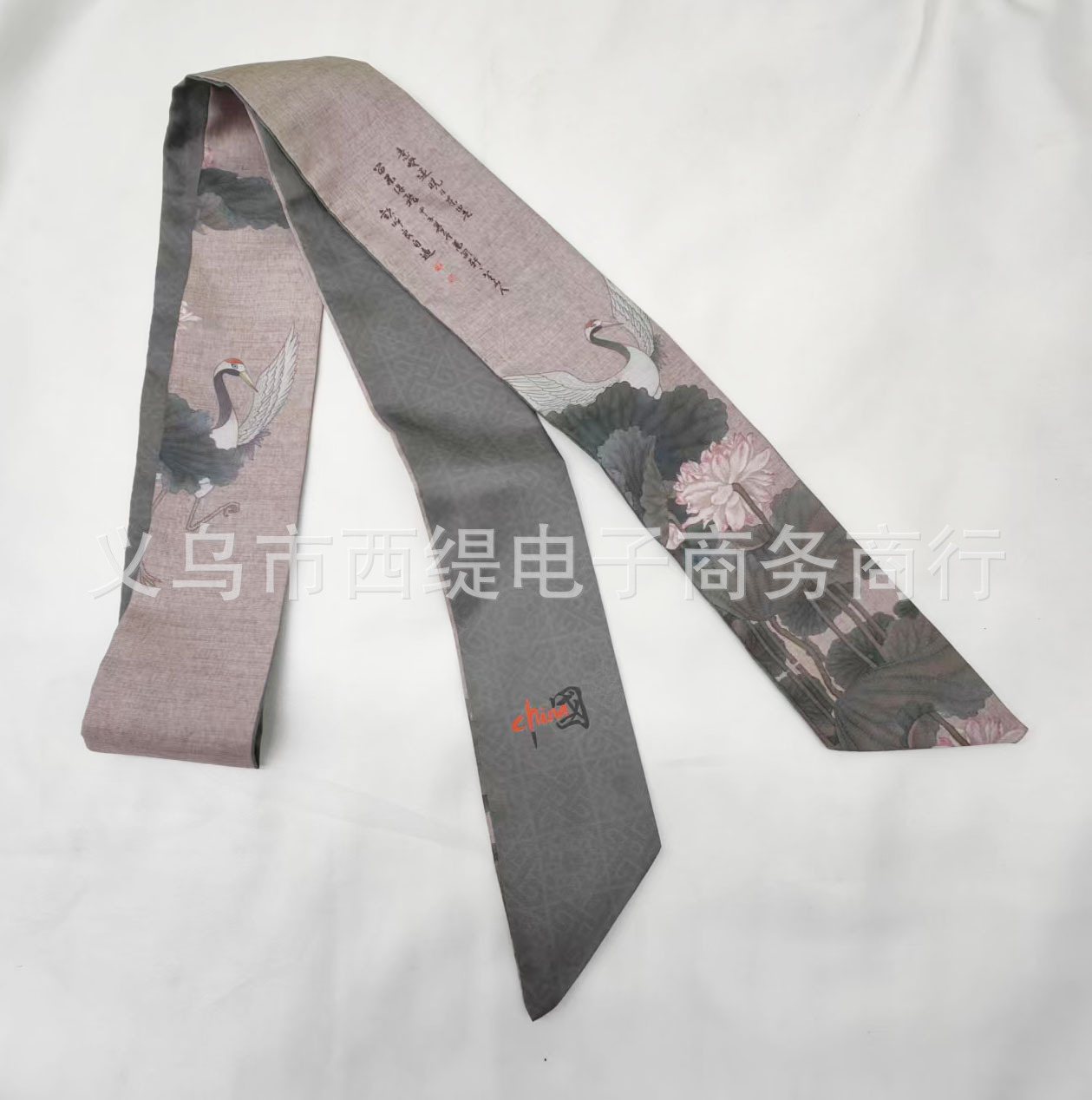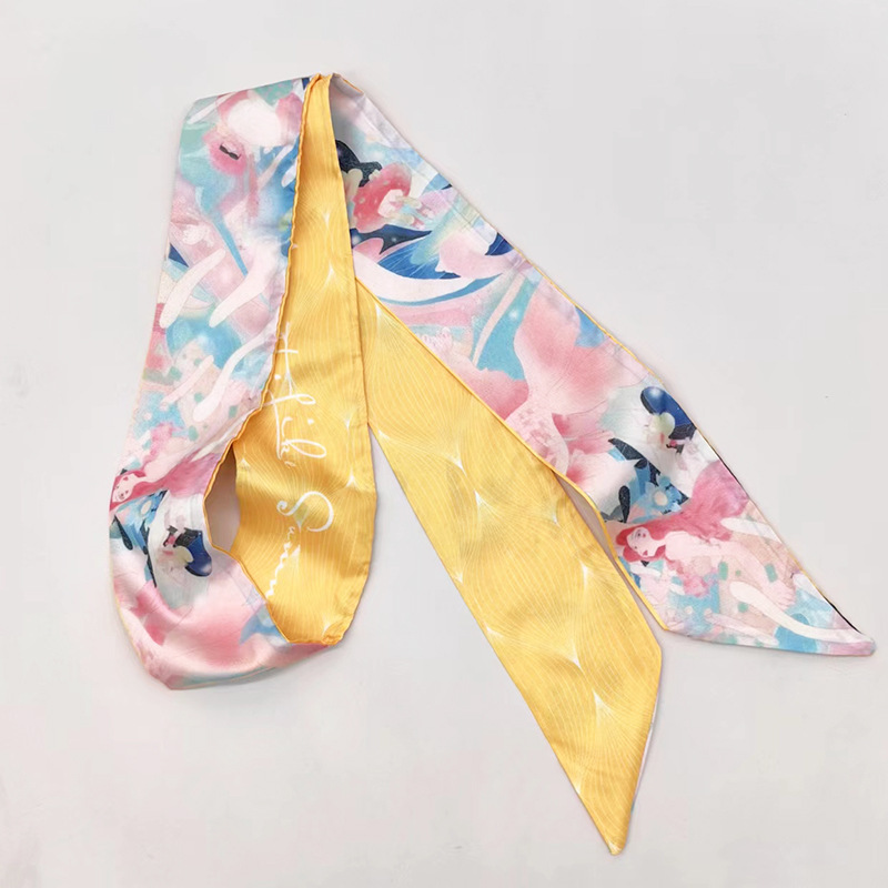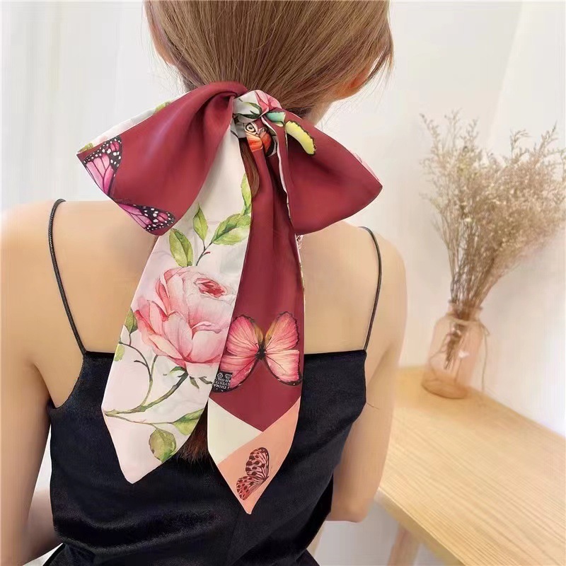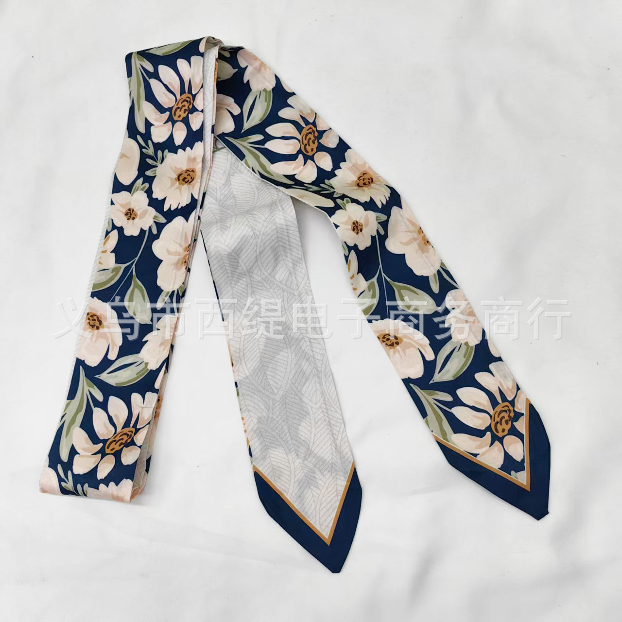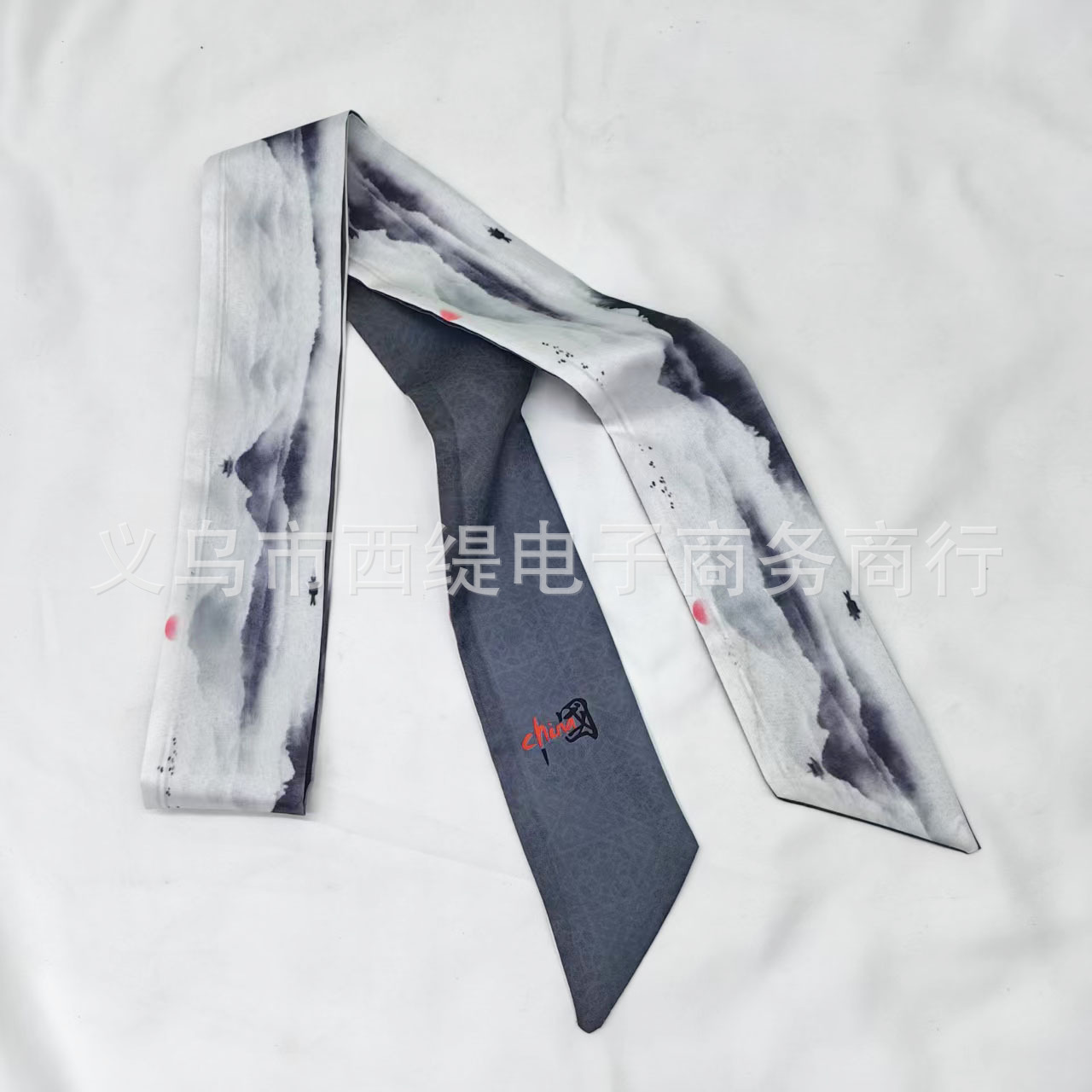 여름 올 매치 페인팅 실크 스카프 얇은 좁은 긴 헤어 밴드 리본 타이 백 핸들 리본 장식 아트 스카프