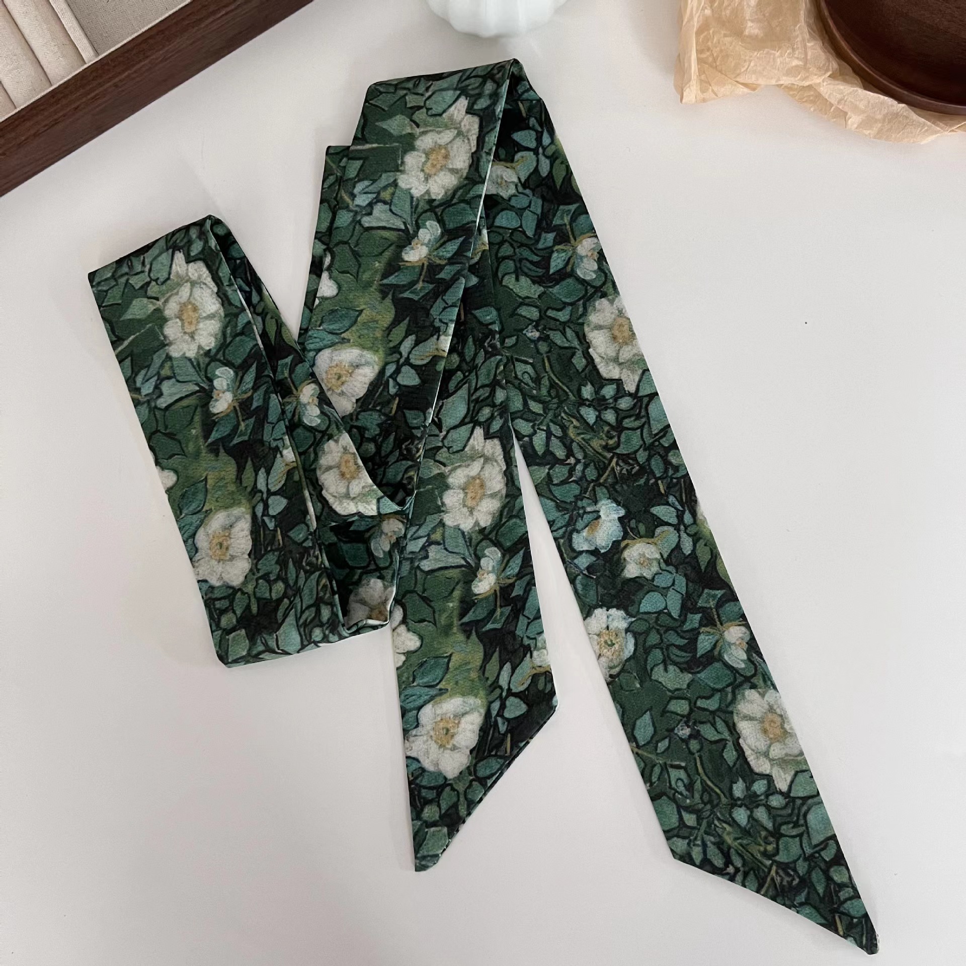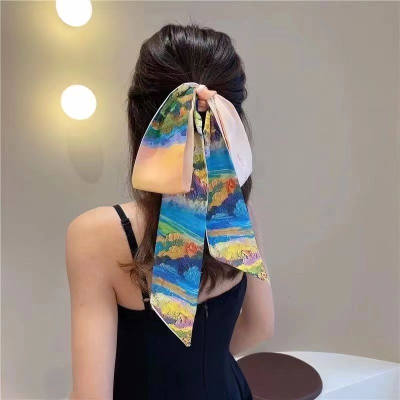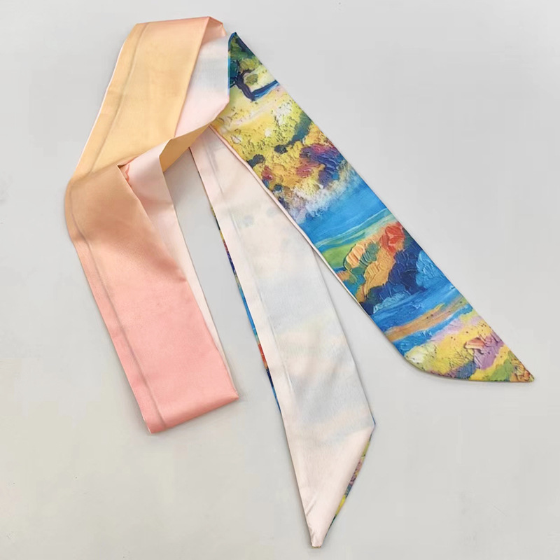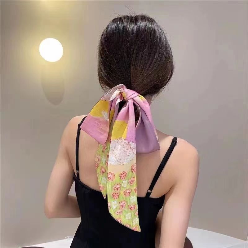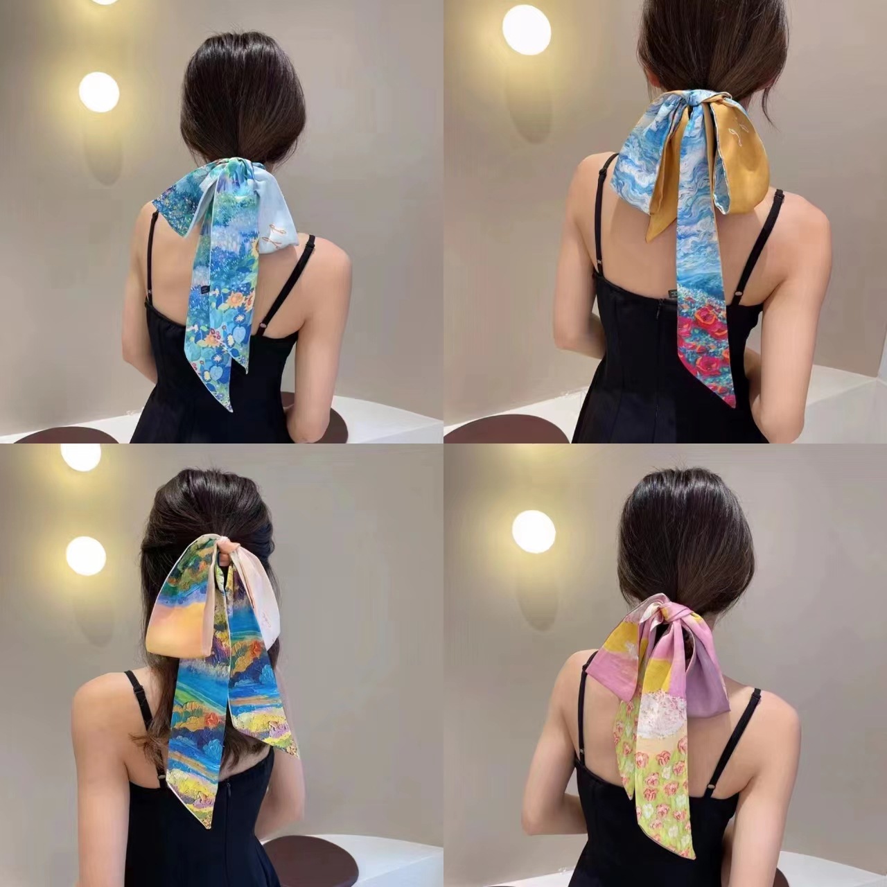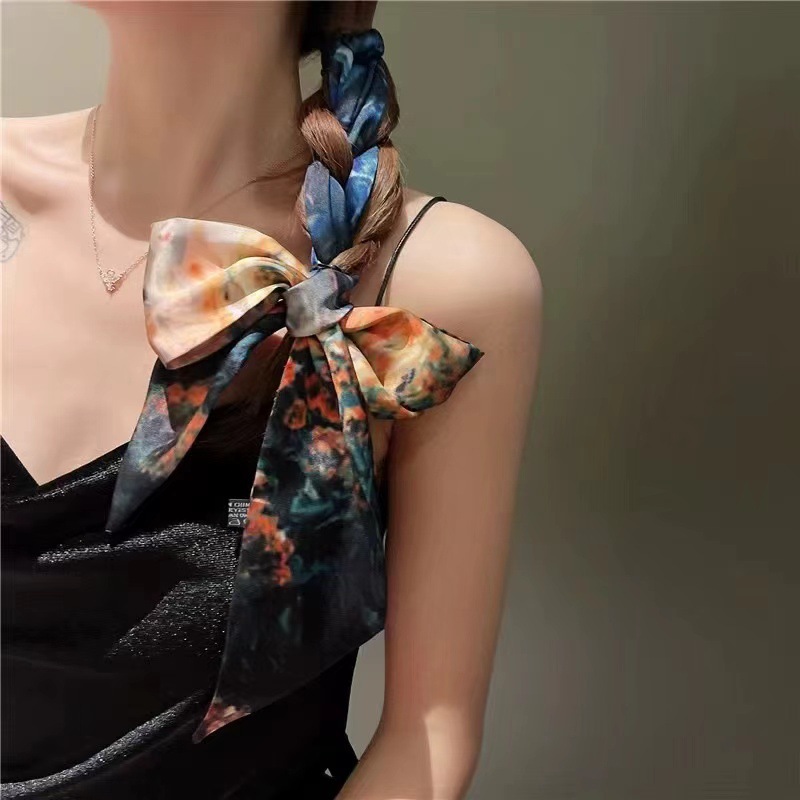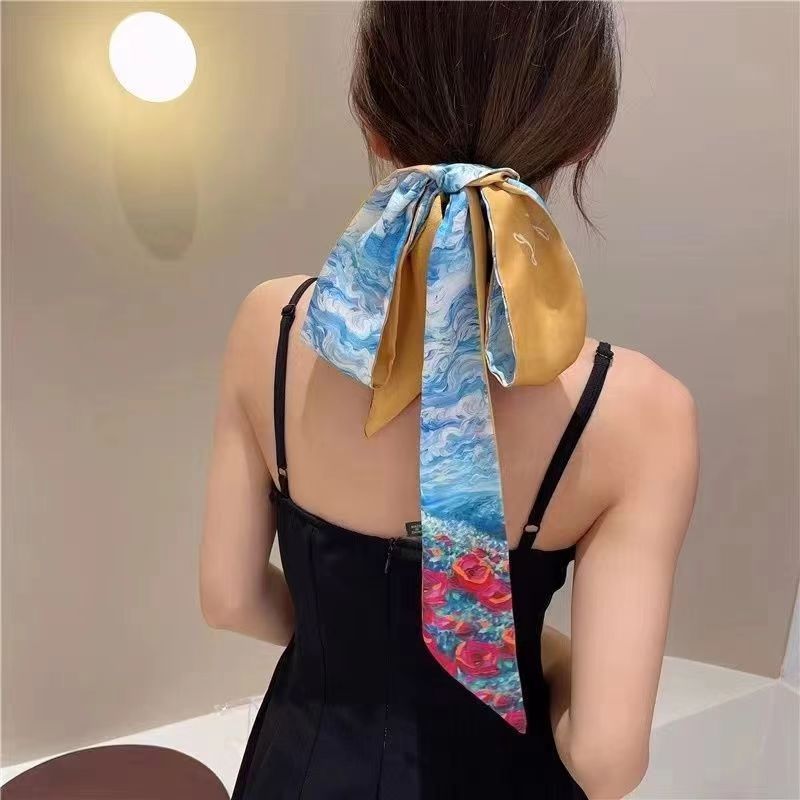 여름 올 매치 페인팅 실크 스카프 얇은 좁은 긴 헤어 밴드 리본 타이 백 핸들 리본 장식 아트 스카프스토어 가기
