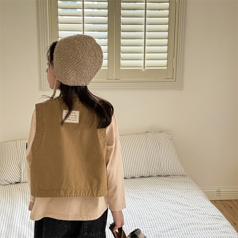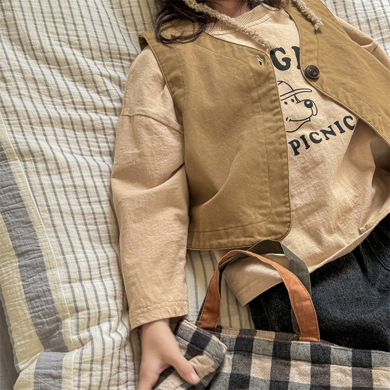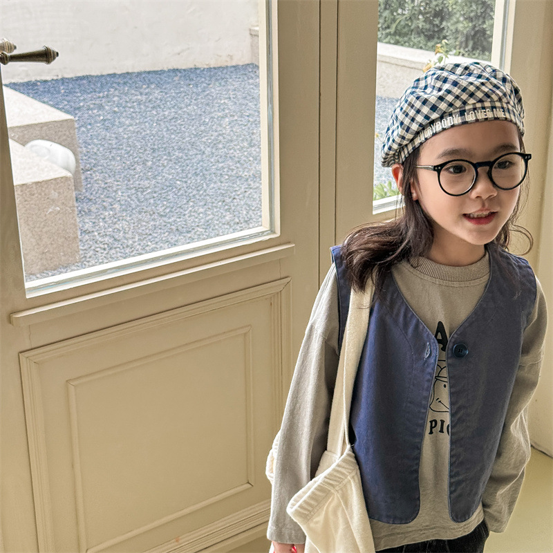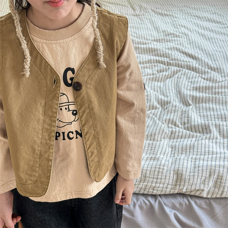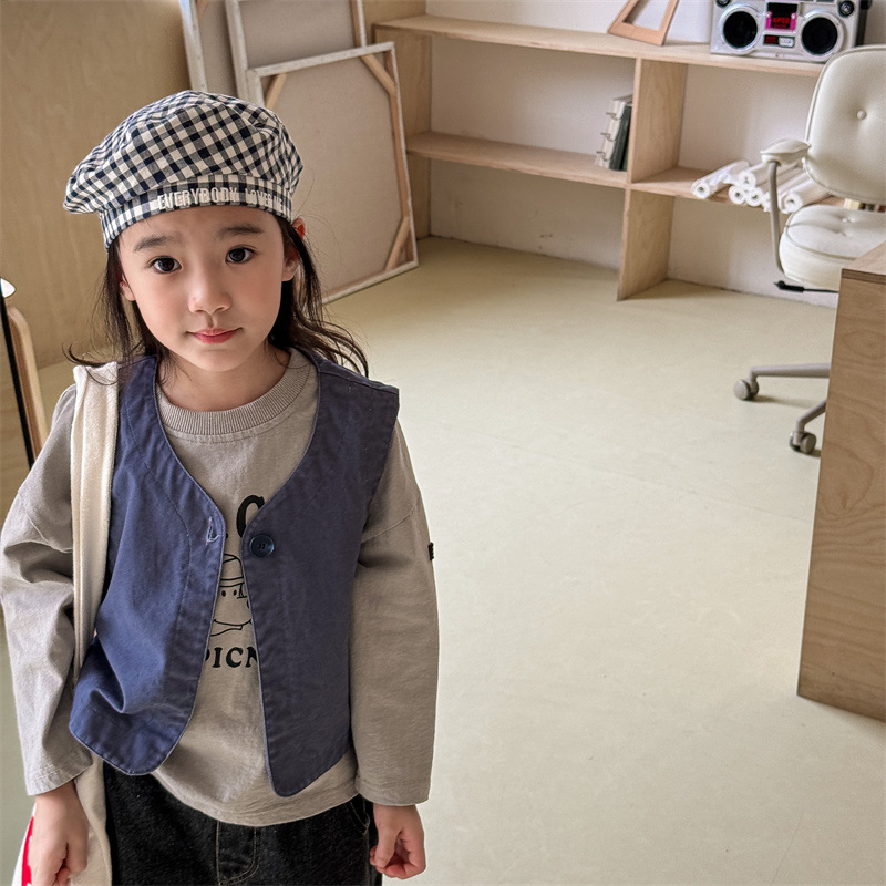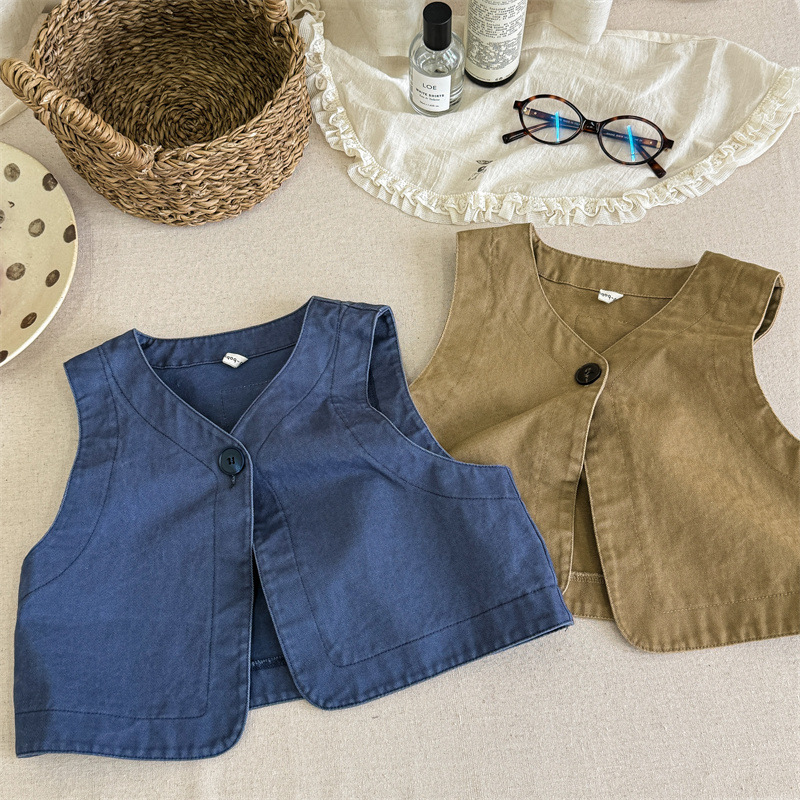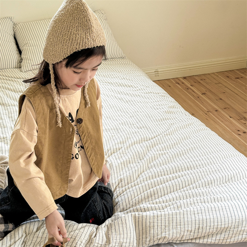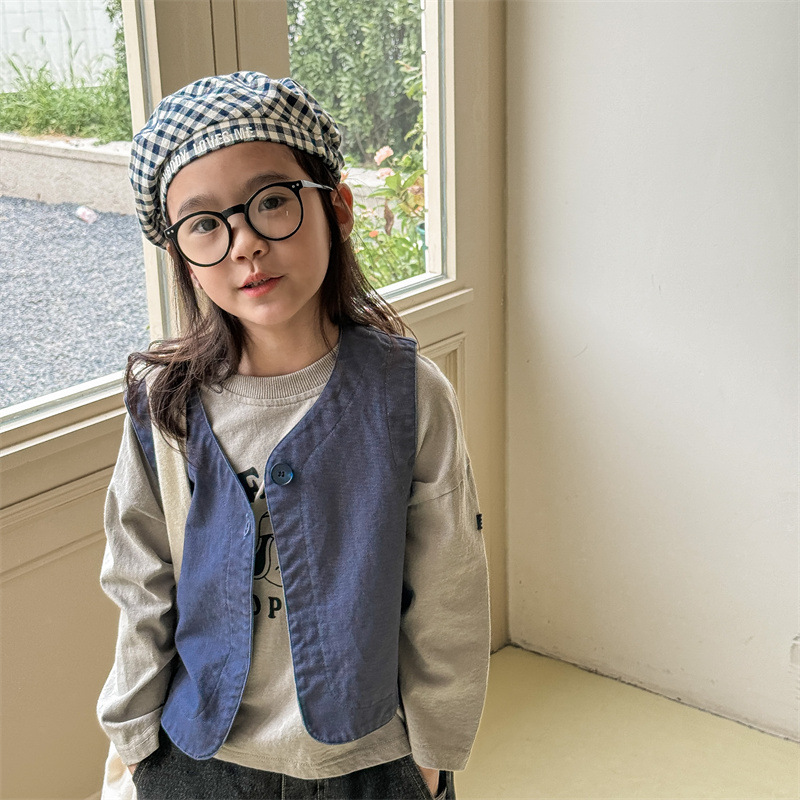 2025 가을 아동복 아동 한국 스타일 가을 의류 워시 코튼 조끼 소녀 봄, 가을 양복 조끼 5528
