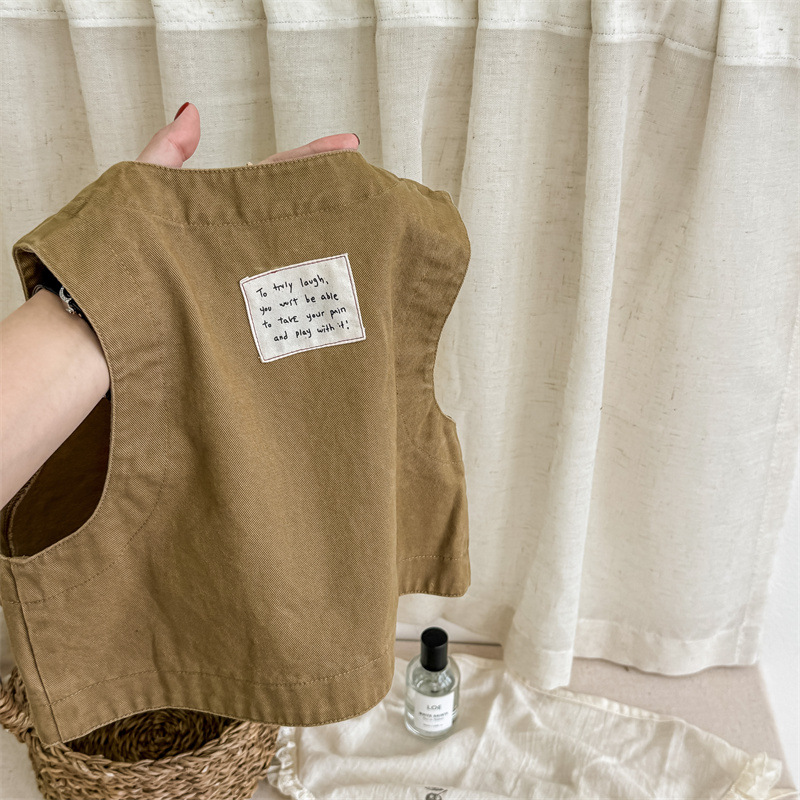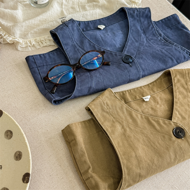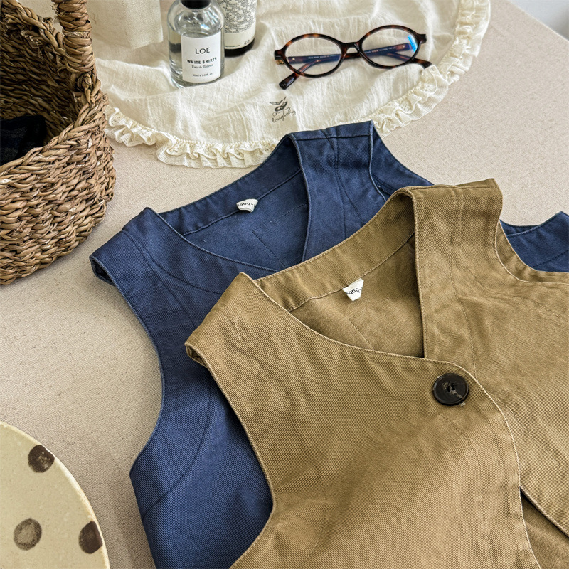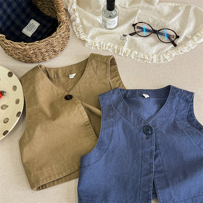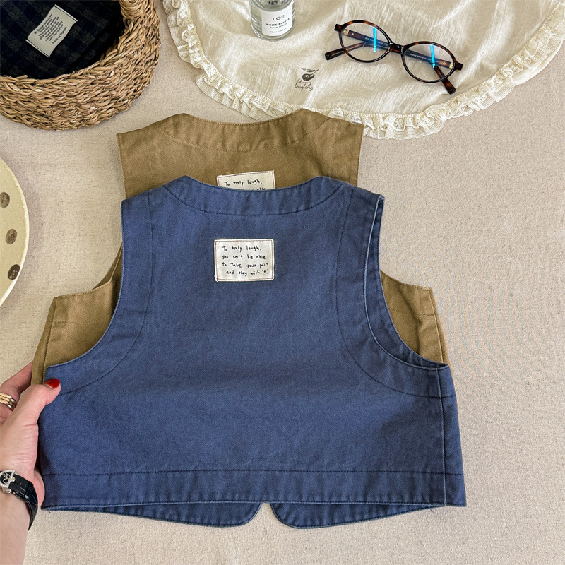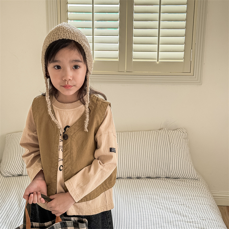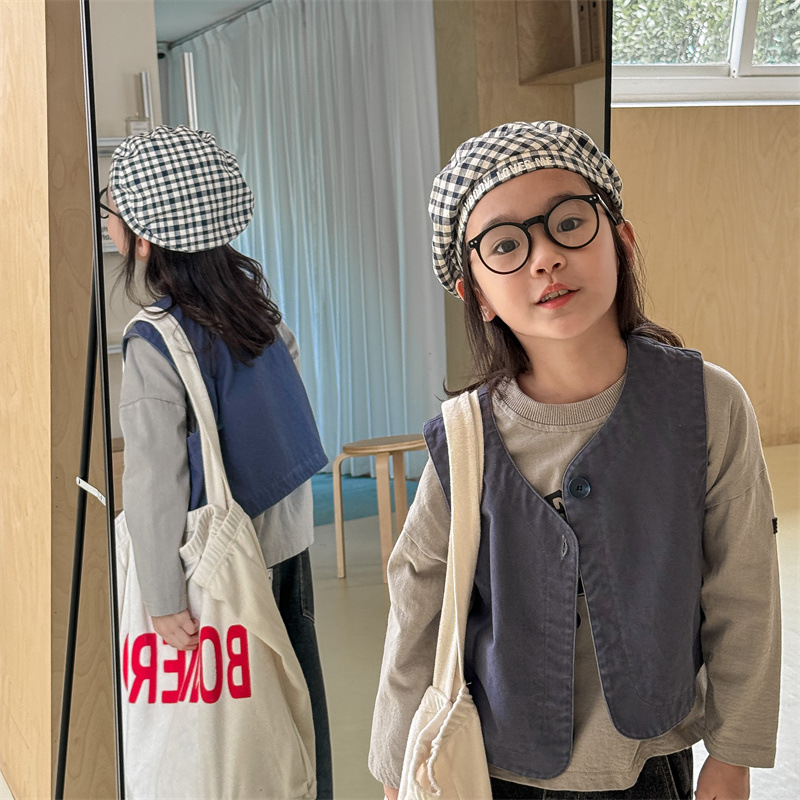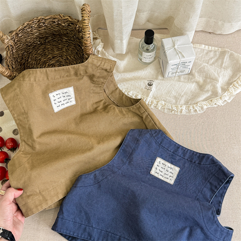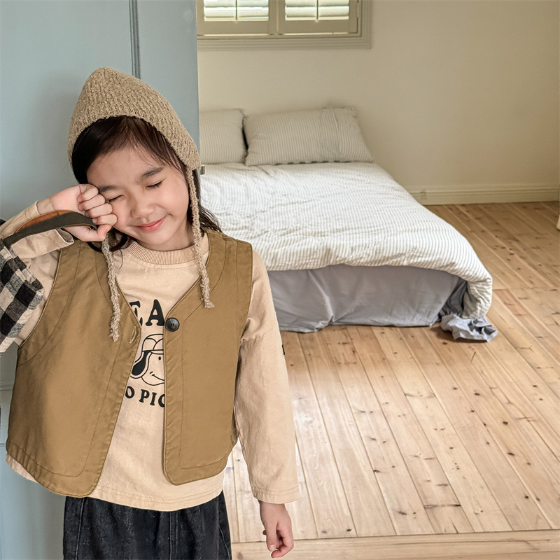 2025 가을 아동복 아동 한국 스타일 가을 의류 워시 코튼 조끼 소녀 봄, 가을 양복 조끼 5528