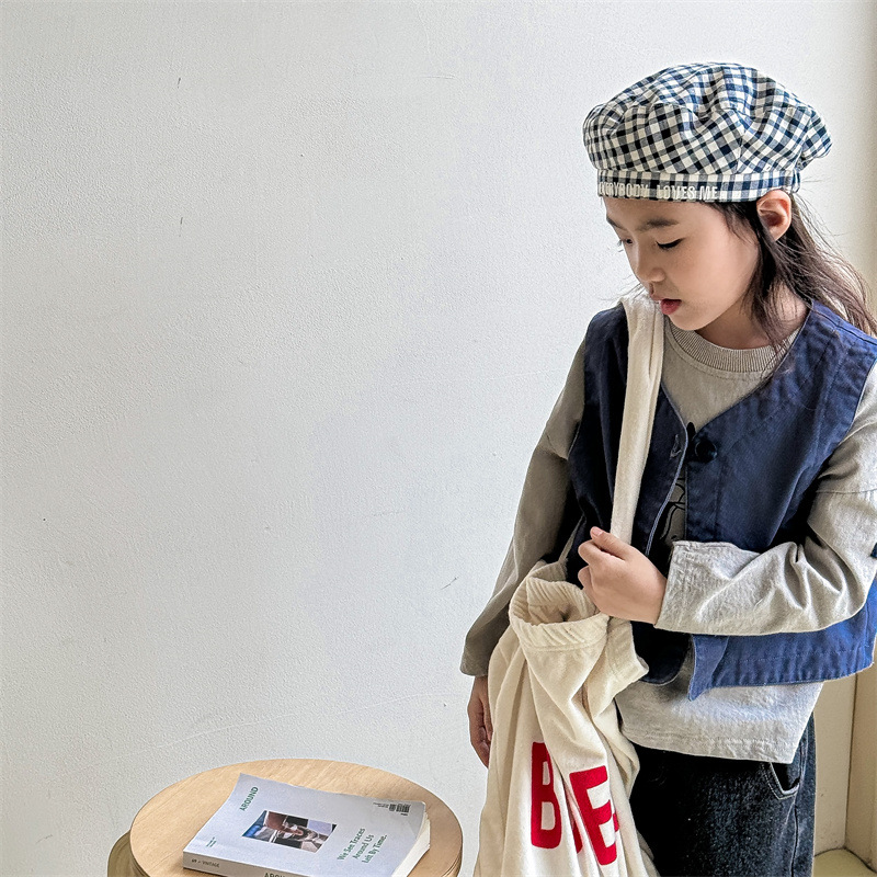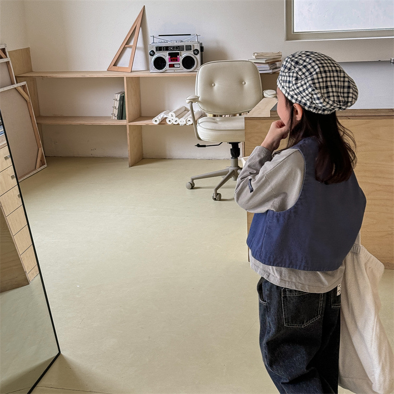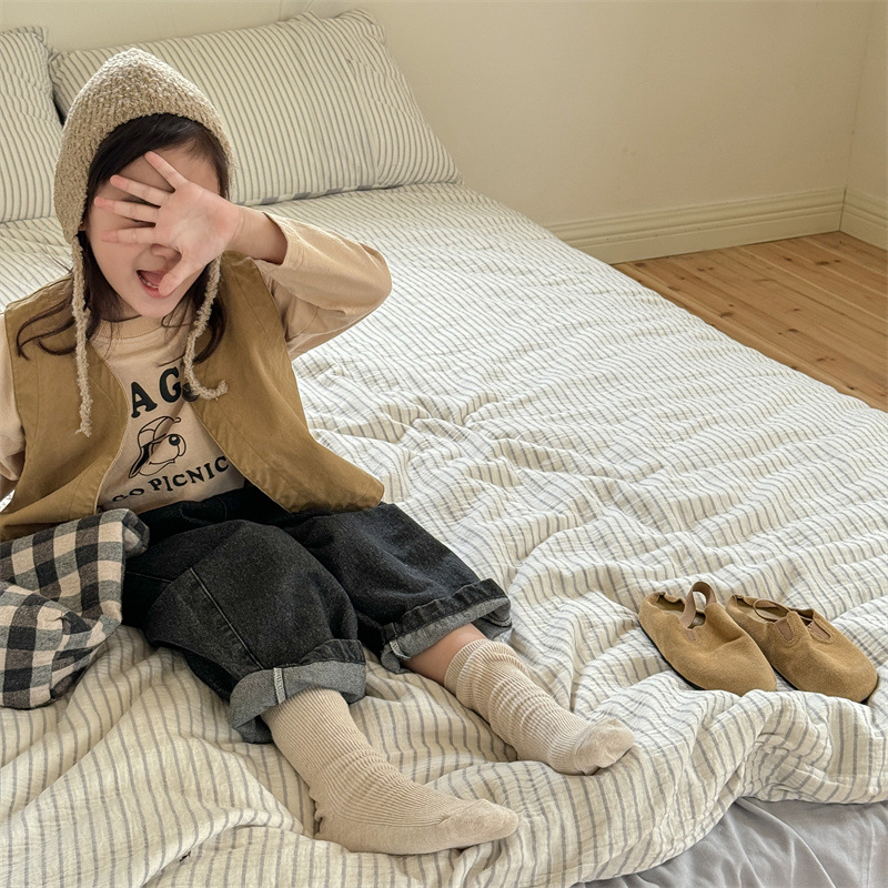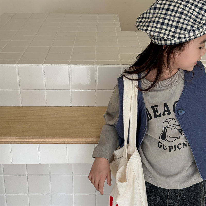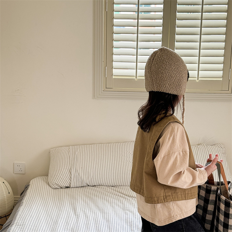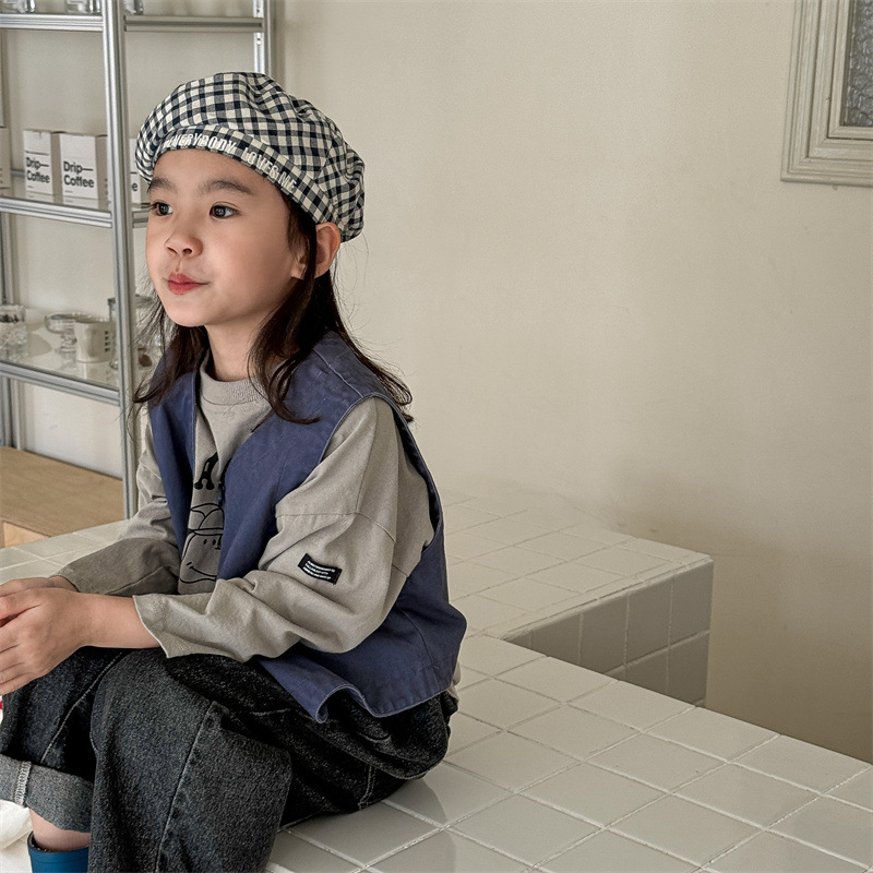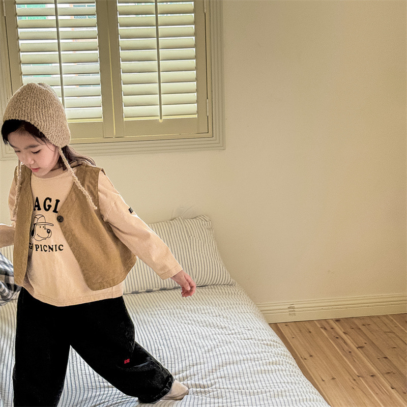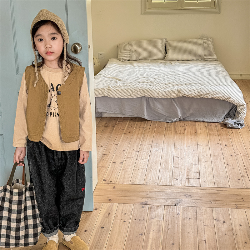 2025 가을 아동복 아동 한국 스타일 가을 의류 워시 코튼 조끼 소녀 봄, 가을 양복 조끼 5528