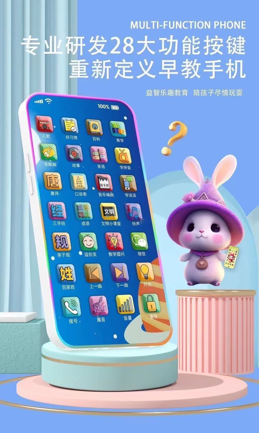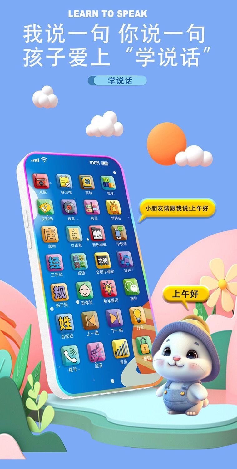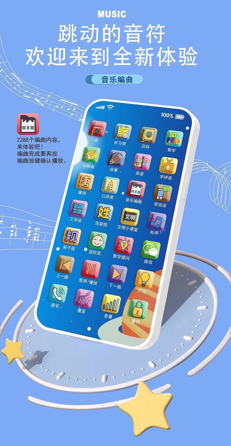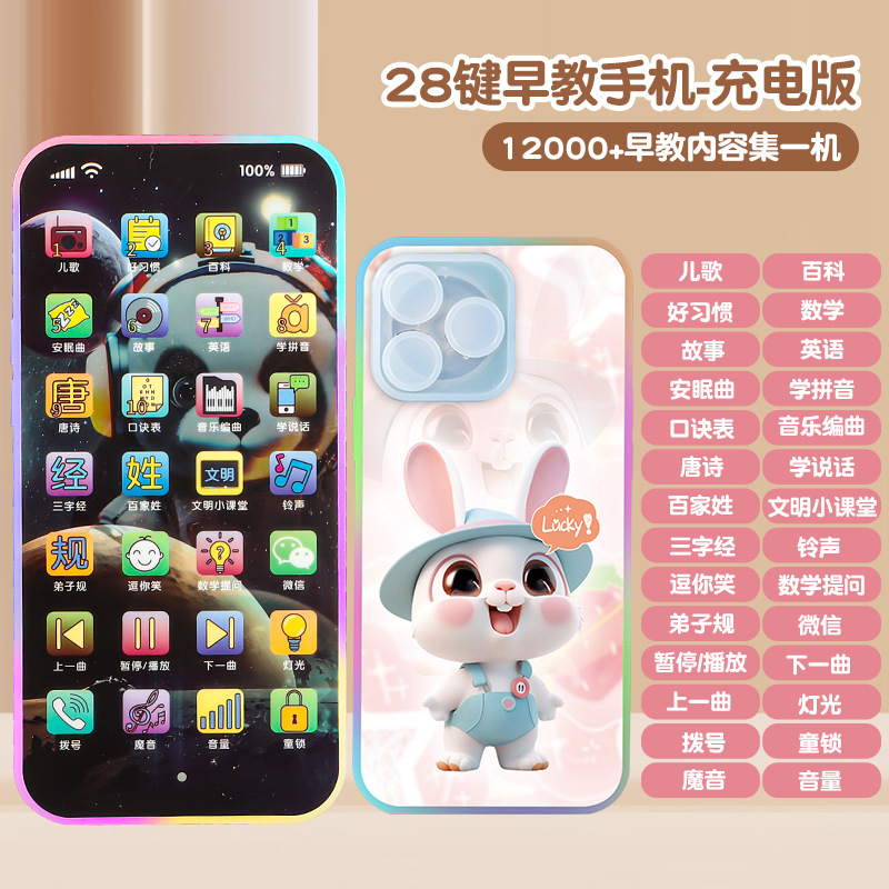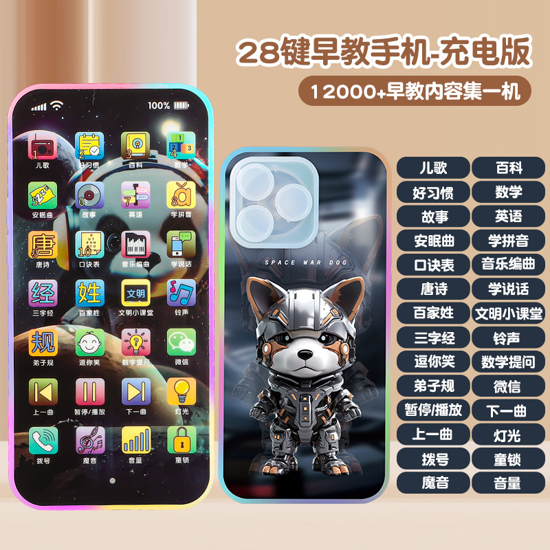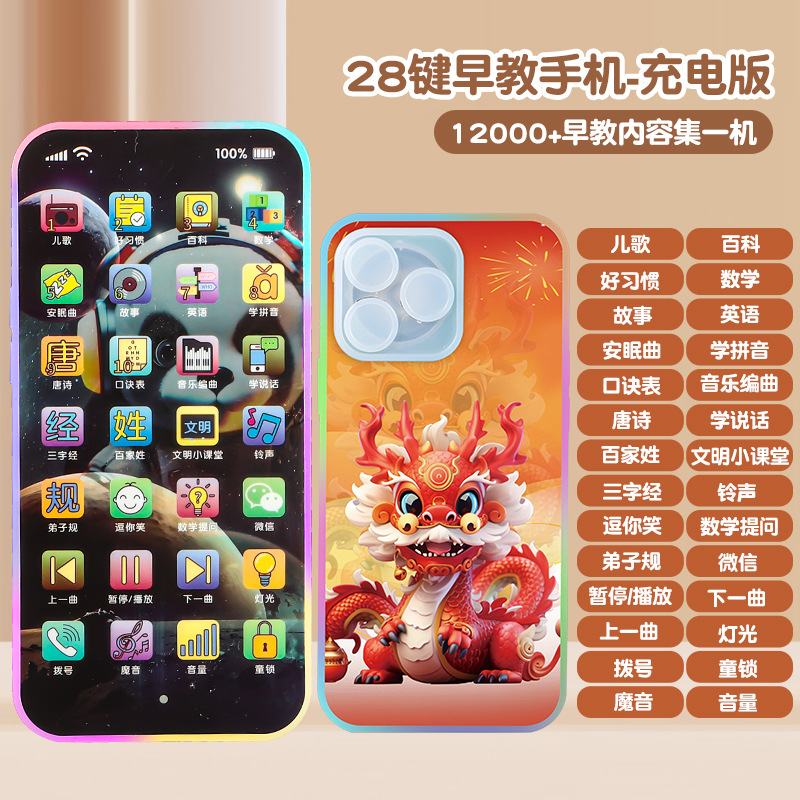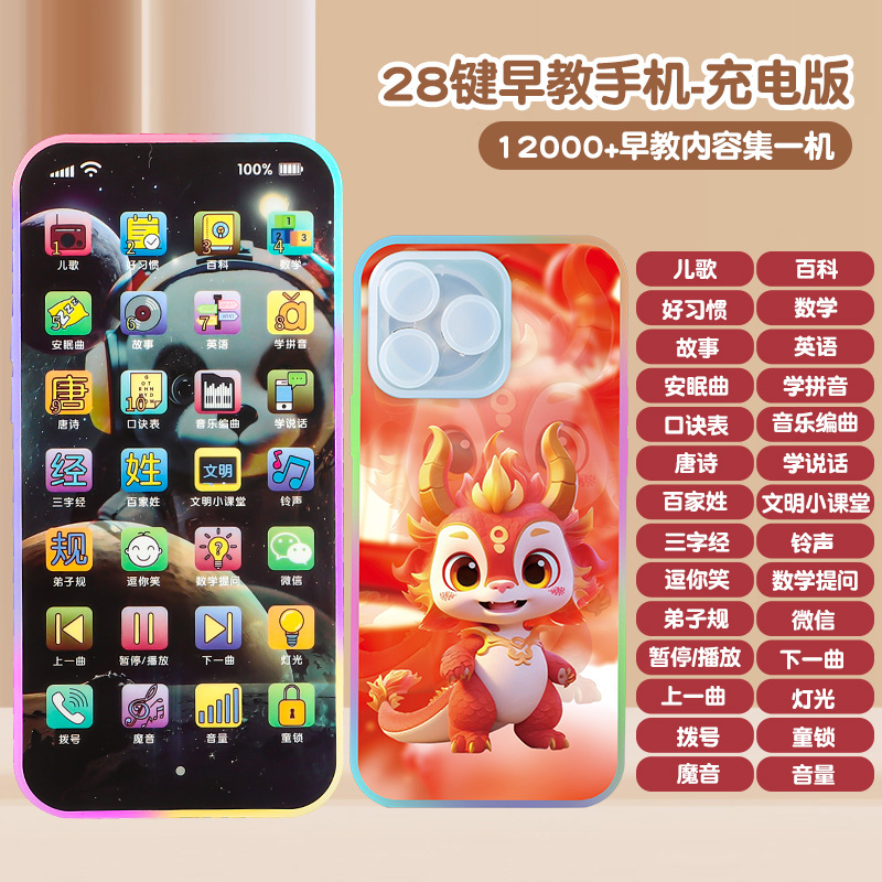 28 키 어린이 이야기 기계 터치 스크린 아기 충전식 멀티 음악 유아 교육 휴대 전화 유아 교육 장난감