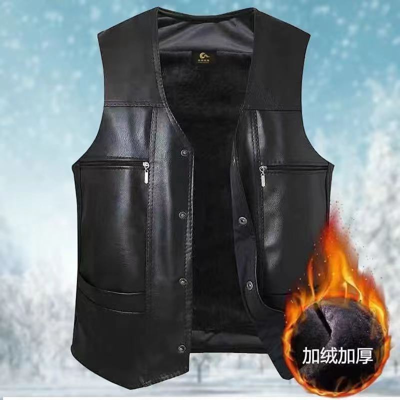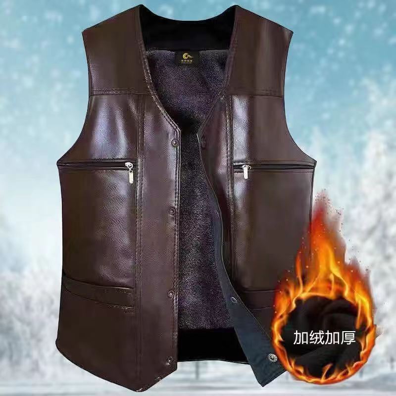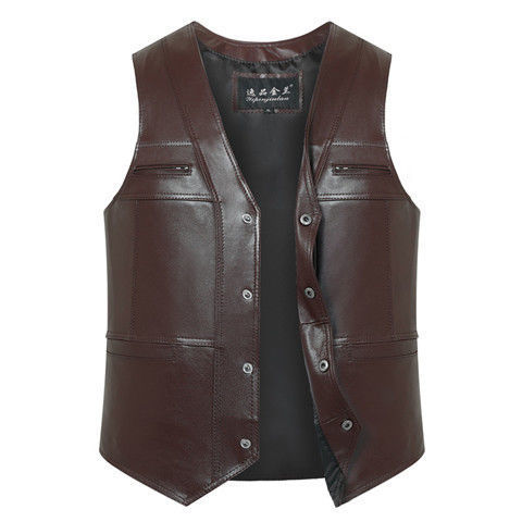 봄과 가을 조끼 남성용 가죽 양복 조끼는 양가죽 슬림 핏 캐주얼 재킷 가죽 조끼 중년 및 노인을위한스토어 가기