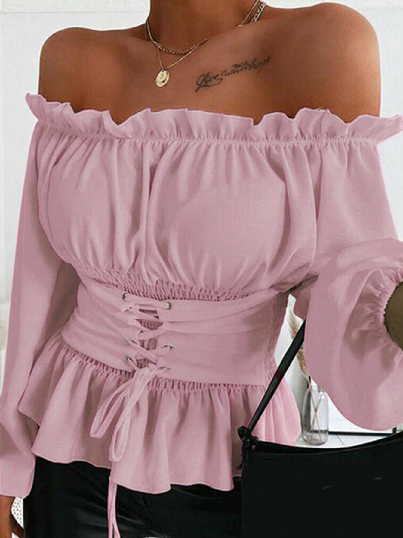 2024 국경 여성 의류 아마존 AliExpress 긴 소매 셔츠 패션 어깨 주름진 여성 캐주얼 셔츠스토어 가기