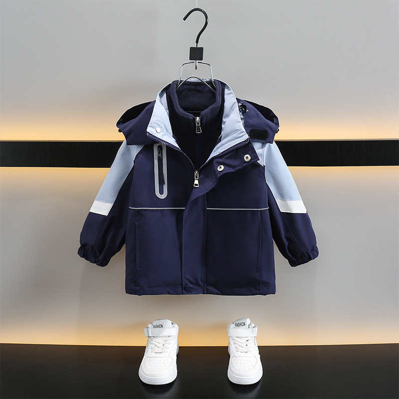 소년 코트 봄과 가을 면화 2024 새로운 어린이 충전 옷 3 대 1 분리 가능한 아기의 가을 옷