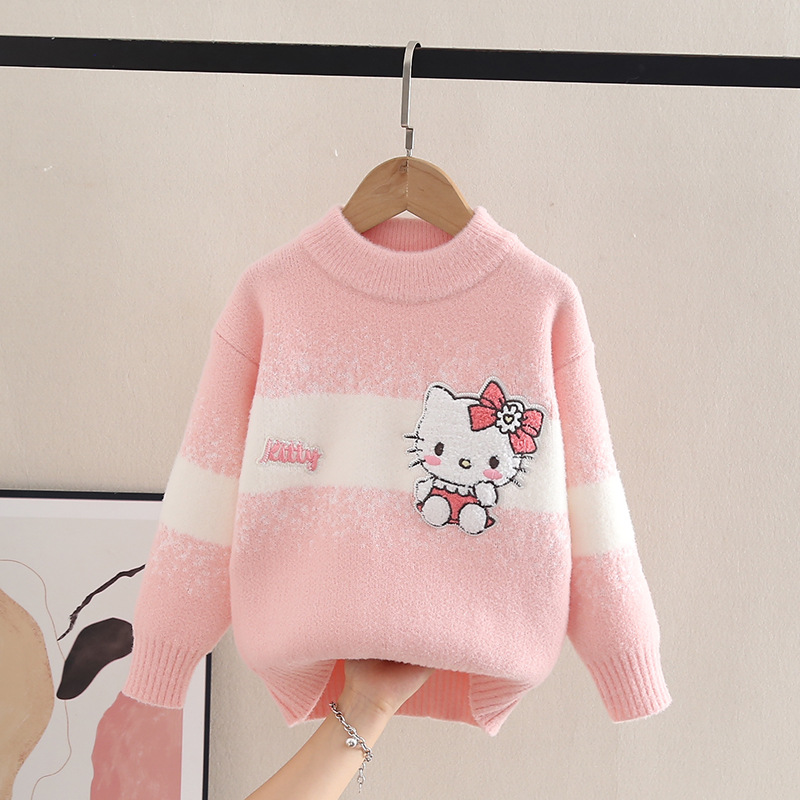 소녀 스웨터 가을과 겨울 새로운 어린이 스웨터 세련된 케이트 고양이 어린이 어린 소녀의 니트 셔츠 풀오버 긴 소매
