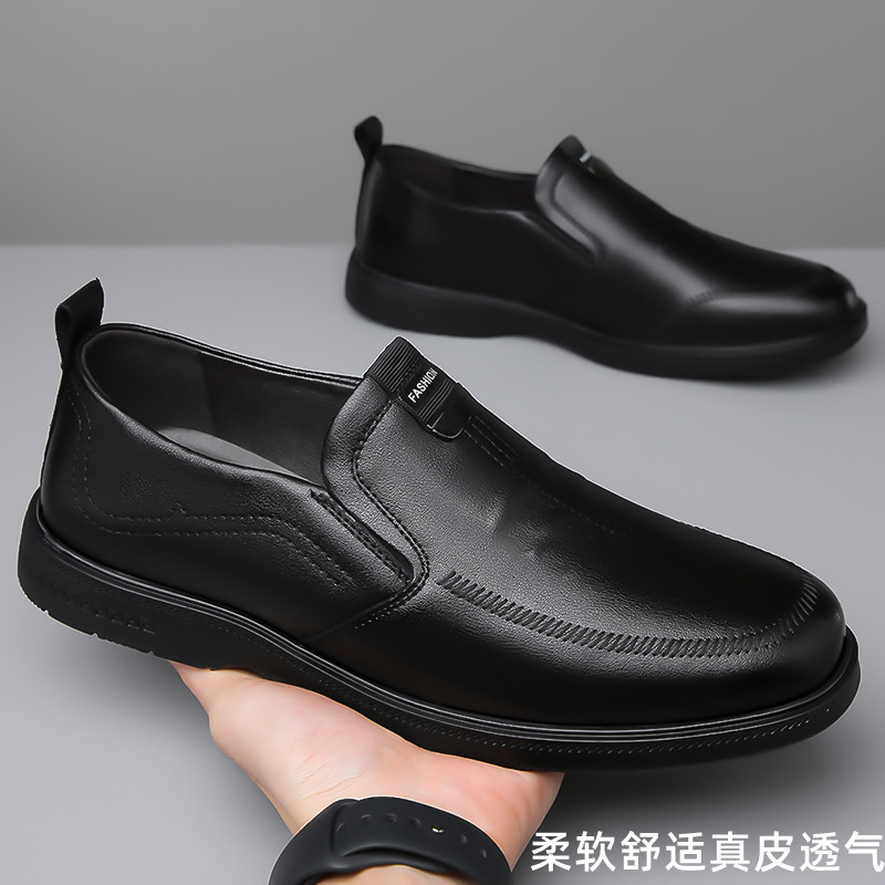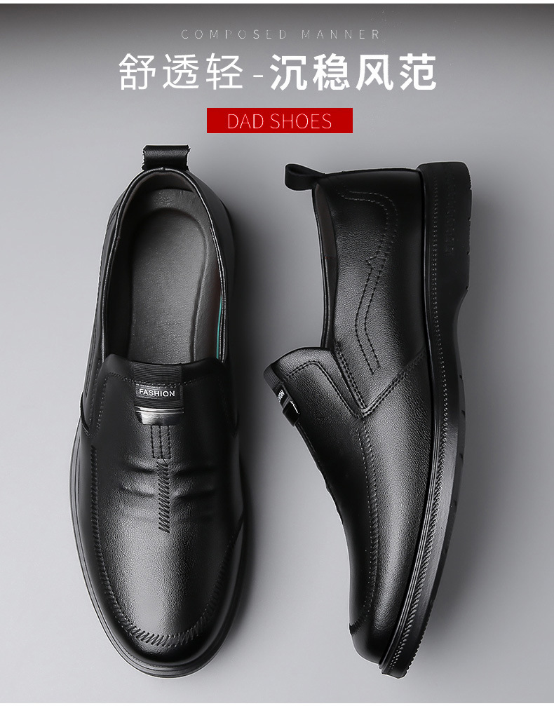 남성 신발 봄 신상 천연 가죽 비즈니스 캐주얼 아빠 신발 라운드 토 다용도 부드러운 밑창 남성 가죽 신발 미끄럼 방지 내구성
