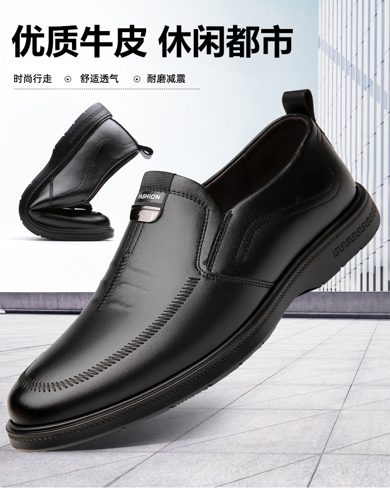 남성 신발 봄 신상 천연 가죽 비즈니스 캐주얼 아빠 신발 라운드 토 다용도 부드러운 밑창 남성 가죽 신발 미끄럼 방지 내구성스토어 가기