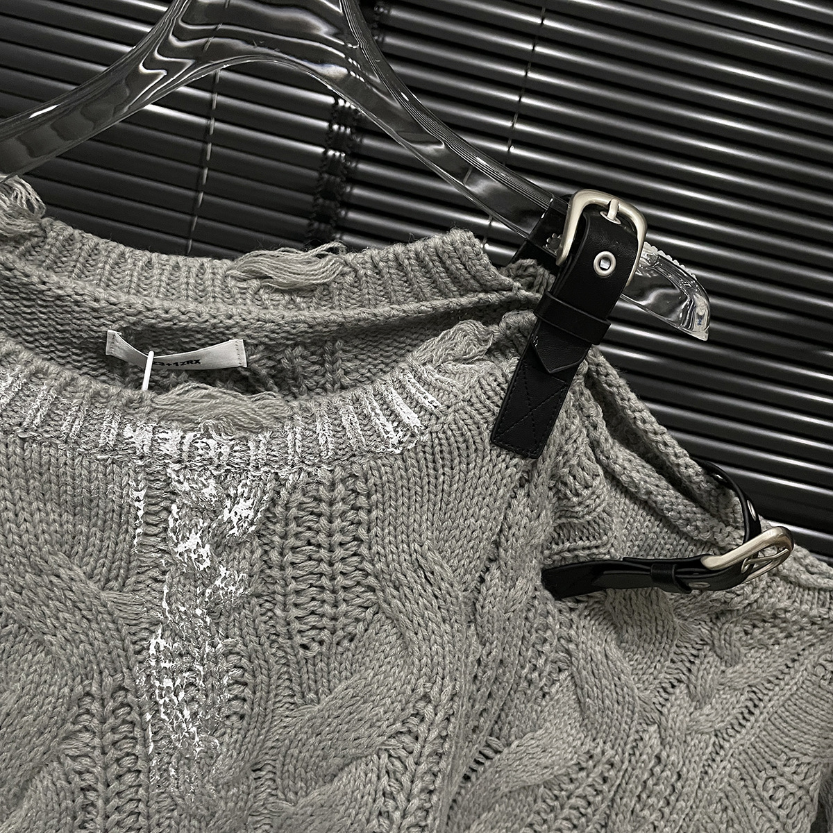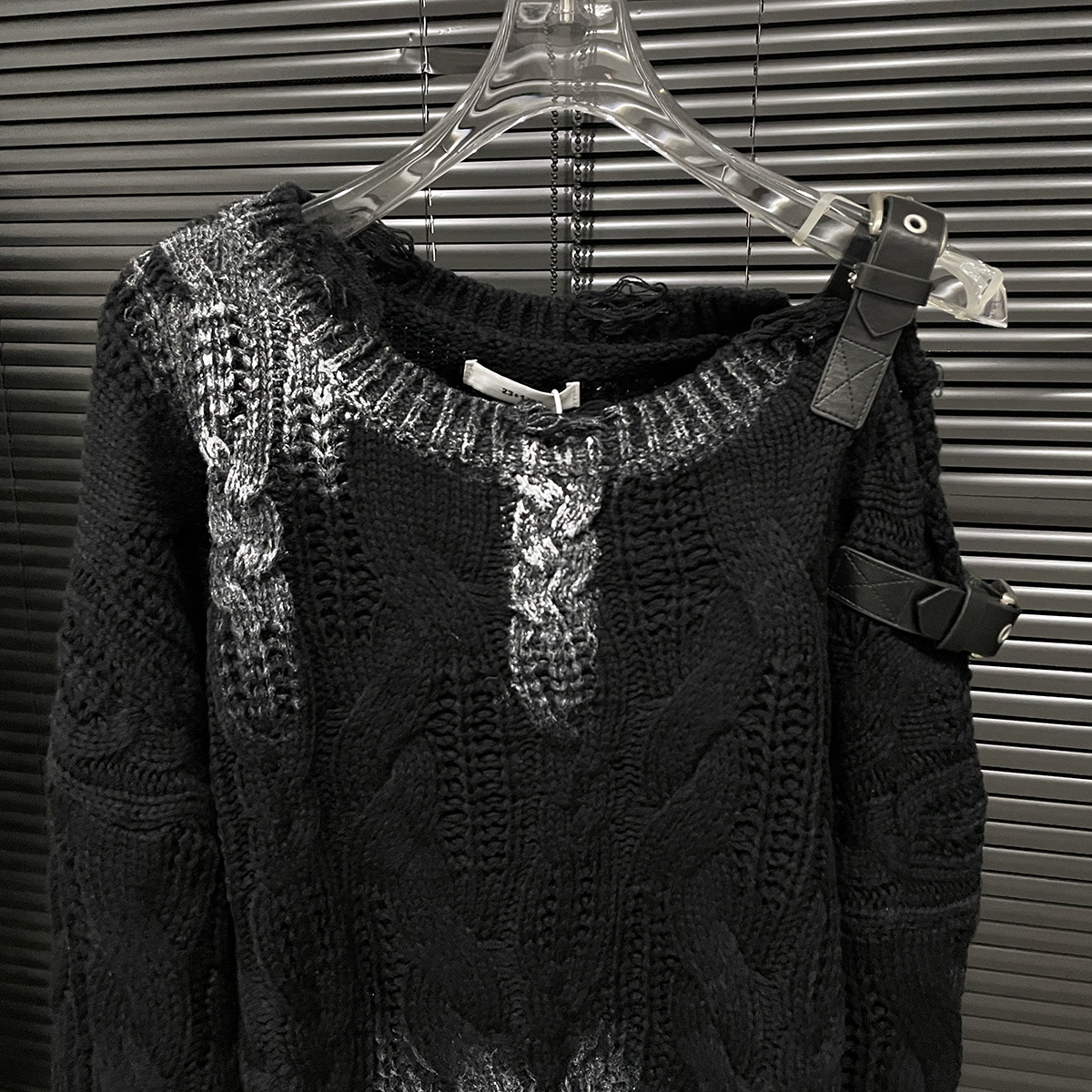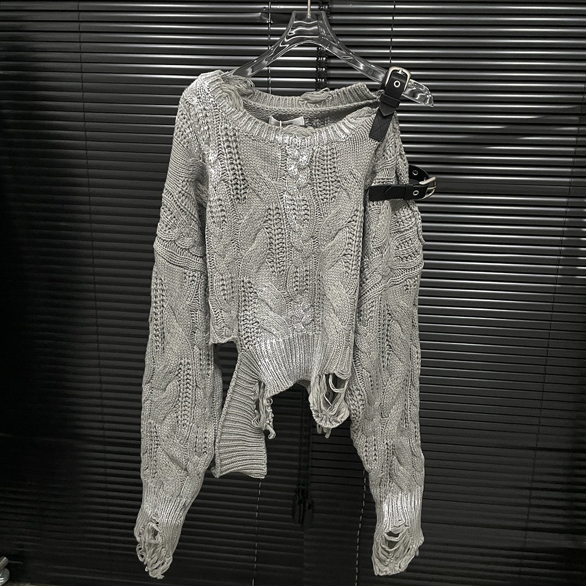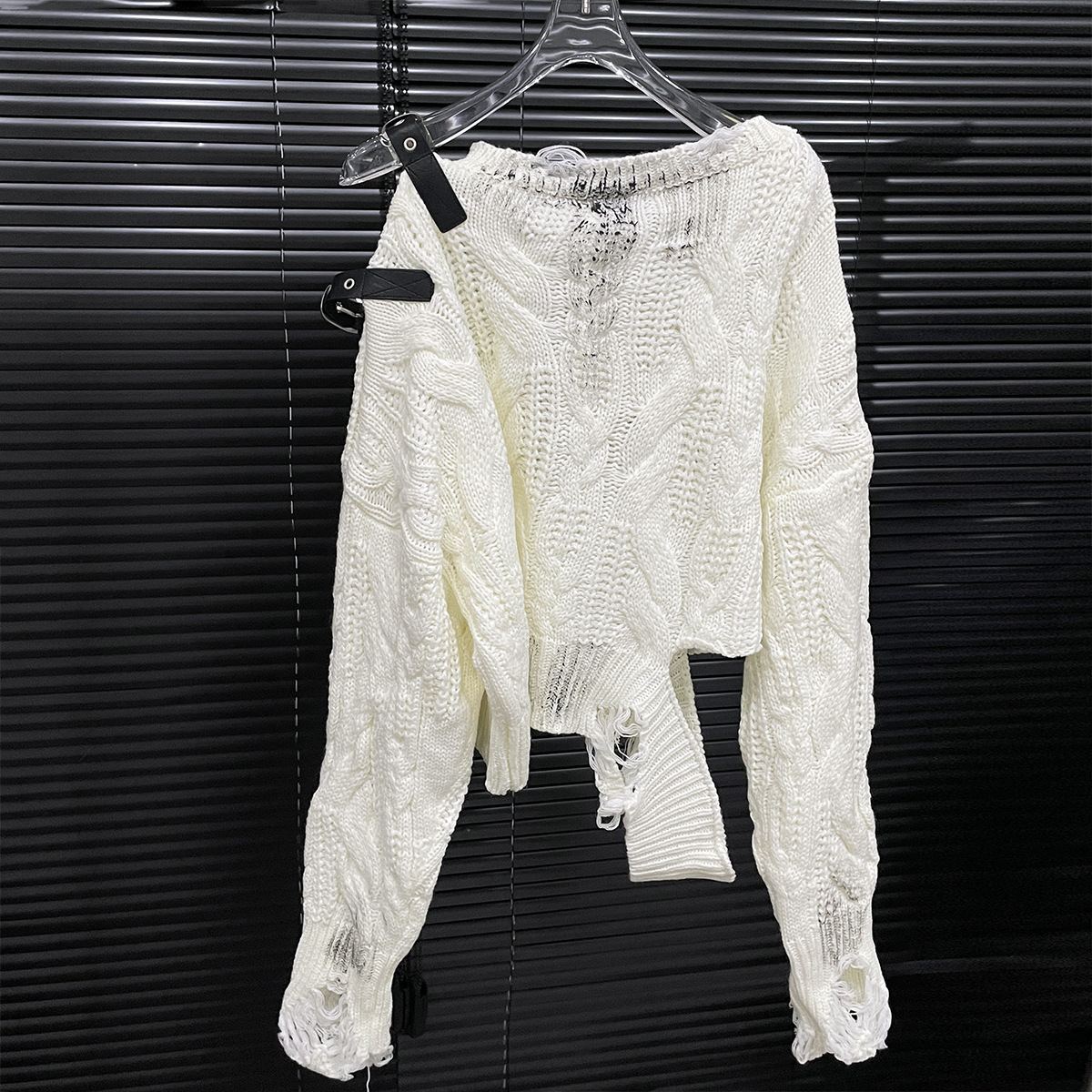 벨트 디자인 어깨 스웨터 여성 아메리칸 스타일 게으른 패션 니트 탑